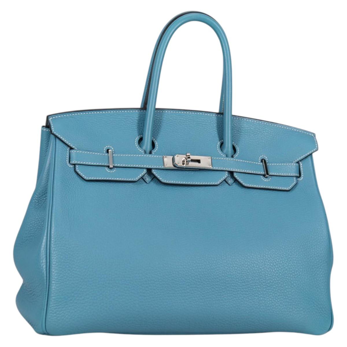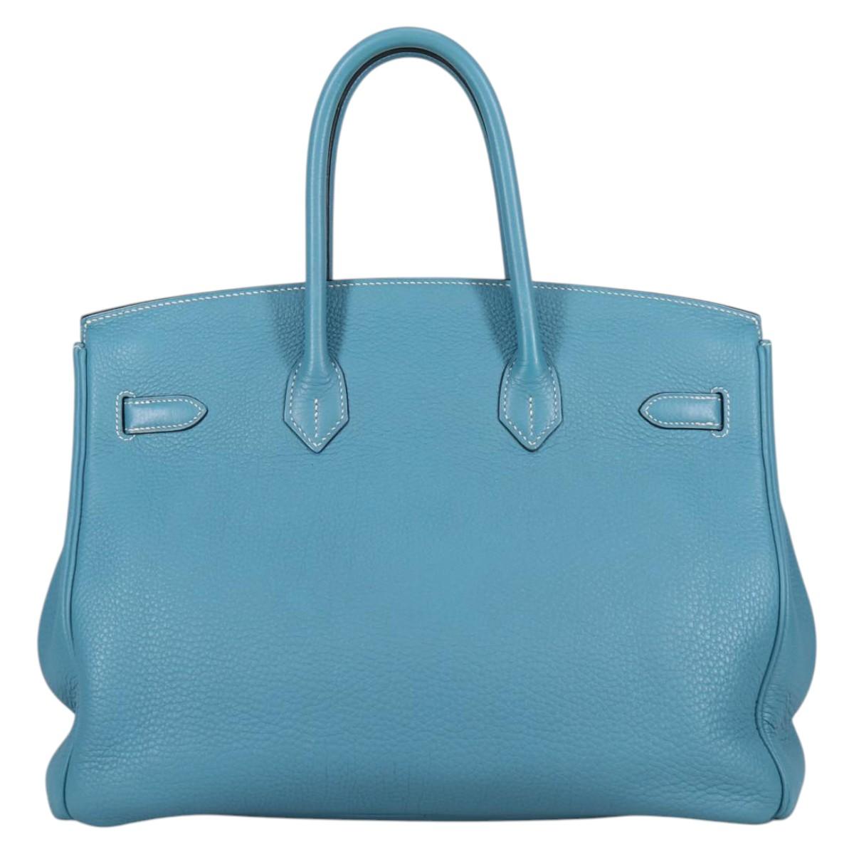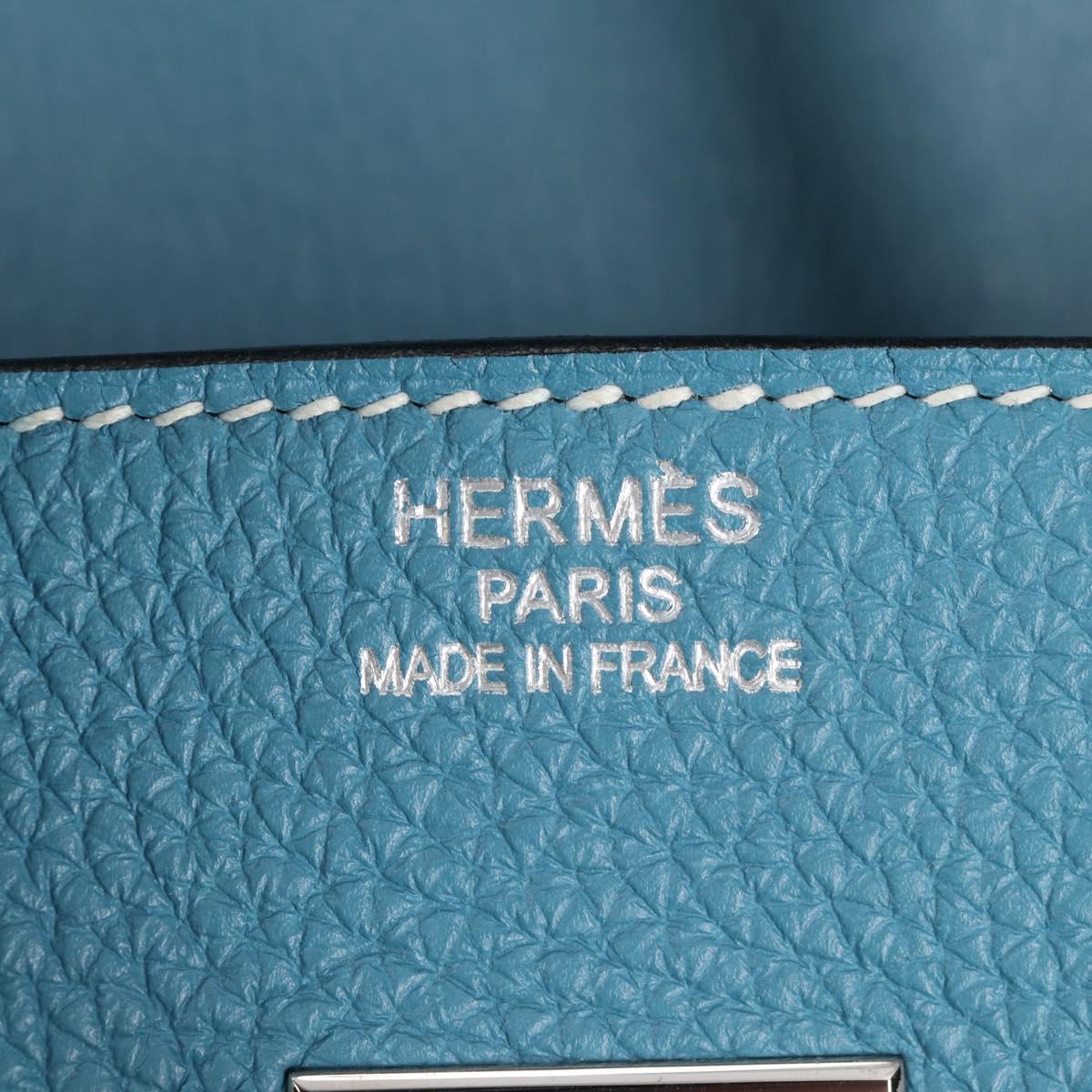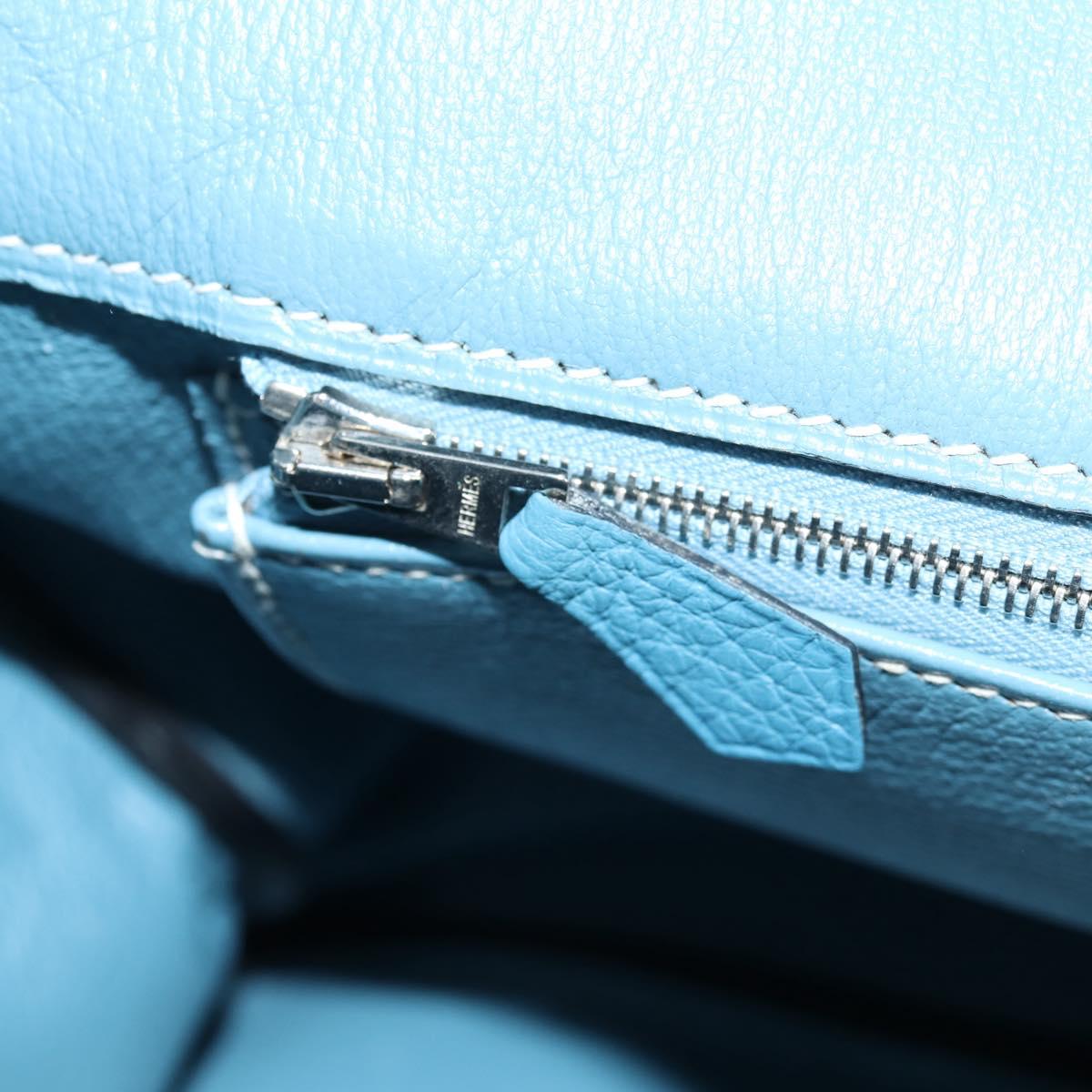 HERMES Birkin 35 Hand Bag Leather Blue Silver Auth 135821M