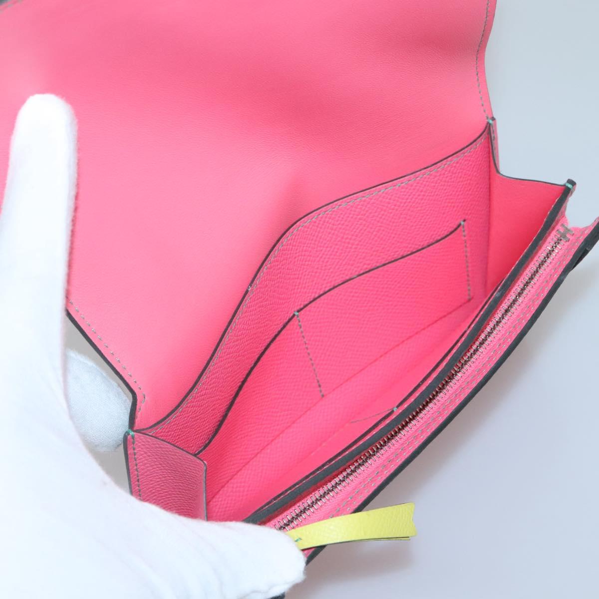 HERMES Camille Long Wallet Leather Pink Silver Auth 142388M