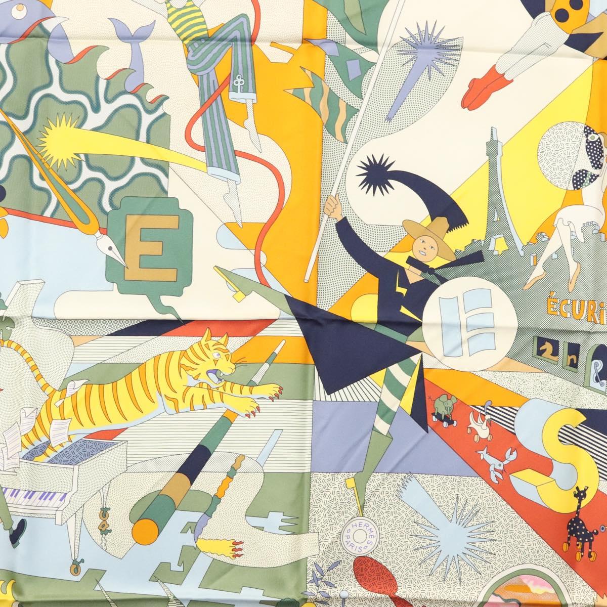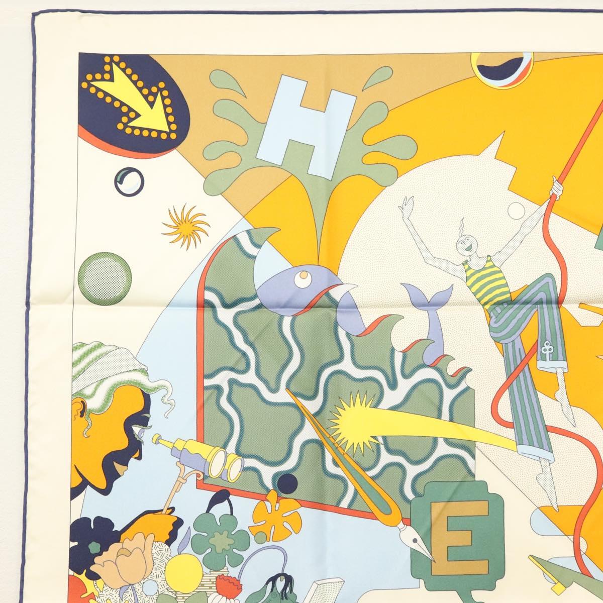HERMES Carre 90 Scarf ""CA DECOIFFE!"" Silk Beige Auth 137450M