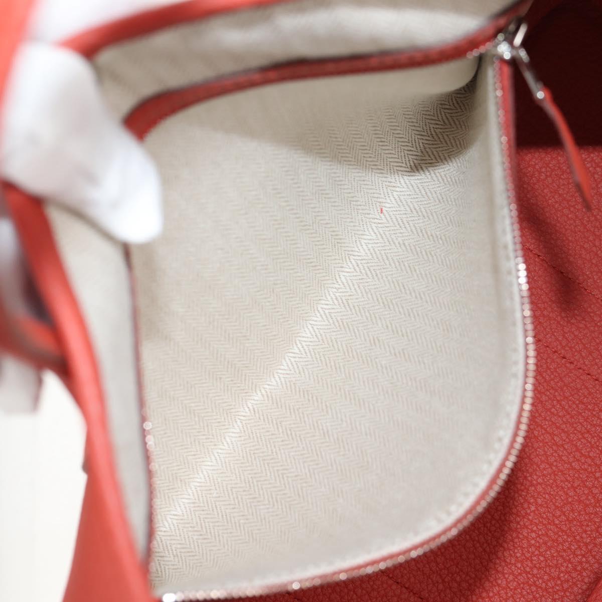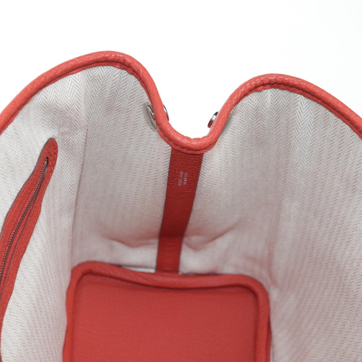 HERMES Garden Party TPM Hand Bag Leather Orange Silver Auth 139049M