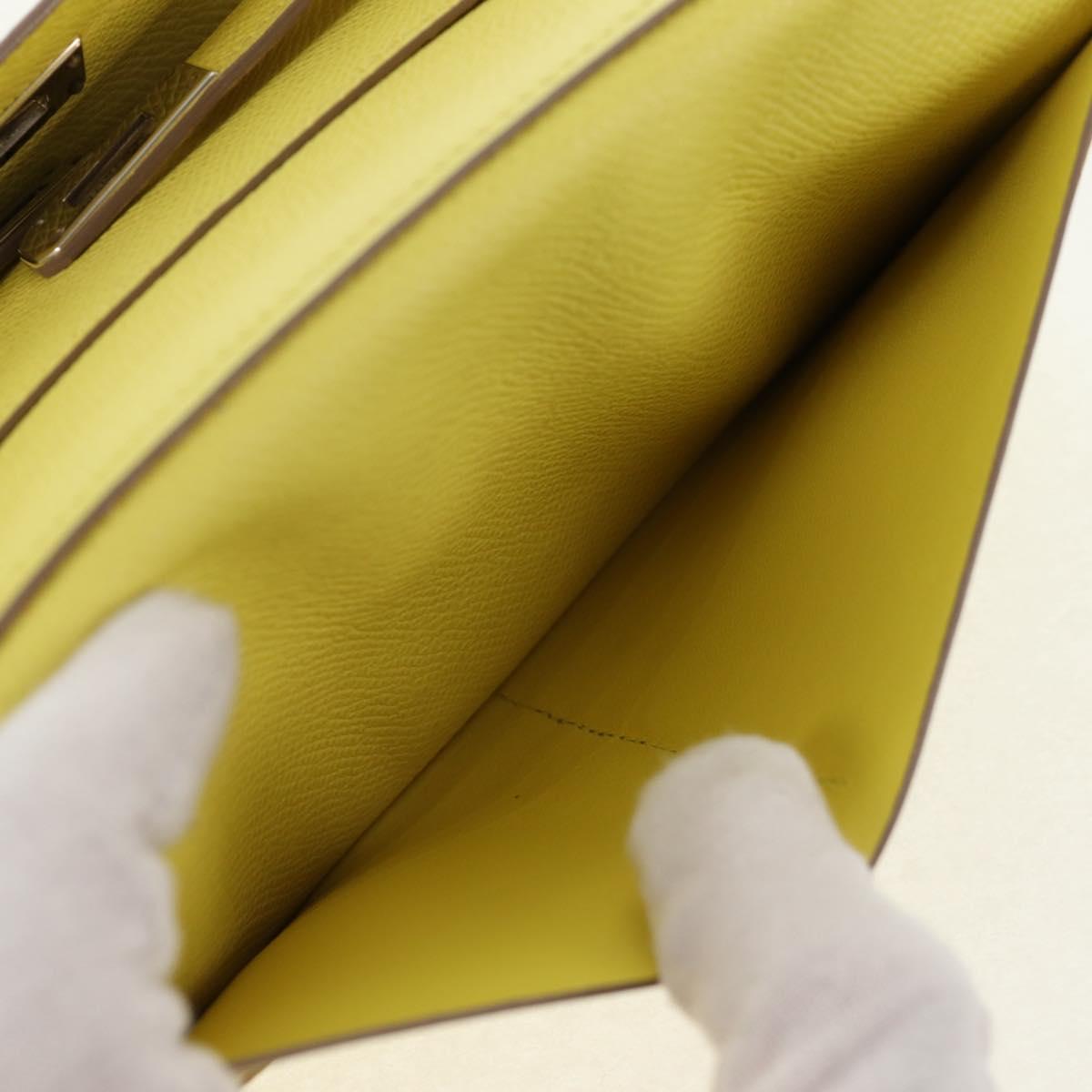 HERMES Kelly Long Wallet Leather Yellow Silver Auth 141186M