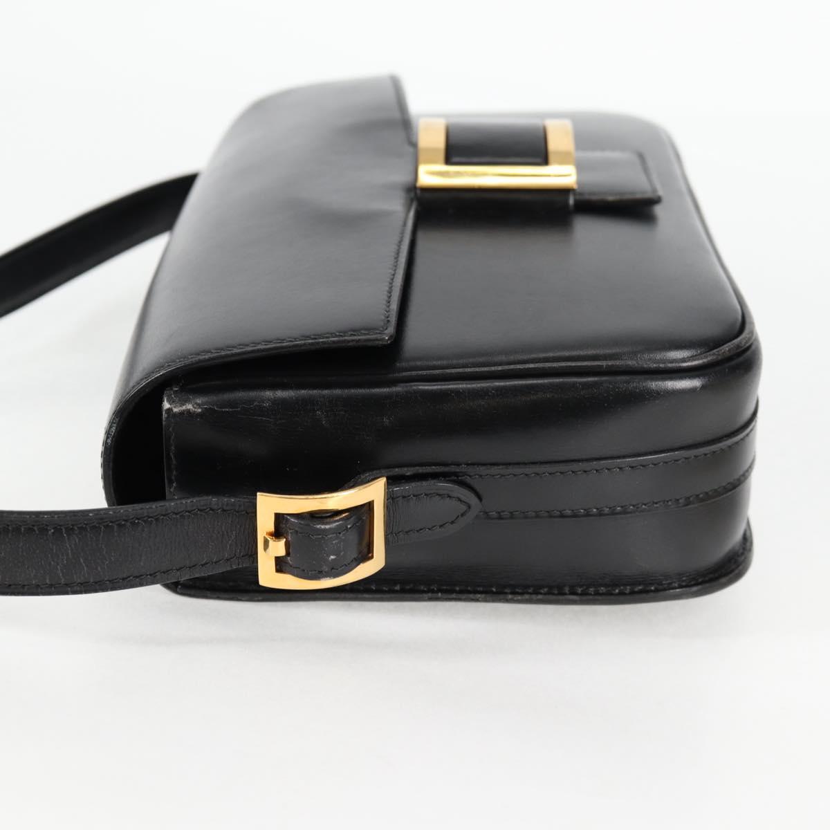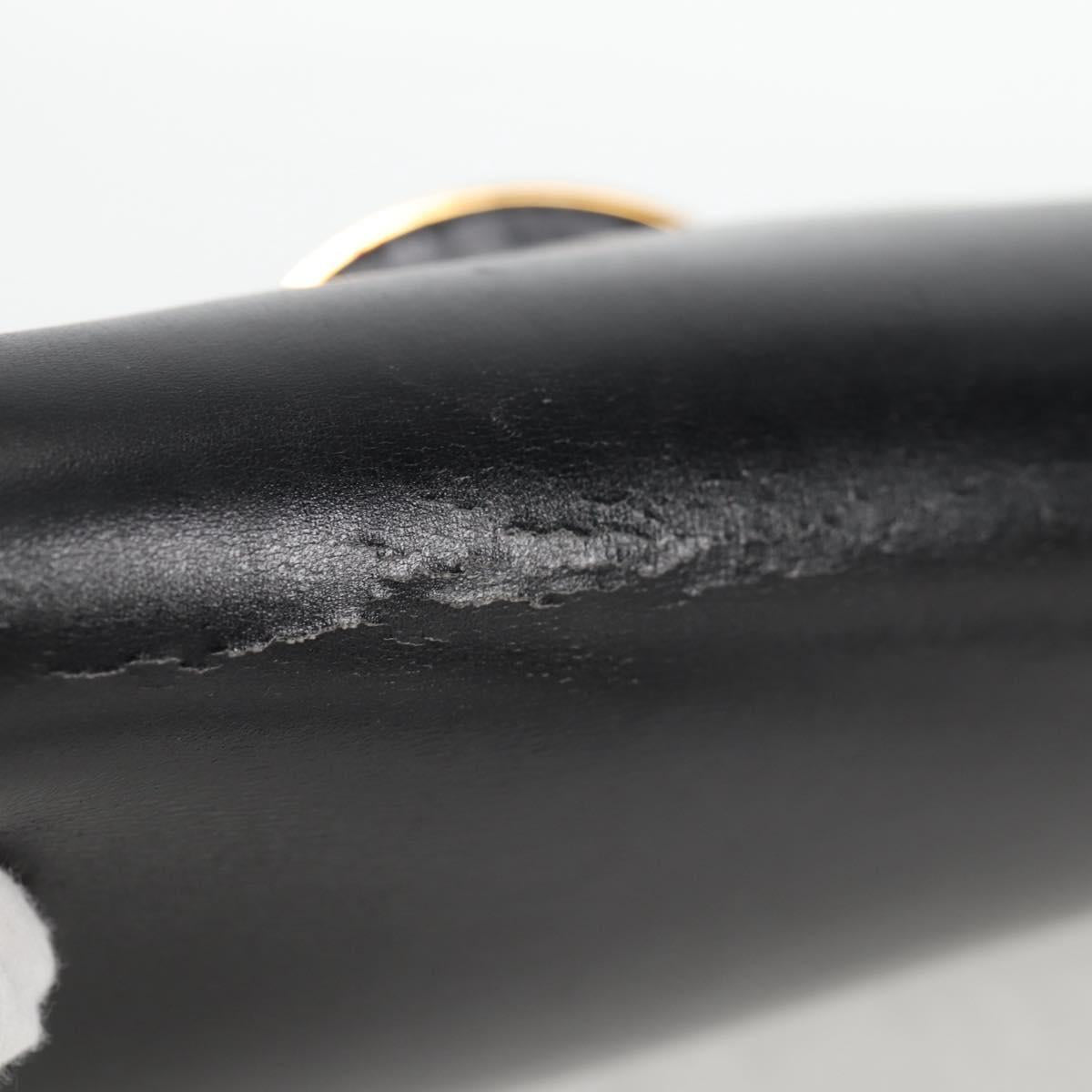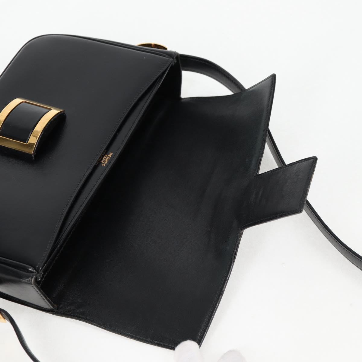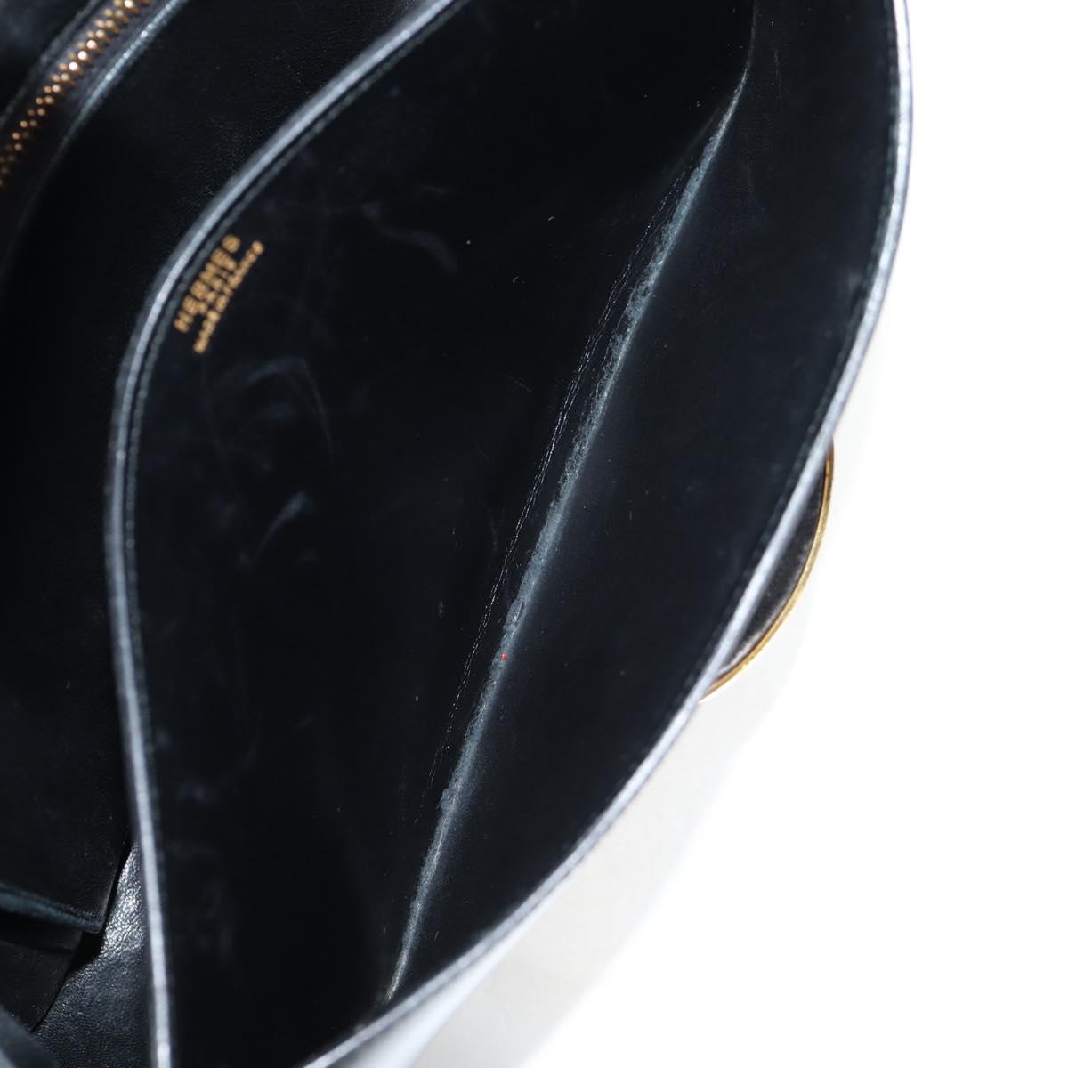 HERMES Martine Vert Shoulder Bag Leather Black Gold Auth 135513M