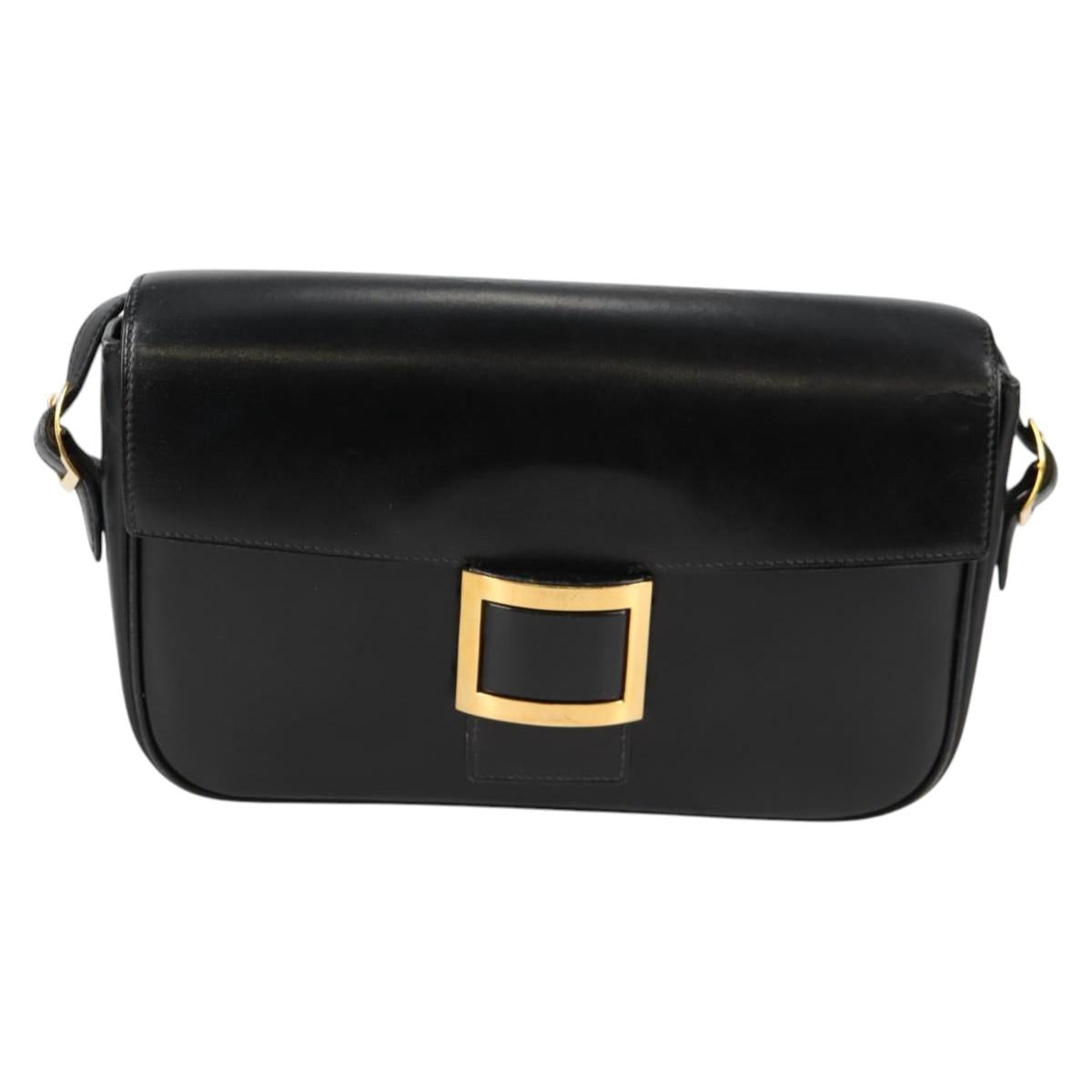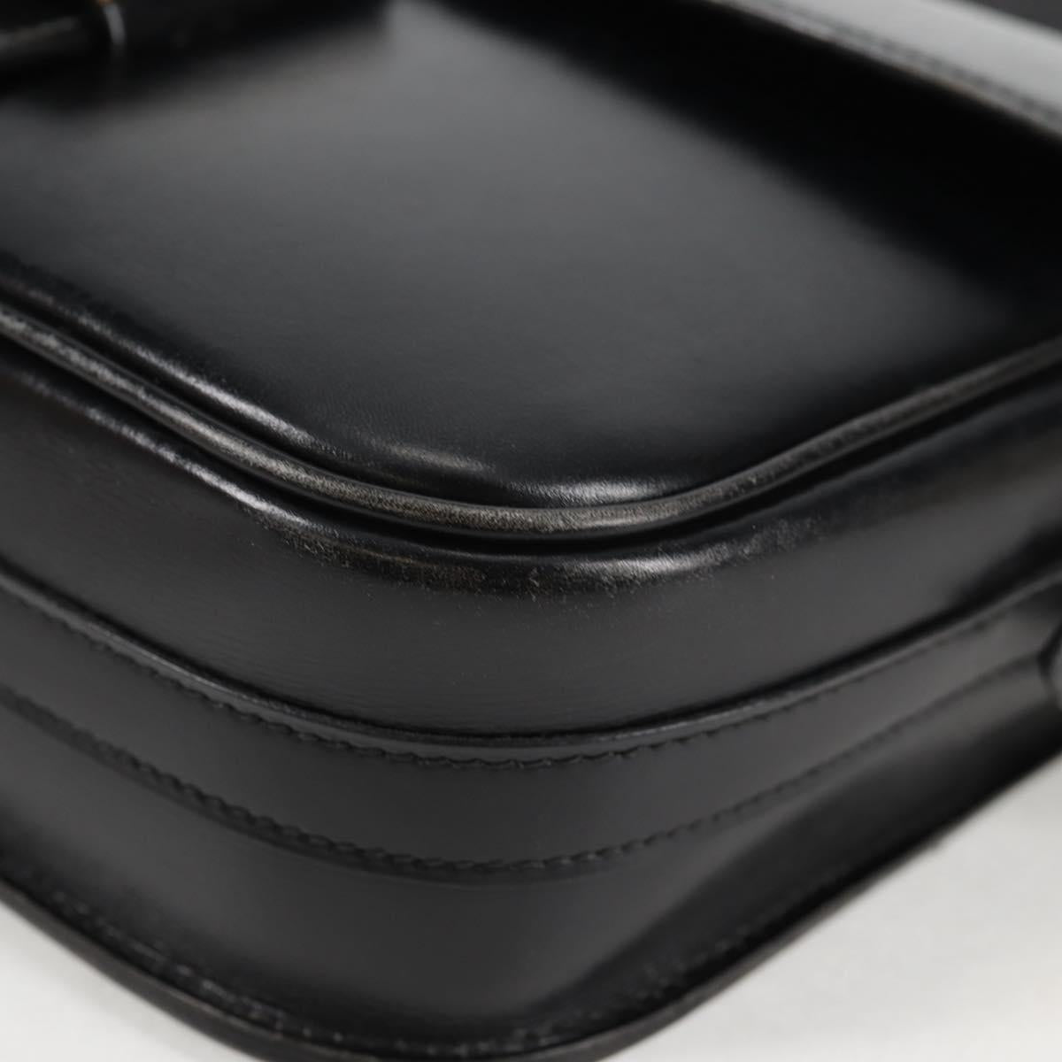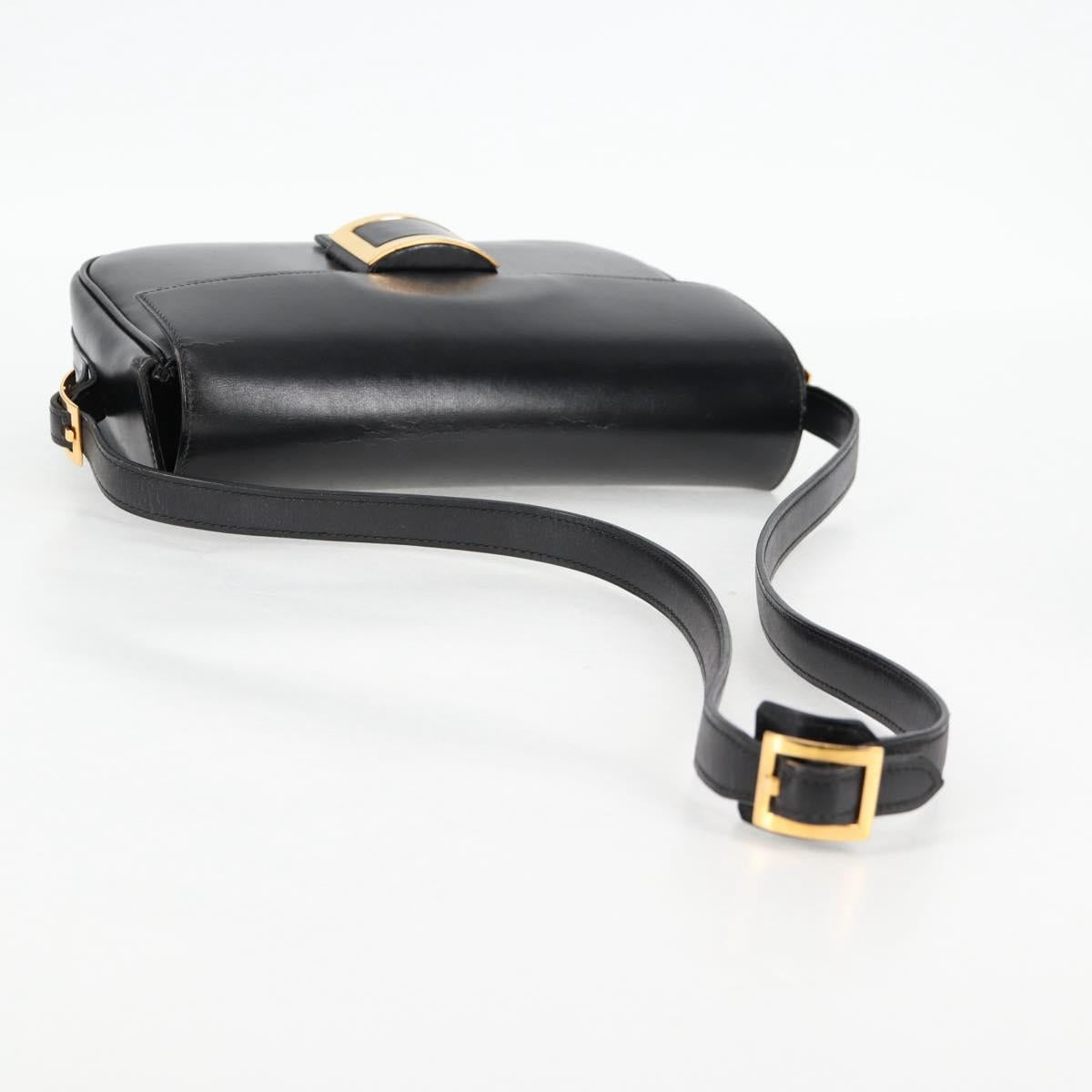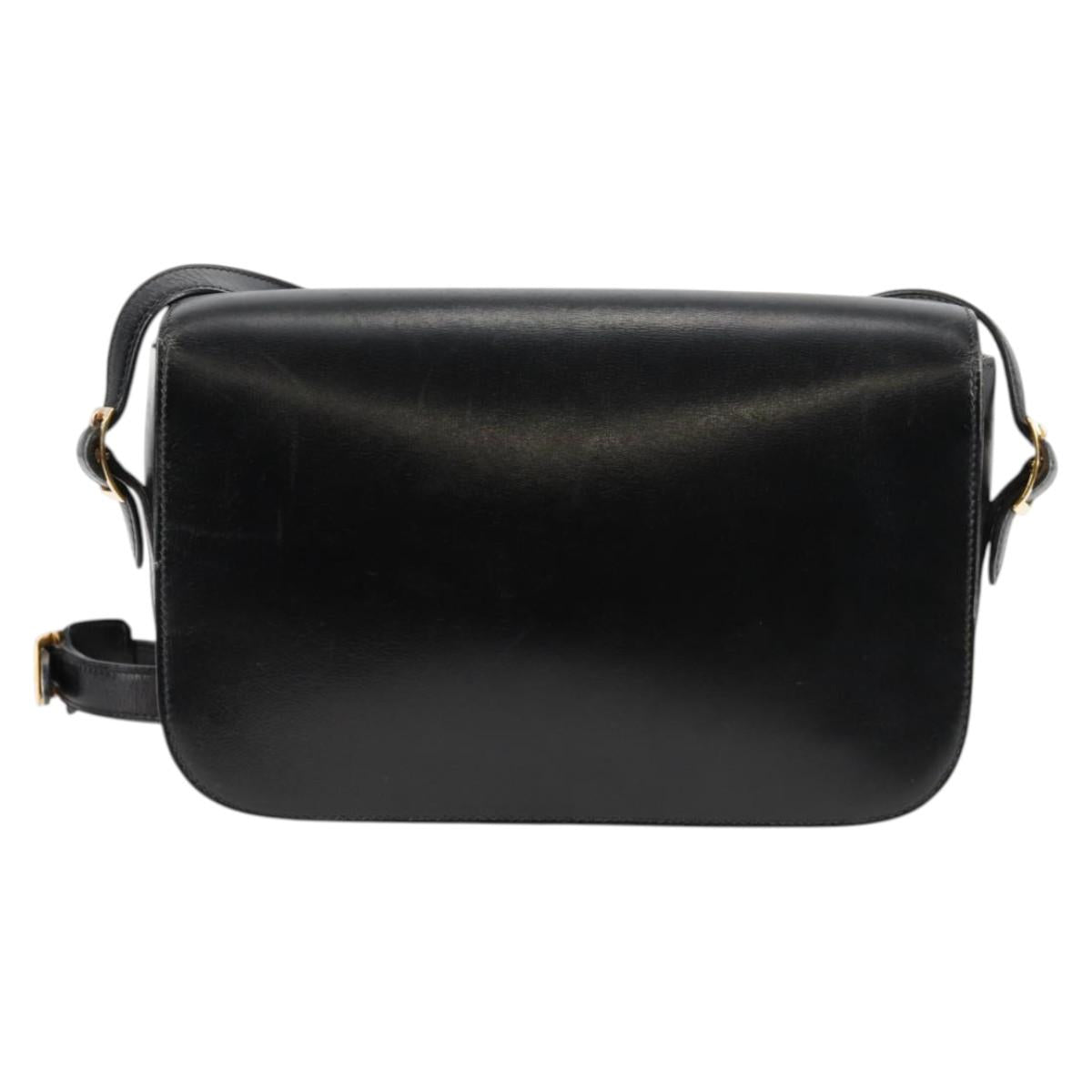 HERMES Martine Vert Shoulder Bag Leather Black Gold Auth 135513M
