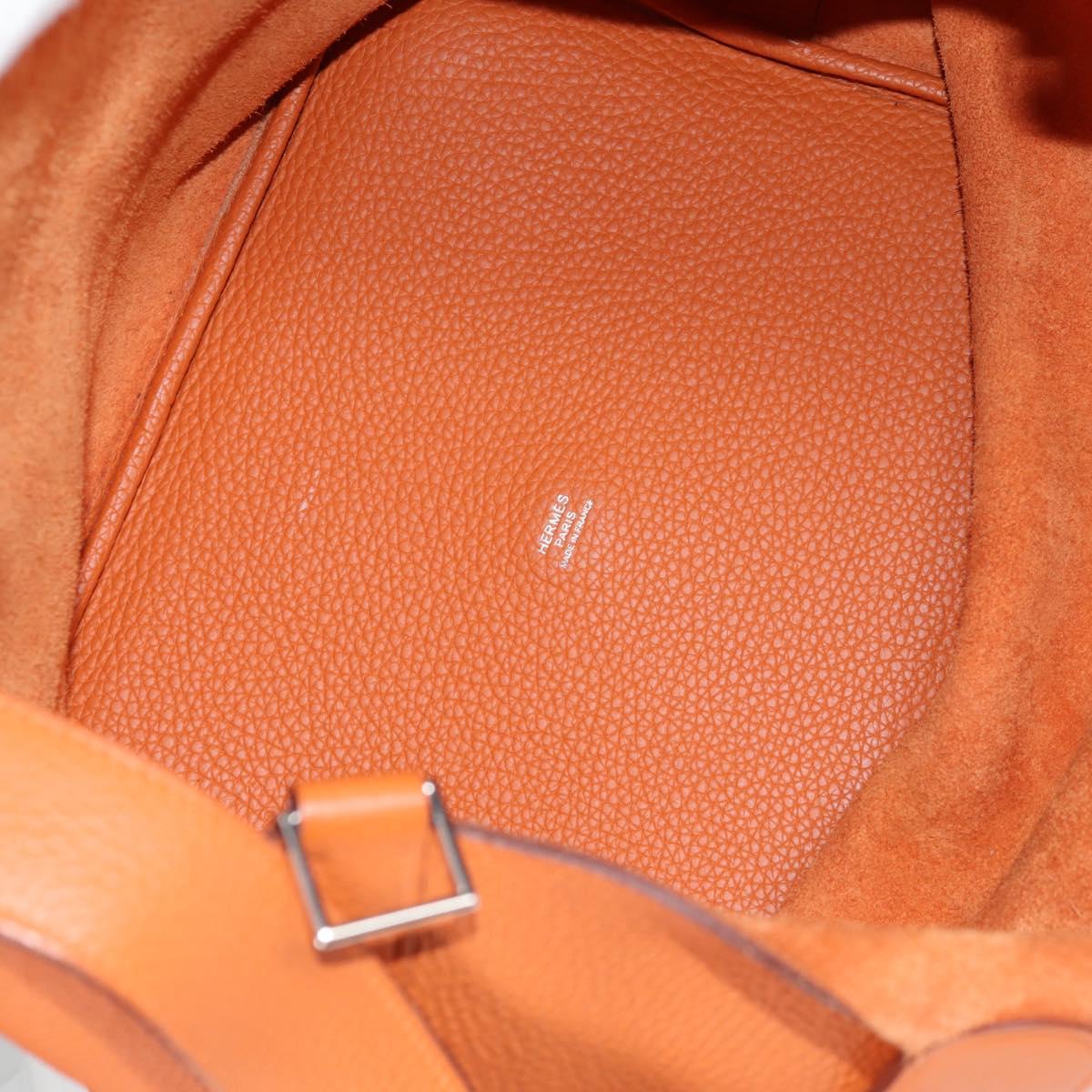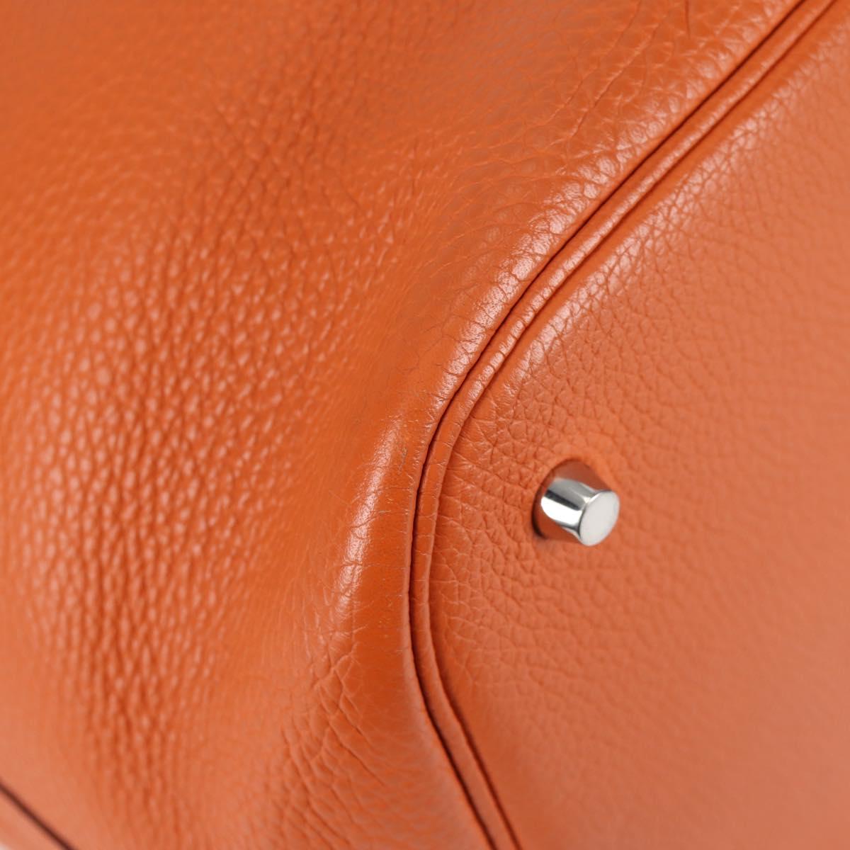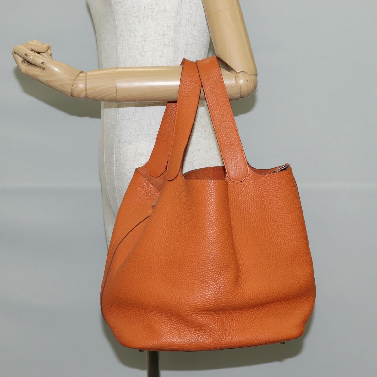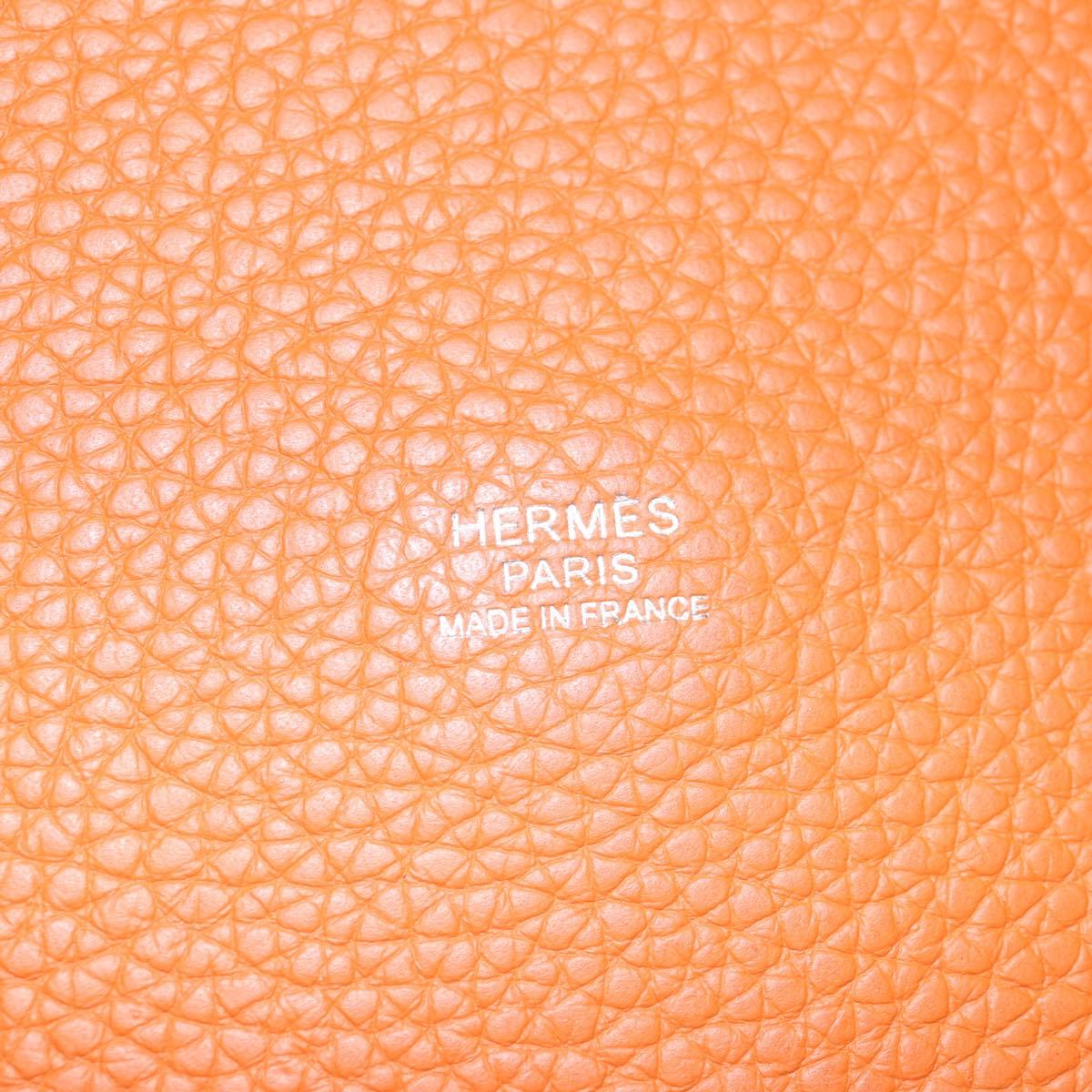 HERMES Picotan Lock GM Hand Bag Leather Orange Silver Auth PP725M