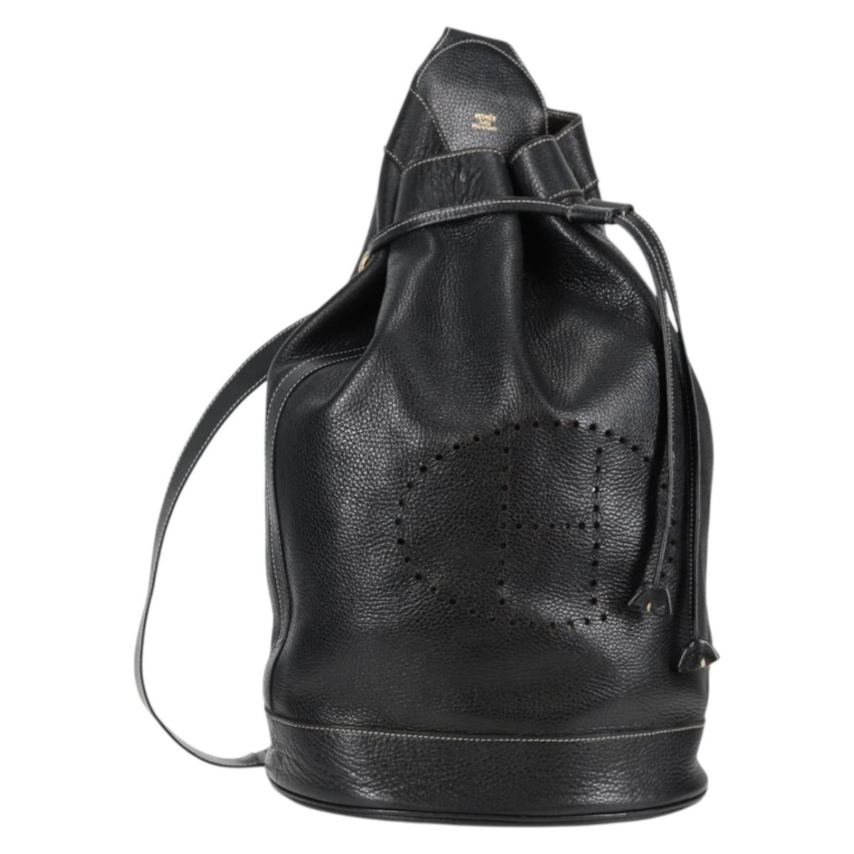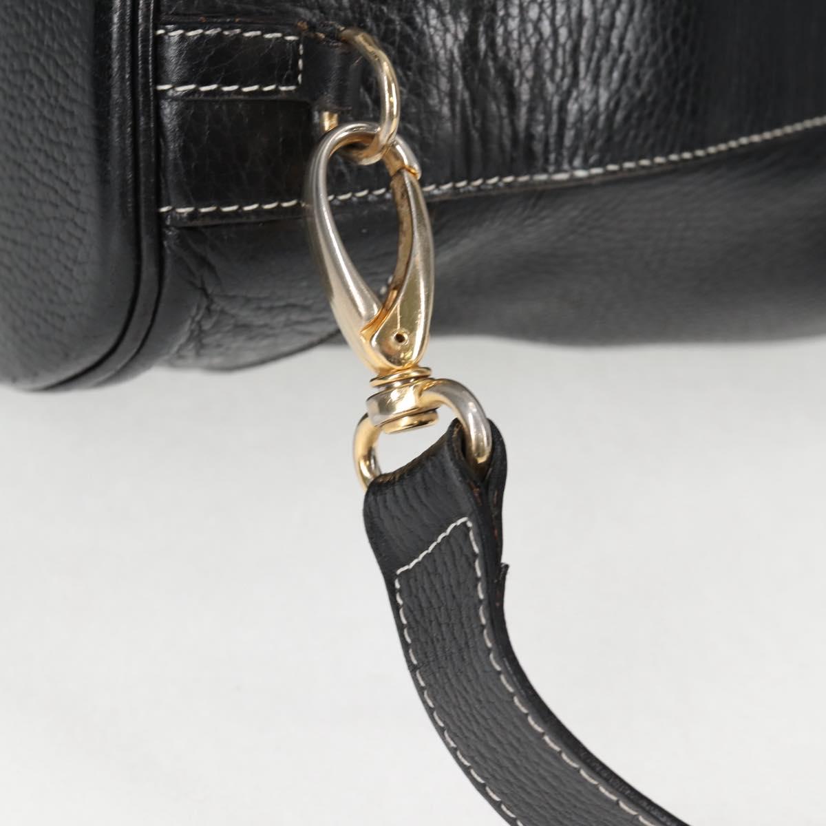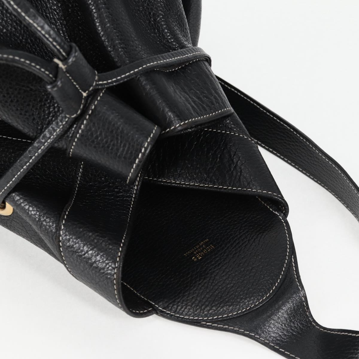 HERMES Shoulder Bag Leather Black Gold Auth bs28154V