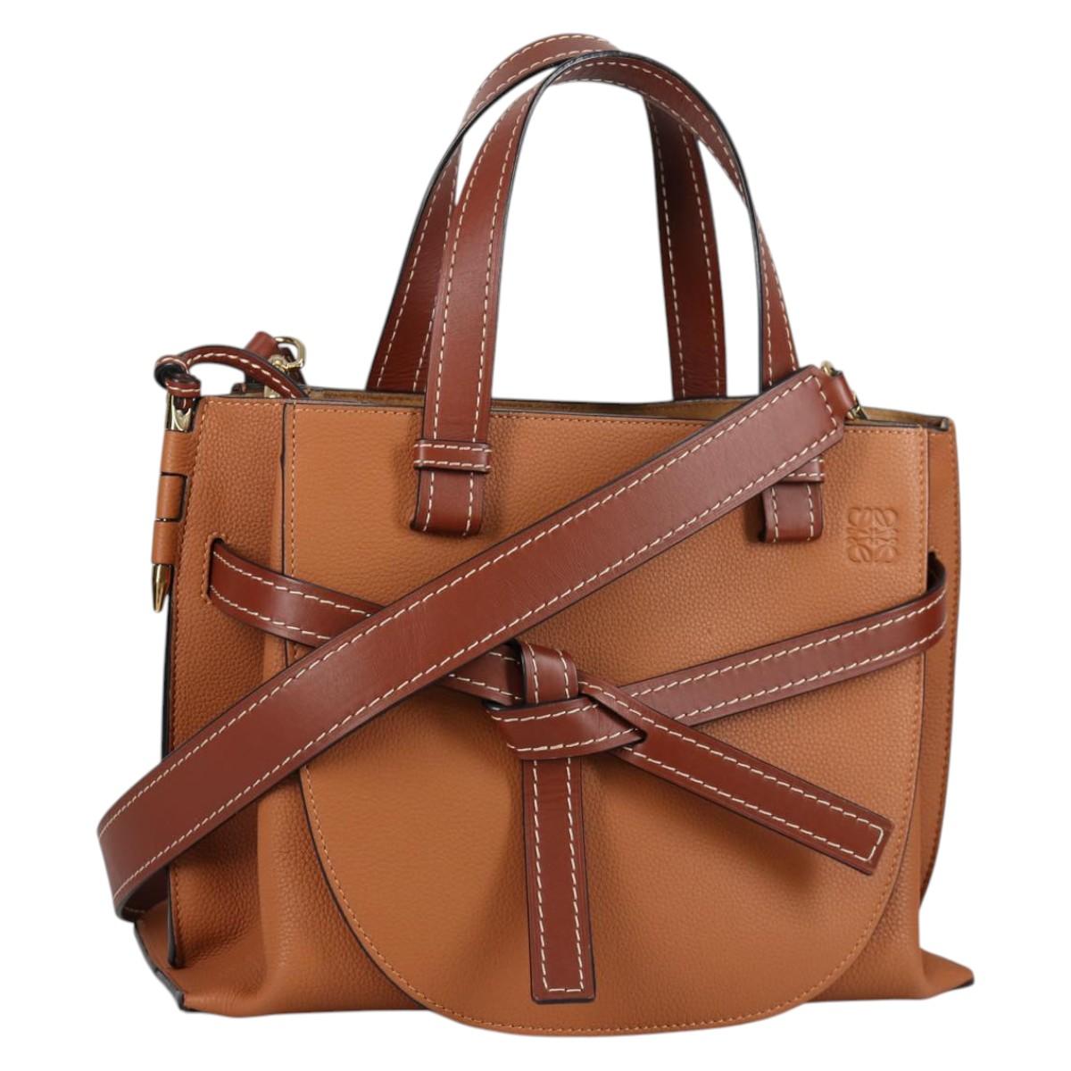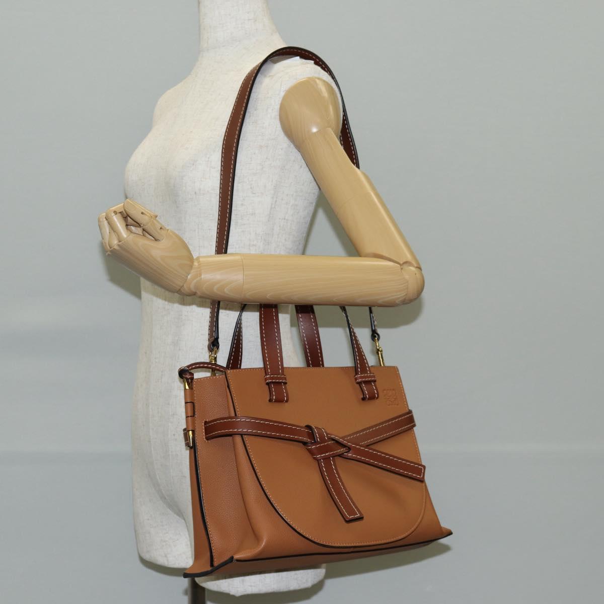 LOEWE Gate Top Handle bag Hand Bag Leather Brown Gold Auth BA5553M