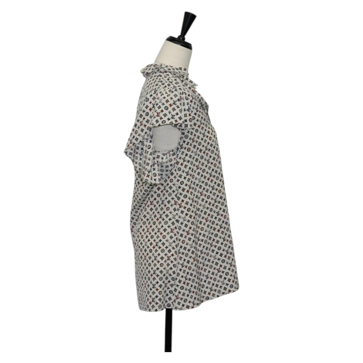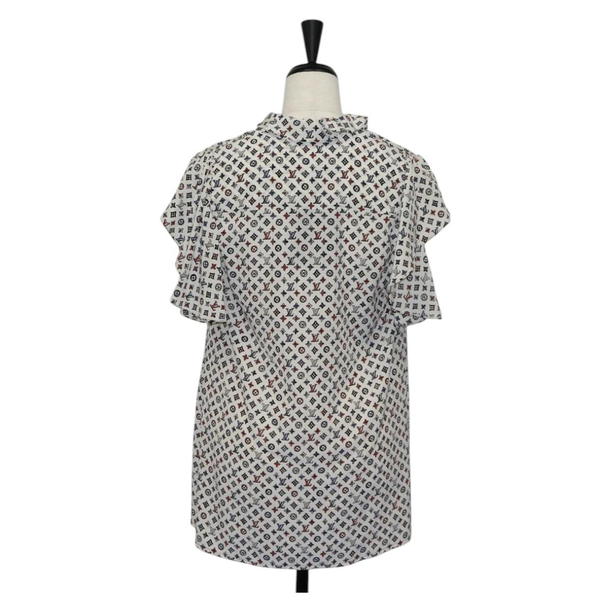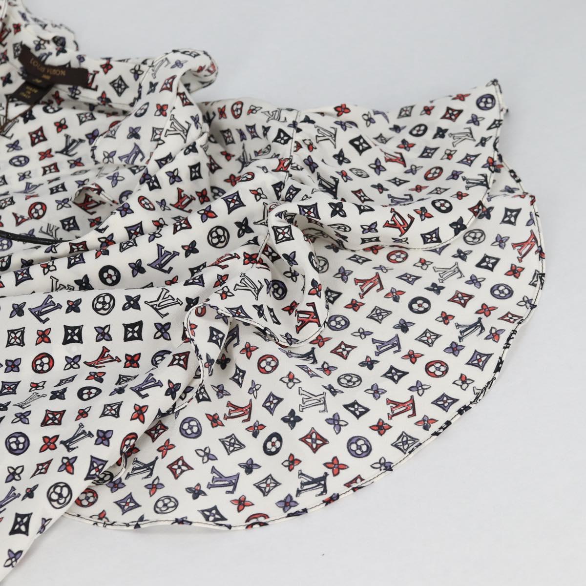 LOUIS VUITTON Blouse Shirt Silk White LV Auth 137476M