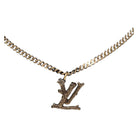 LOUIS VUITTON Collier Printed Initials LV Wood Necklace Gold MP2780 Auth 142405M