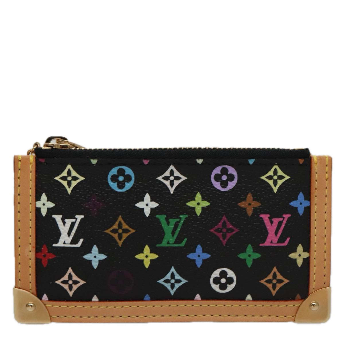 LOUIS VUITTON Monogram Multicolor Pochette Cles Purse Black M92654 Auth 104416SV