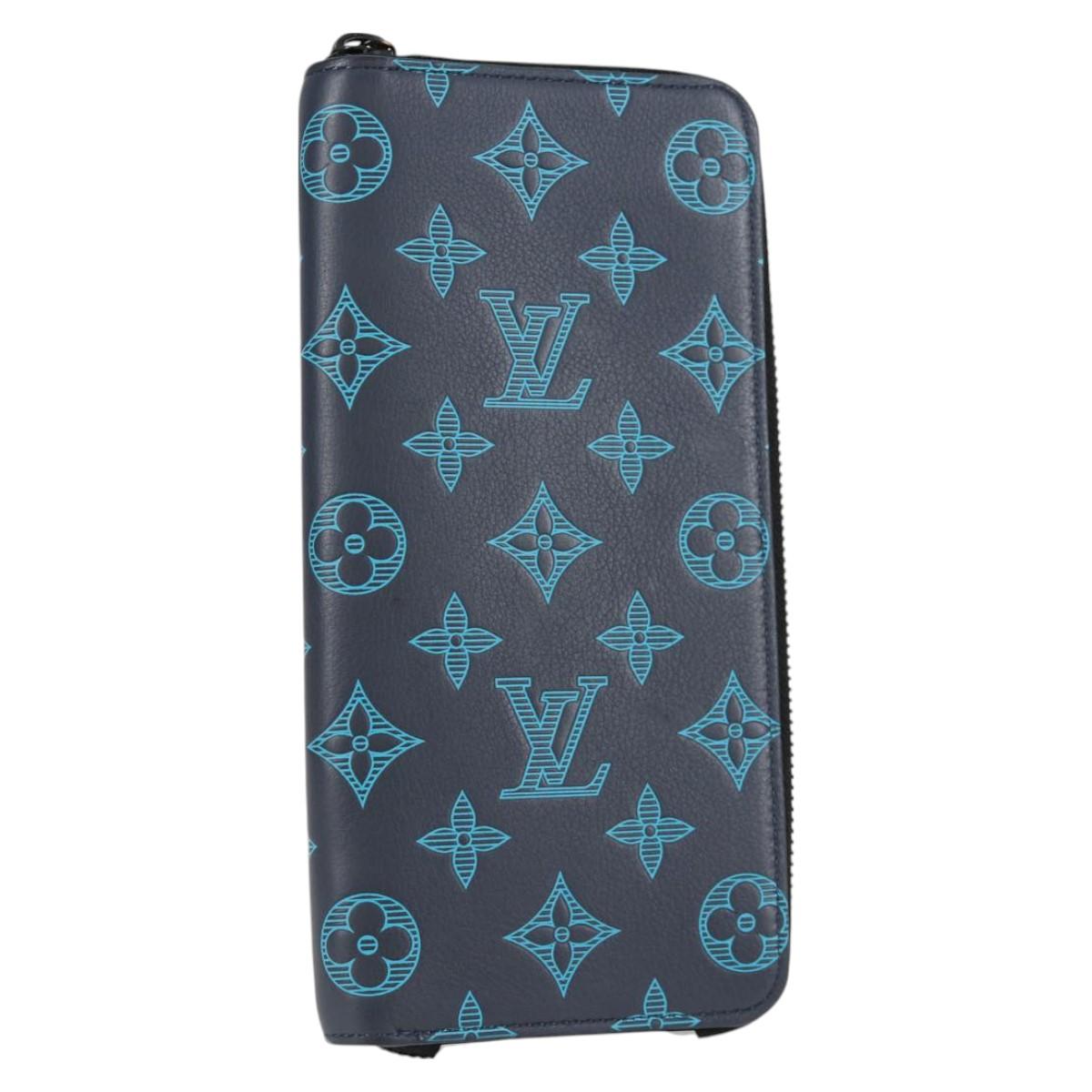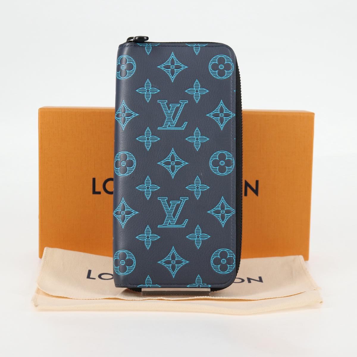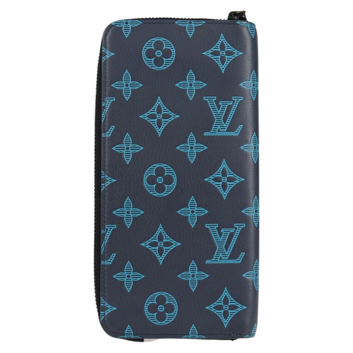 LOUIS VUITTON Monogram Shadow Zippy Wallet Vertical Navy M82322 LV Auth 126657M