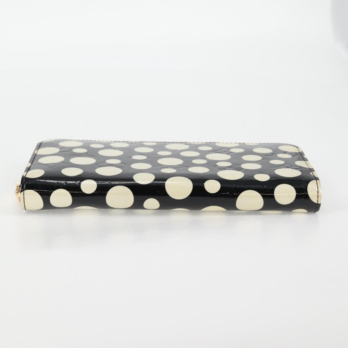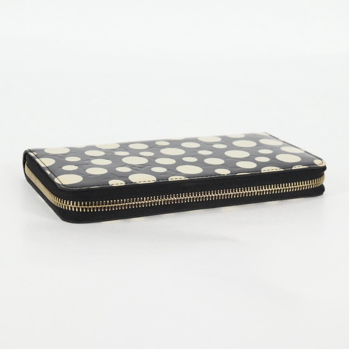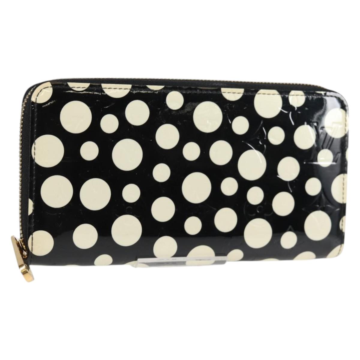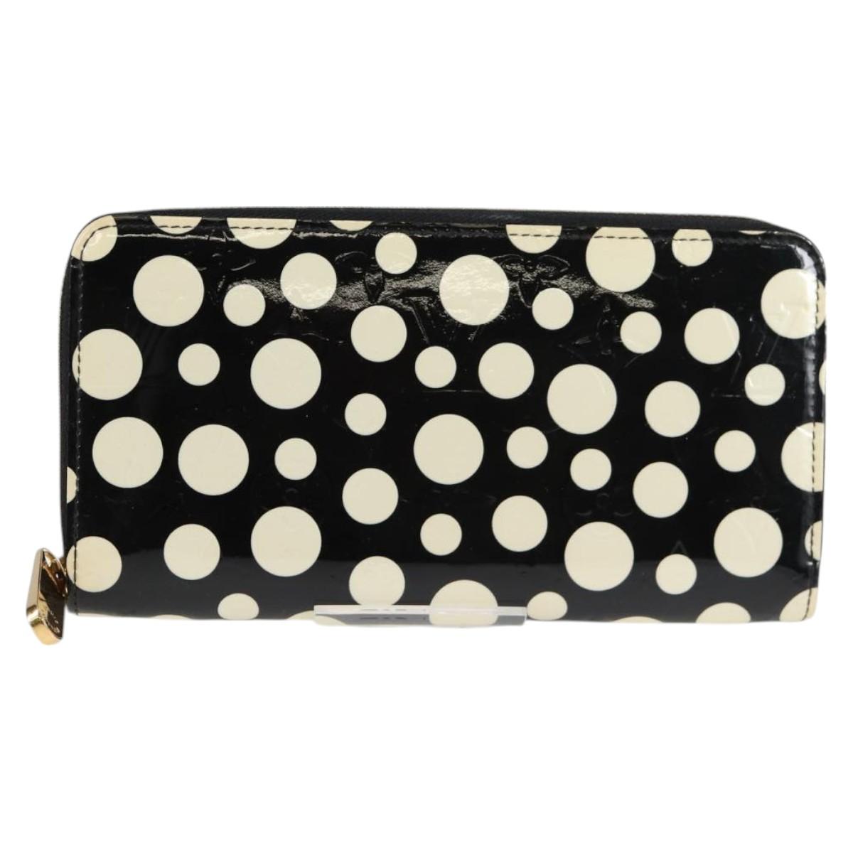 LOUIS VUITTON Vernis Yayoi Kusama Zippy Wallet White Black M91573 Auth 128837V