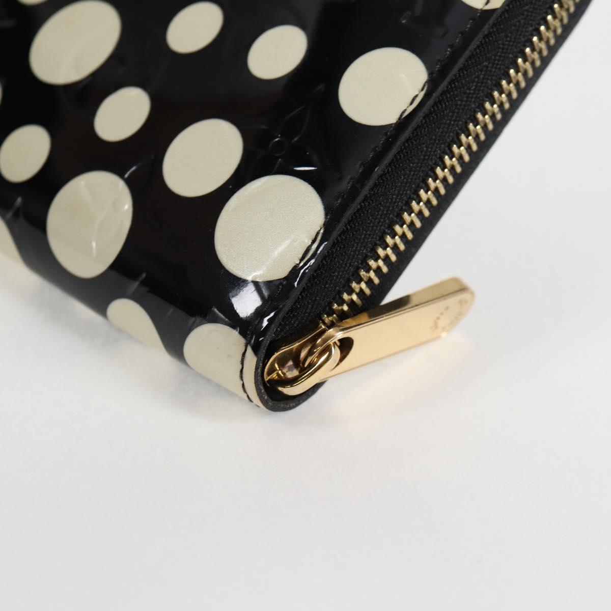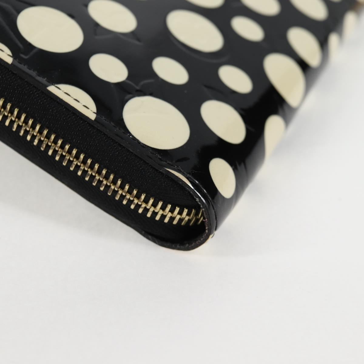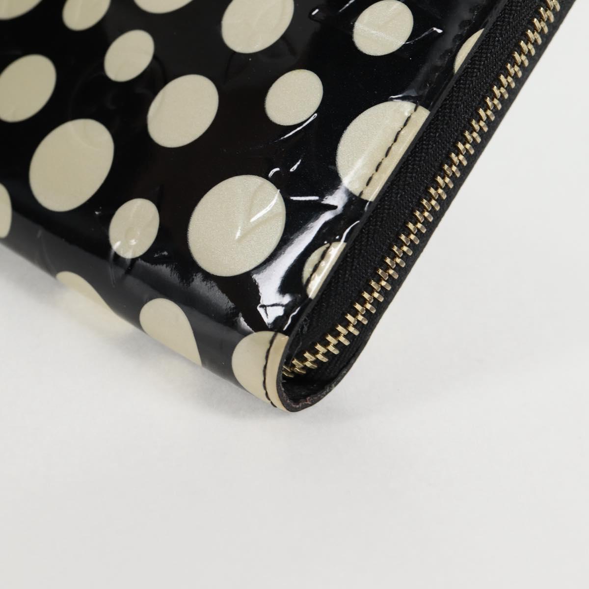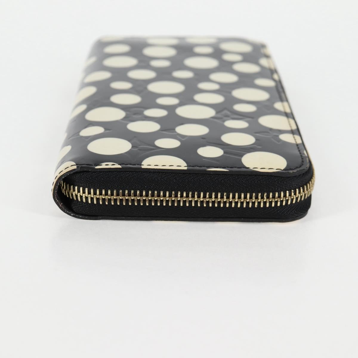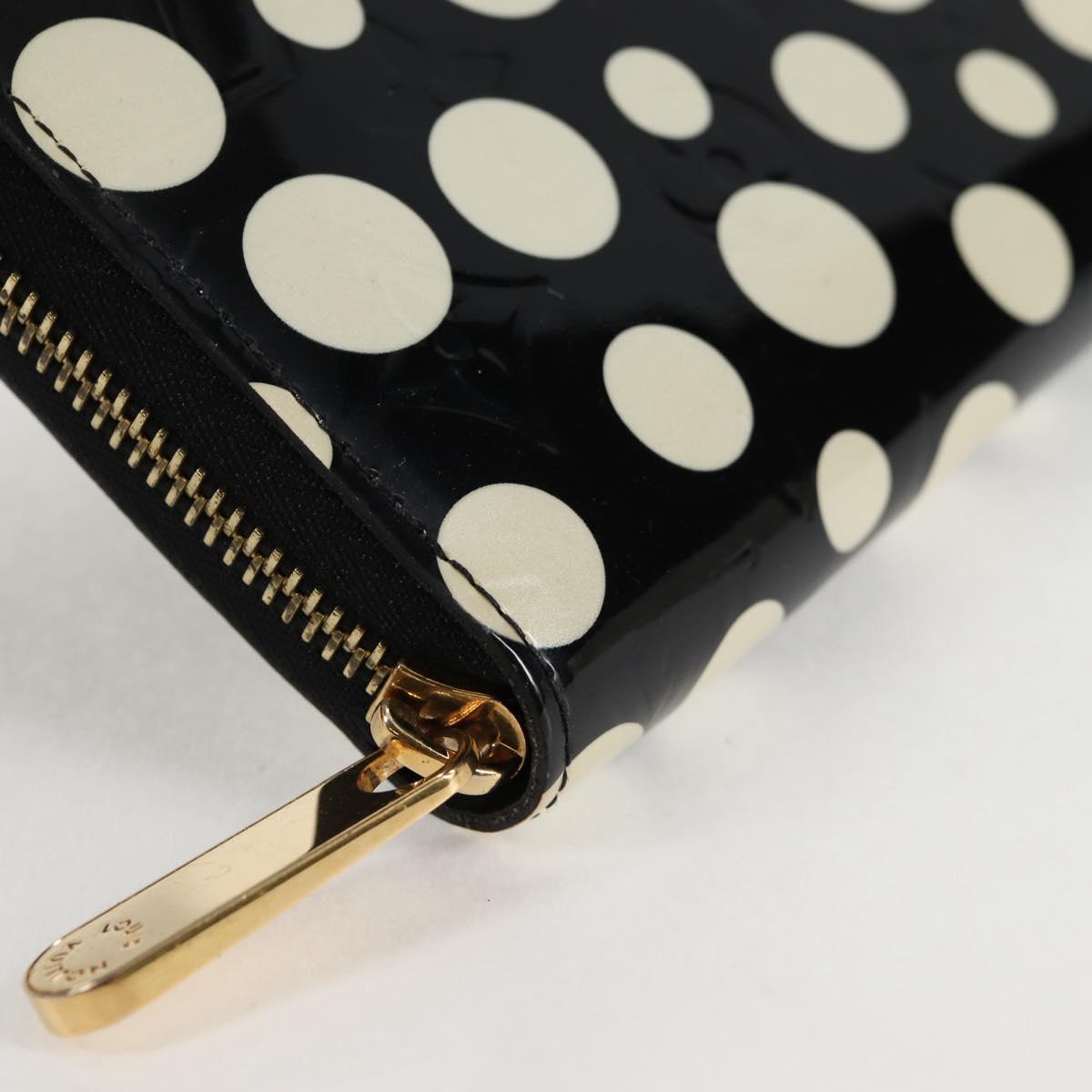 LOUIS VUITTON Vernis Yayoi Kusama Zippy Wallet White Black M91573 Auth 128837V
