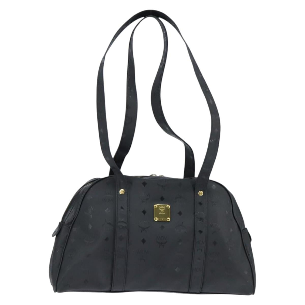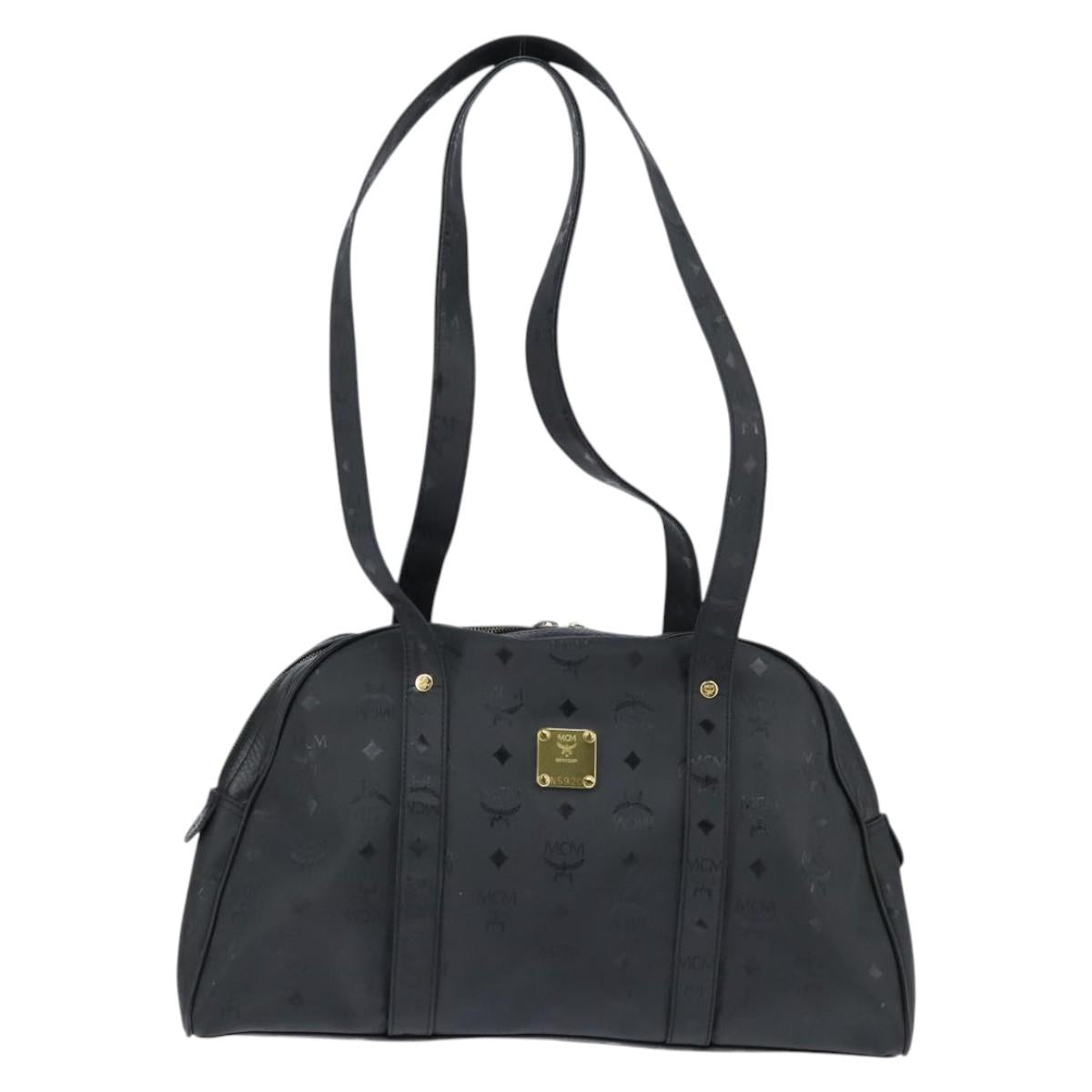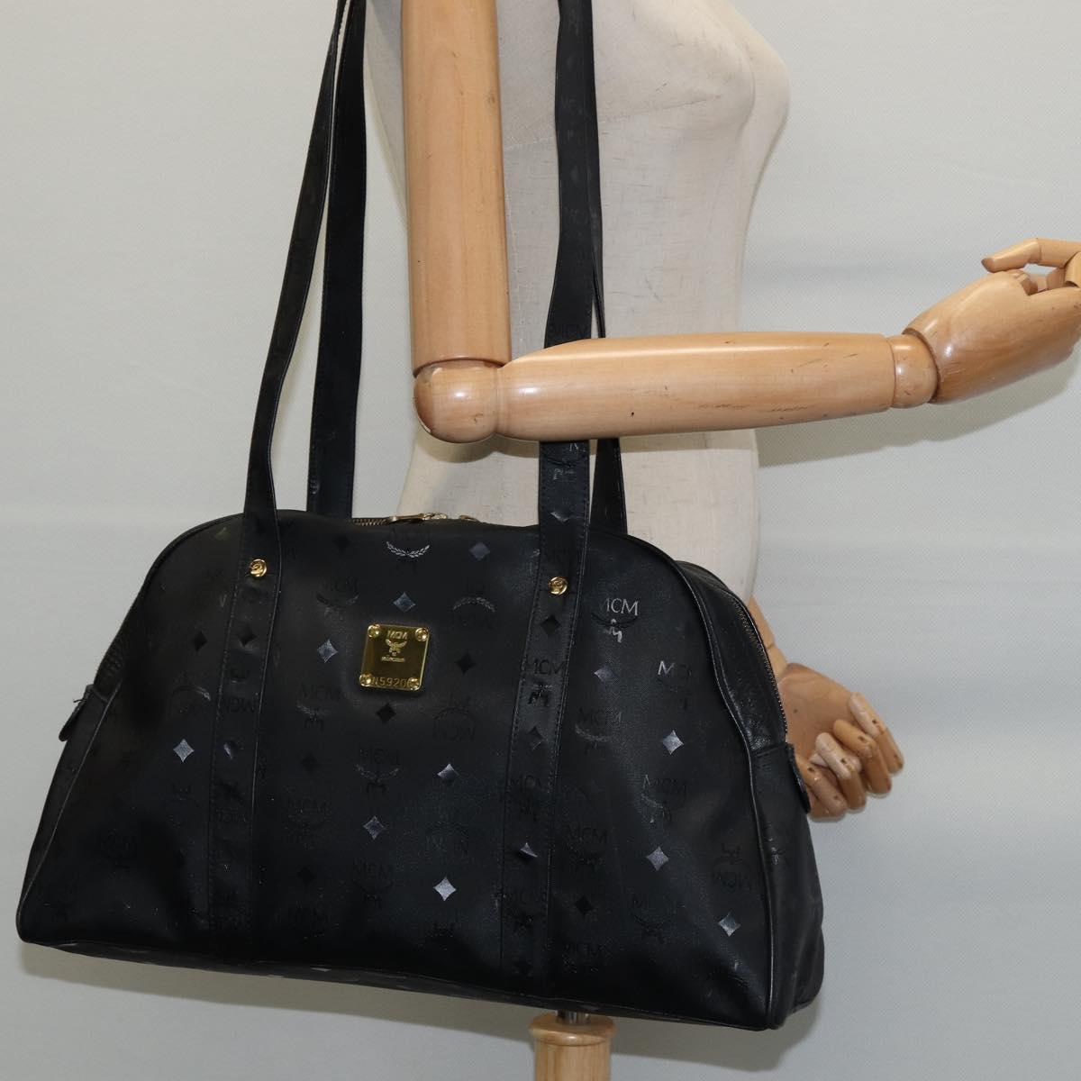 MCM Vicetos Logogram Shoulder Bag PVC Leather Black Gold Auth 146640