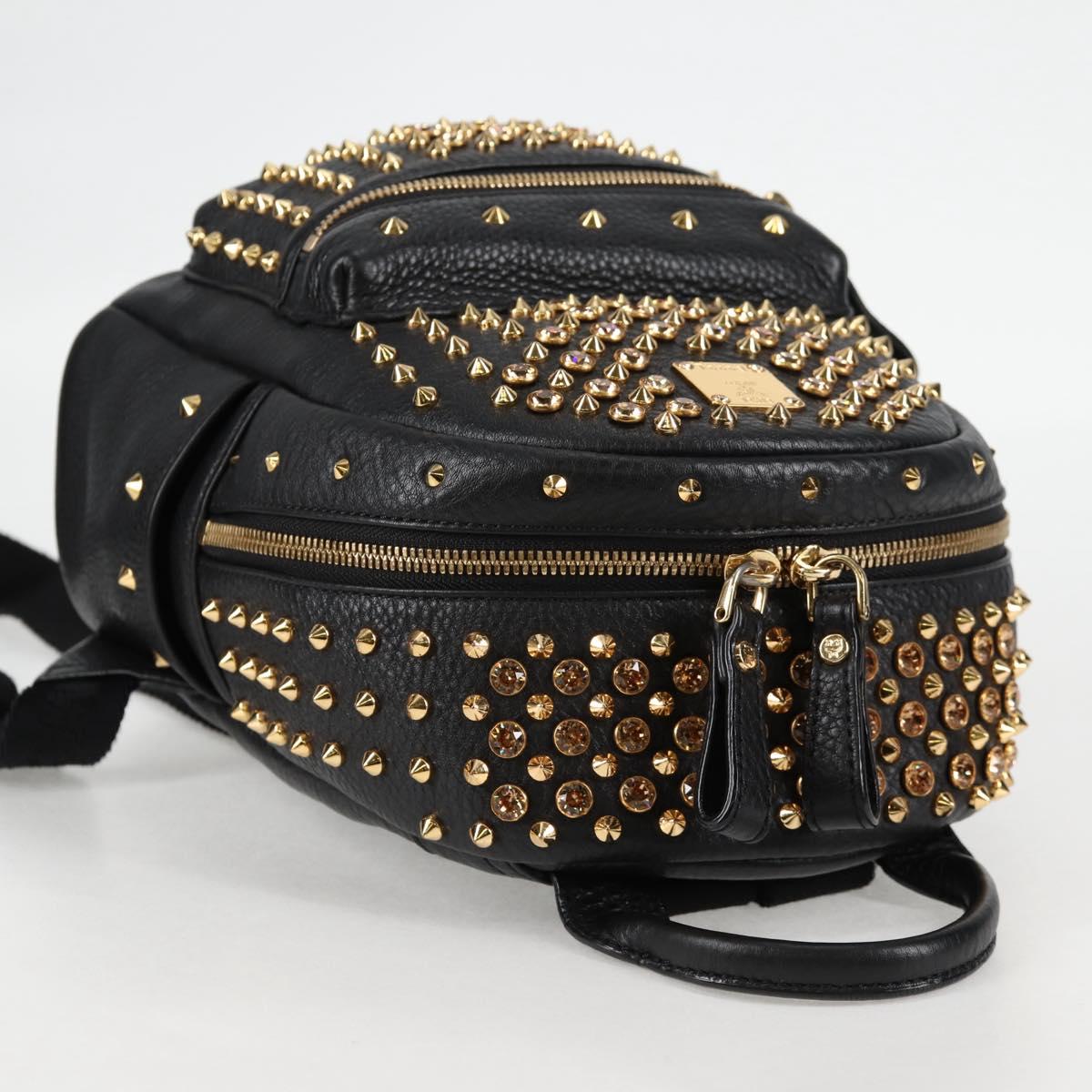 MCM Vicetos Studs Backpack Leather Black Gold Auth yk19000V