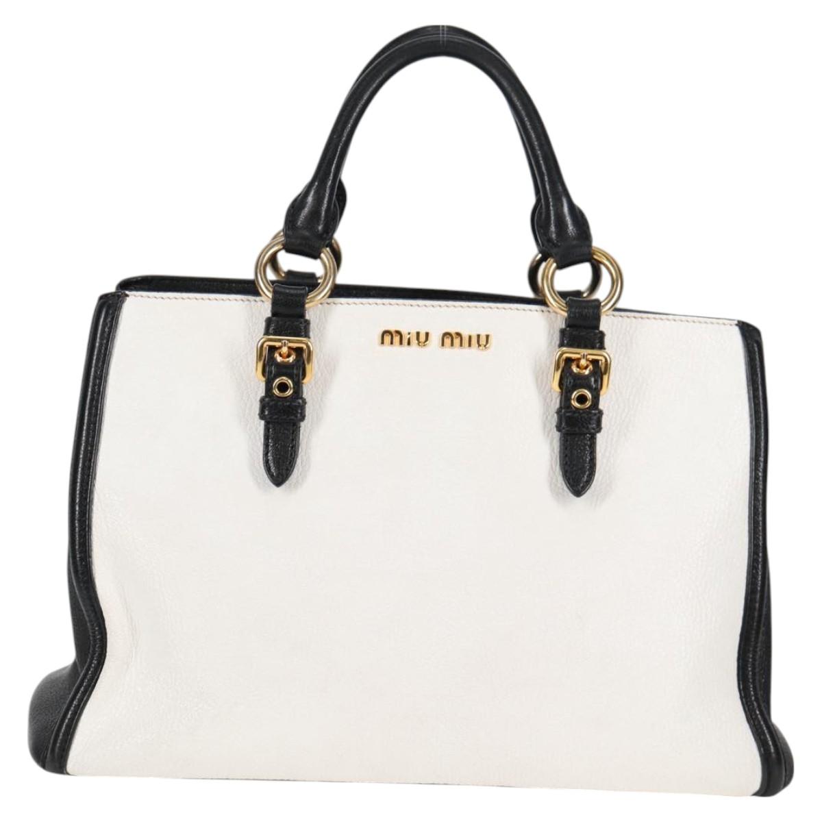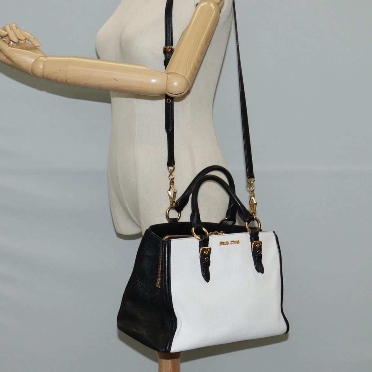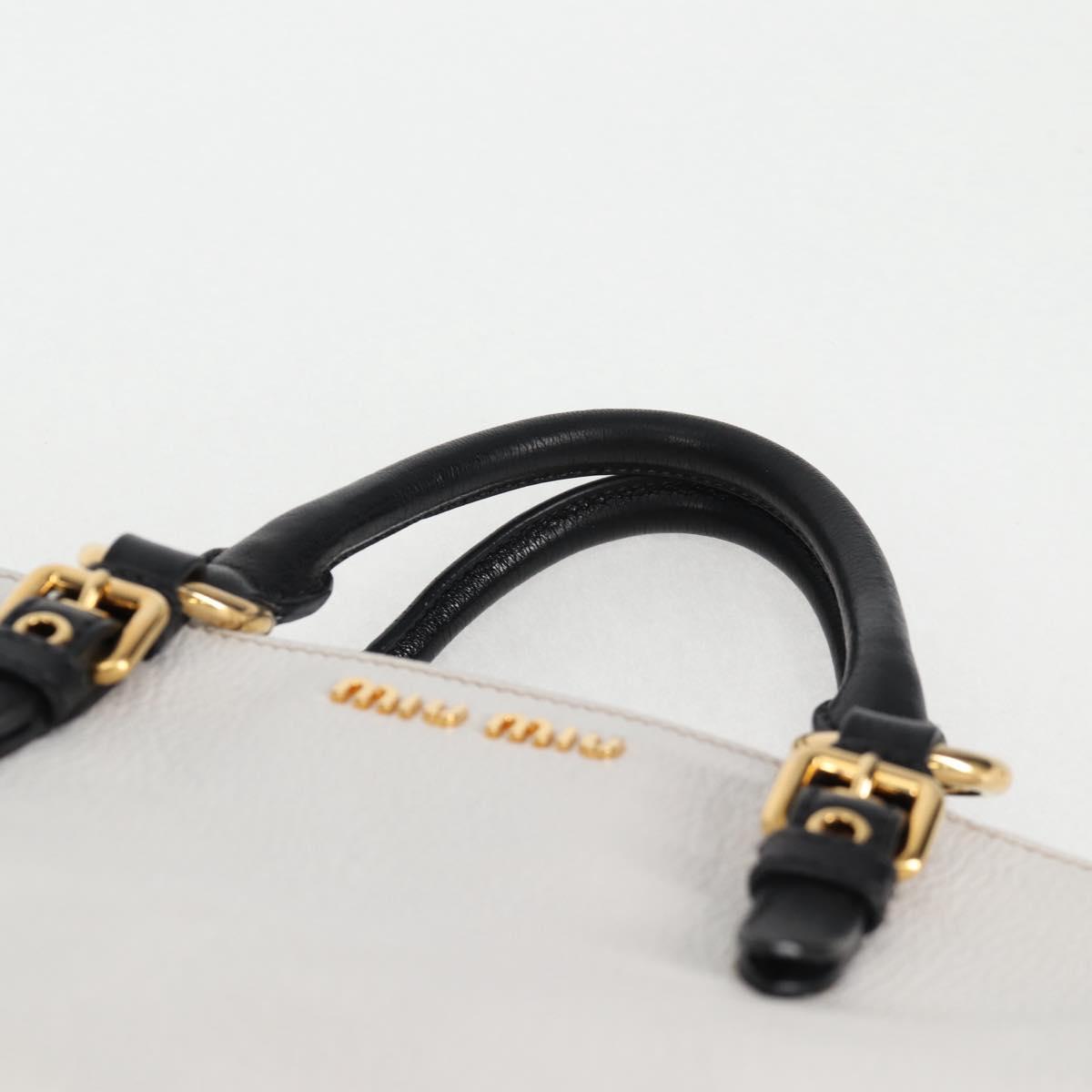 Miu Miu Hand Bag Leather 2way White Gold black Auth 130112V