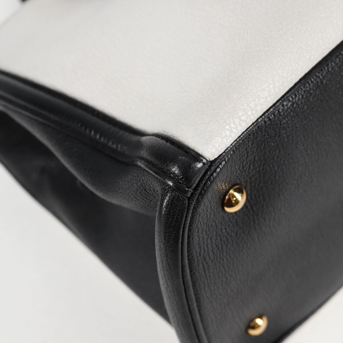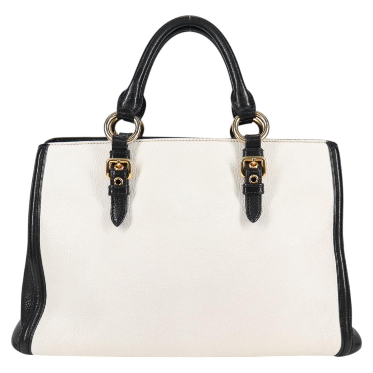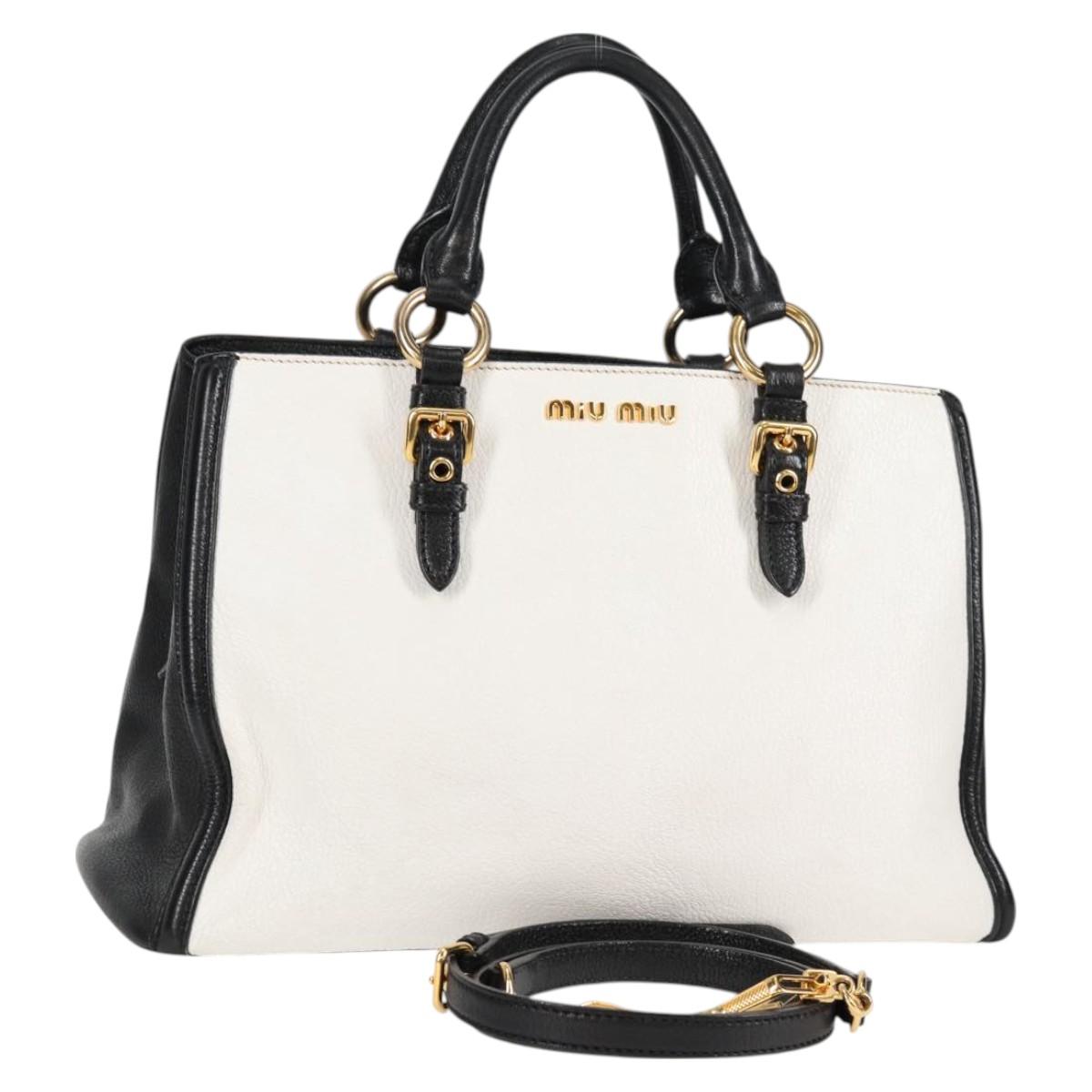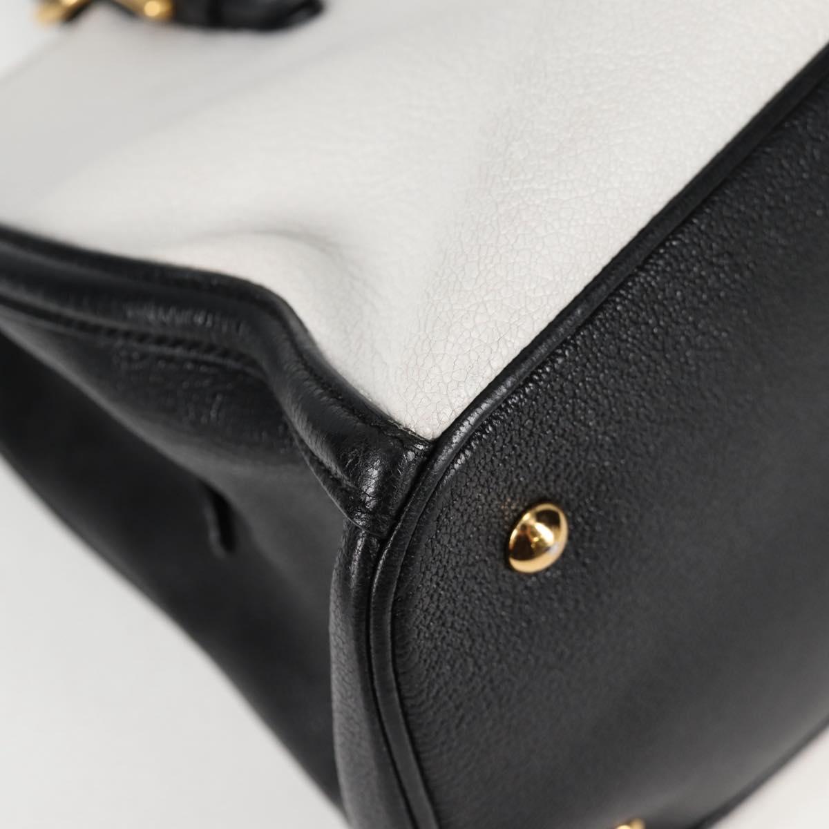 Miu Miu Hand Bag Leather 2way White Gold black Auth 130112V