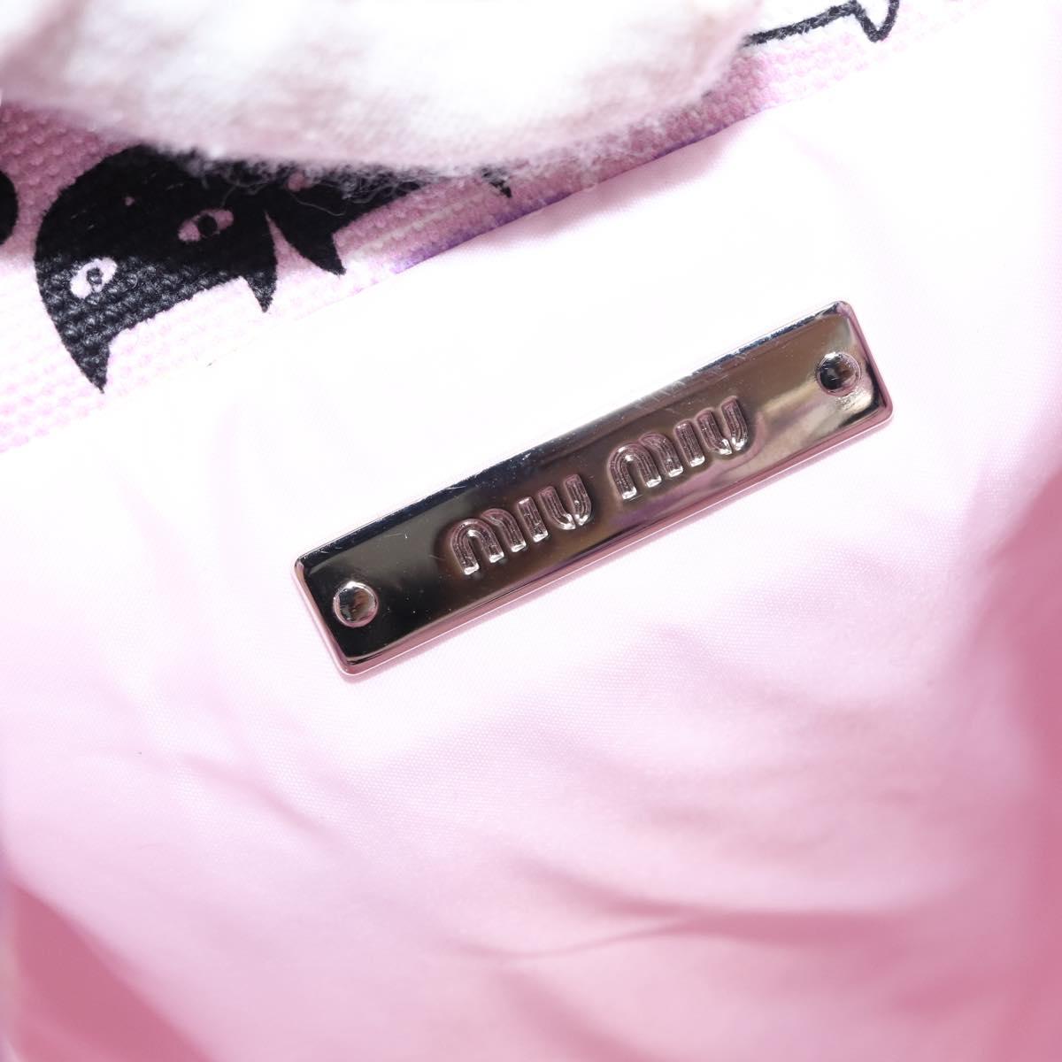 Miu Miu Madras Cat Drawstring Pouch Canvas Pink Silver Auth bs30224