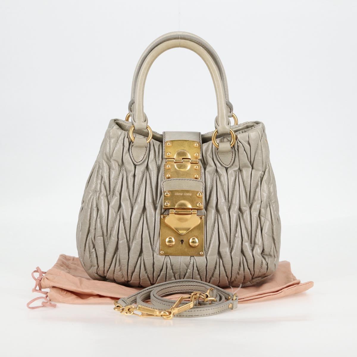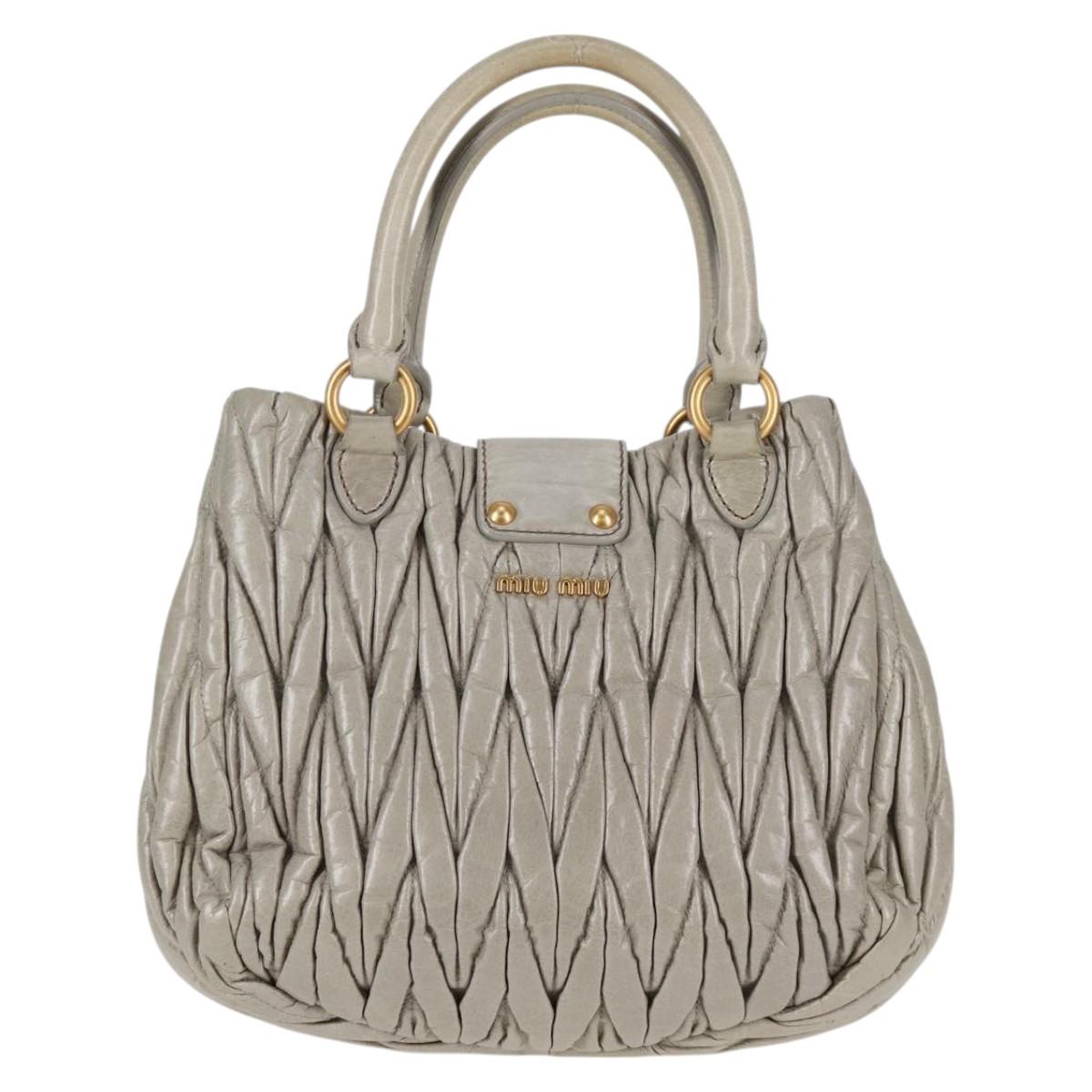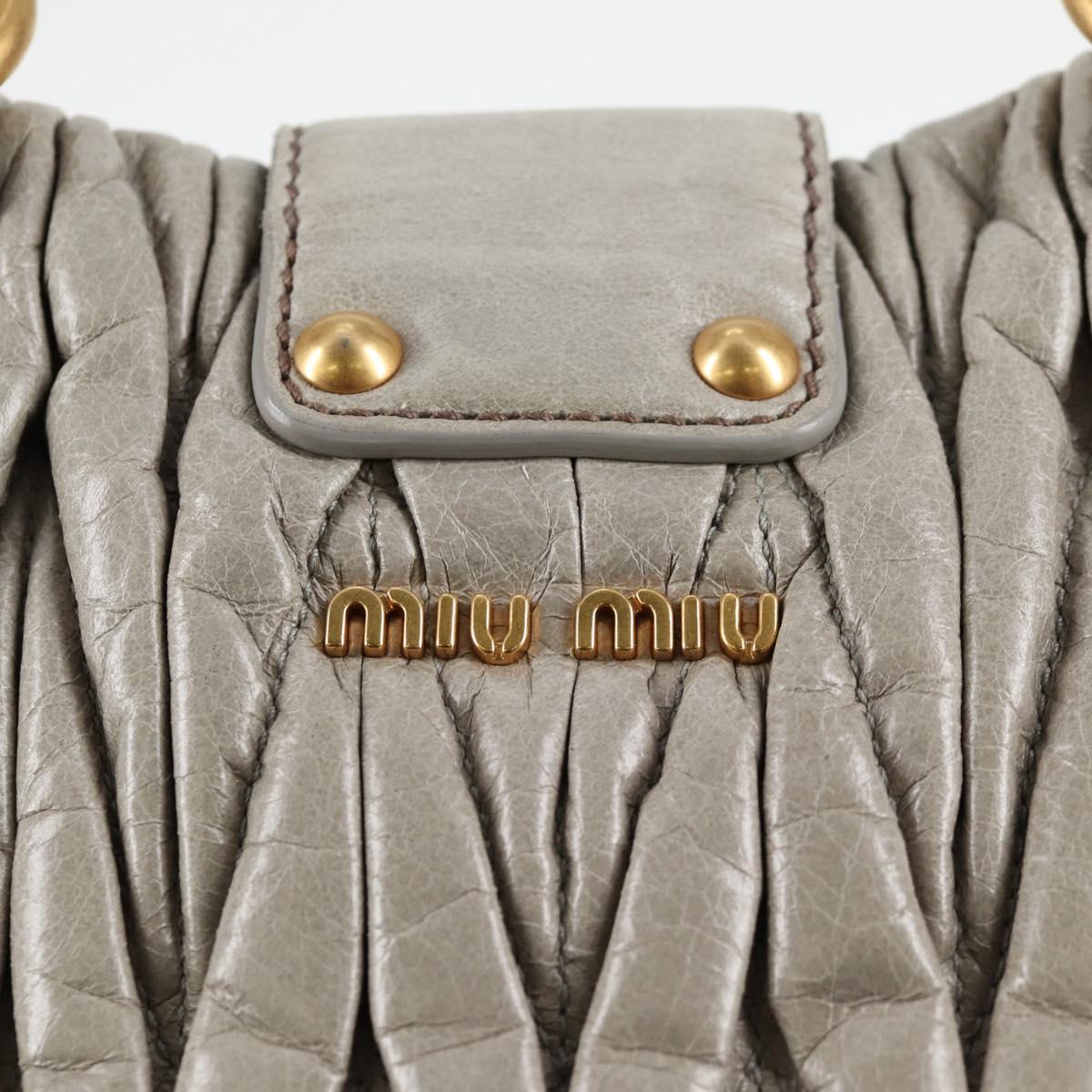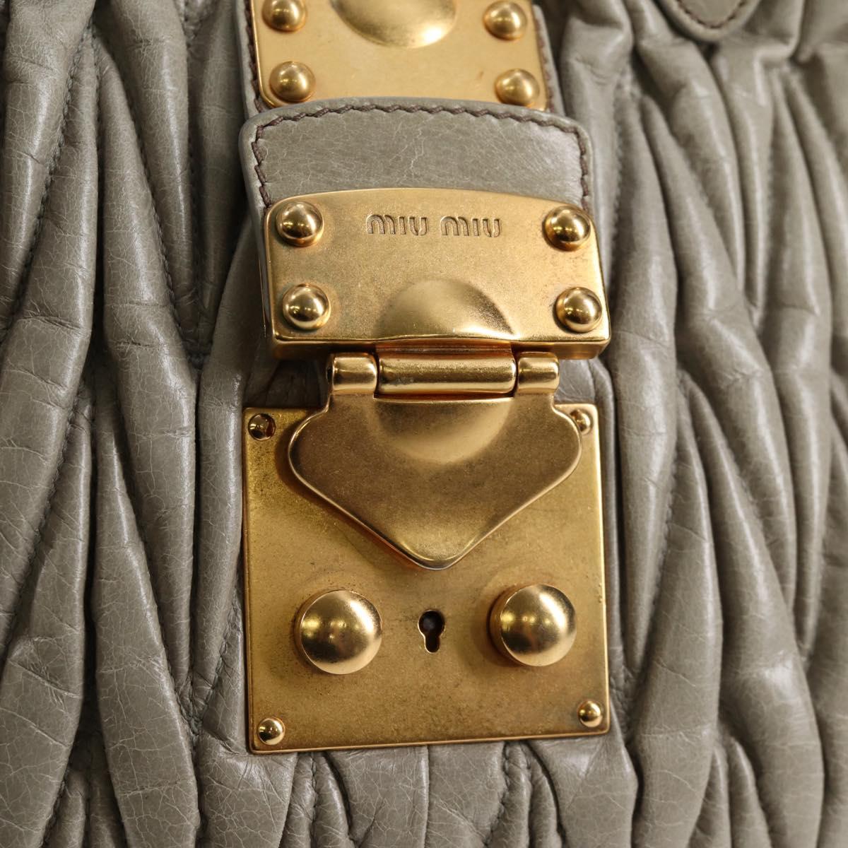 Miu Miu Matelasse Hand Bag Leather 2way Gray Gold Auth 130896V
