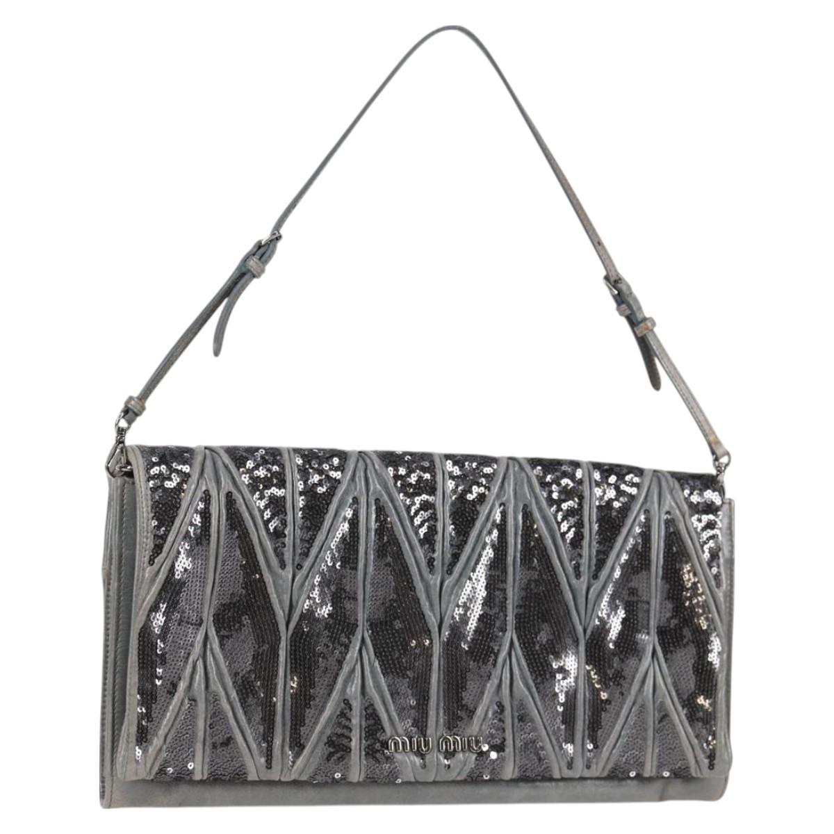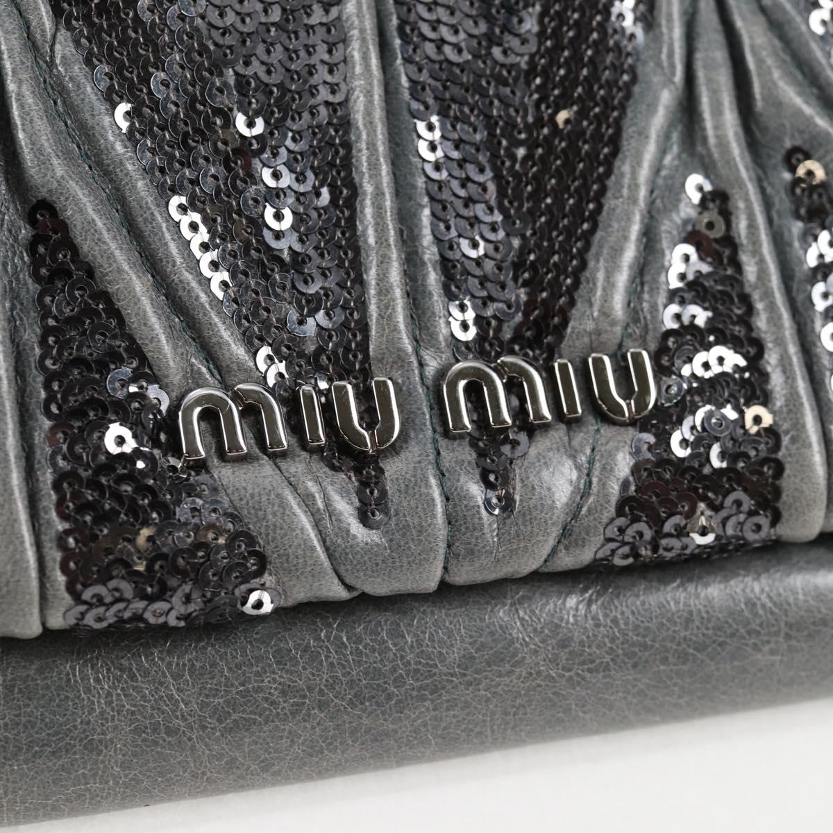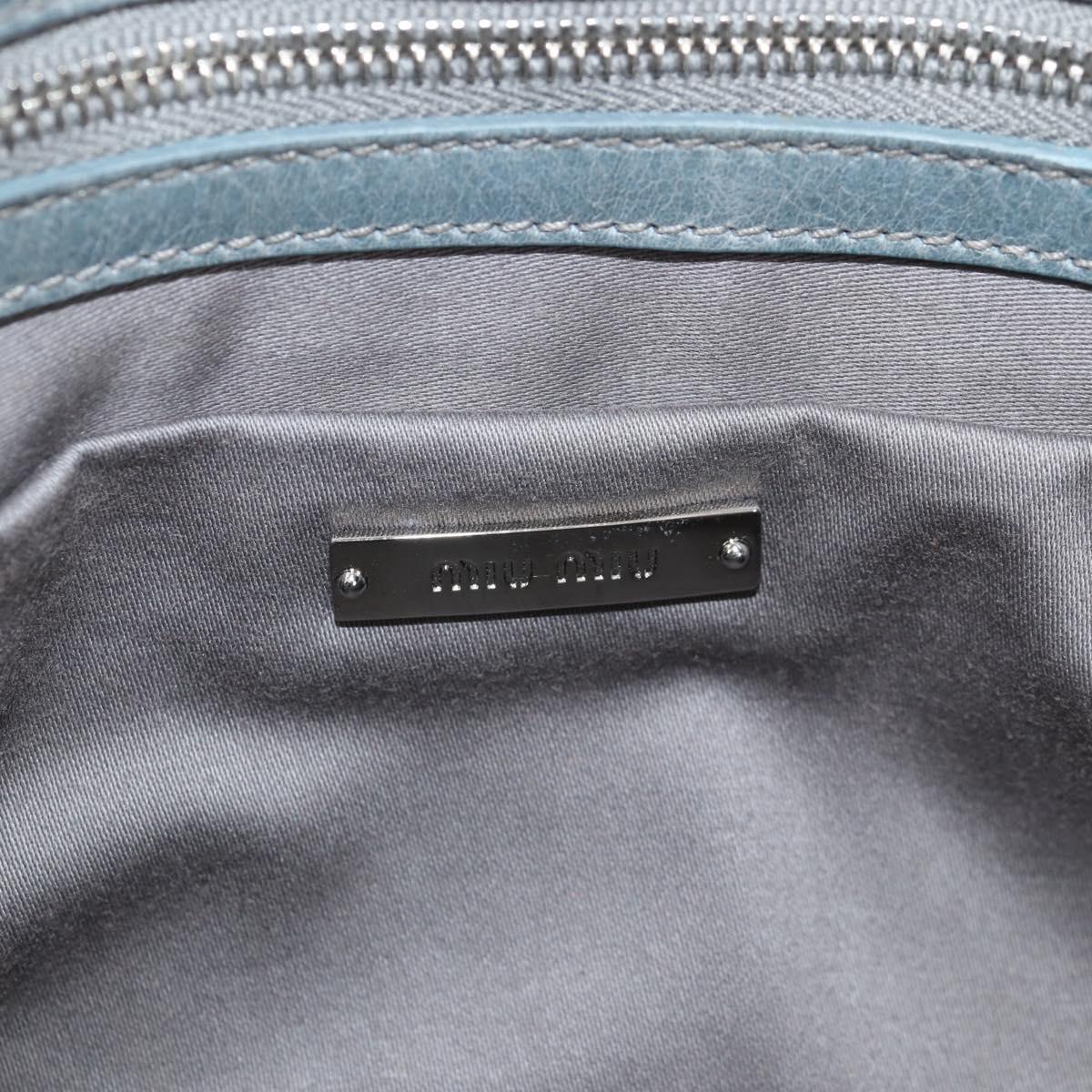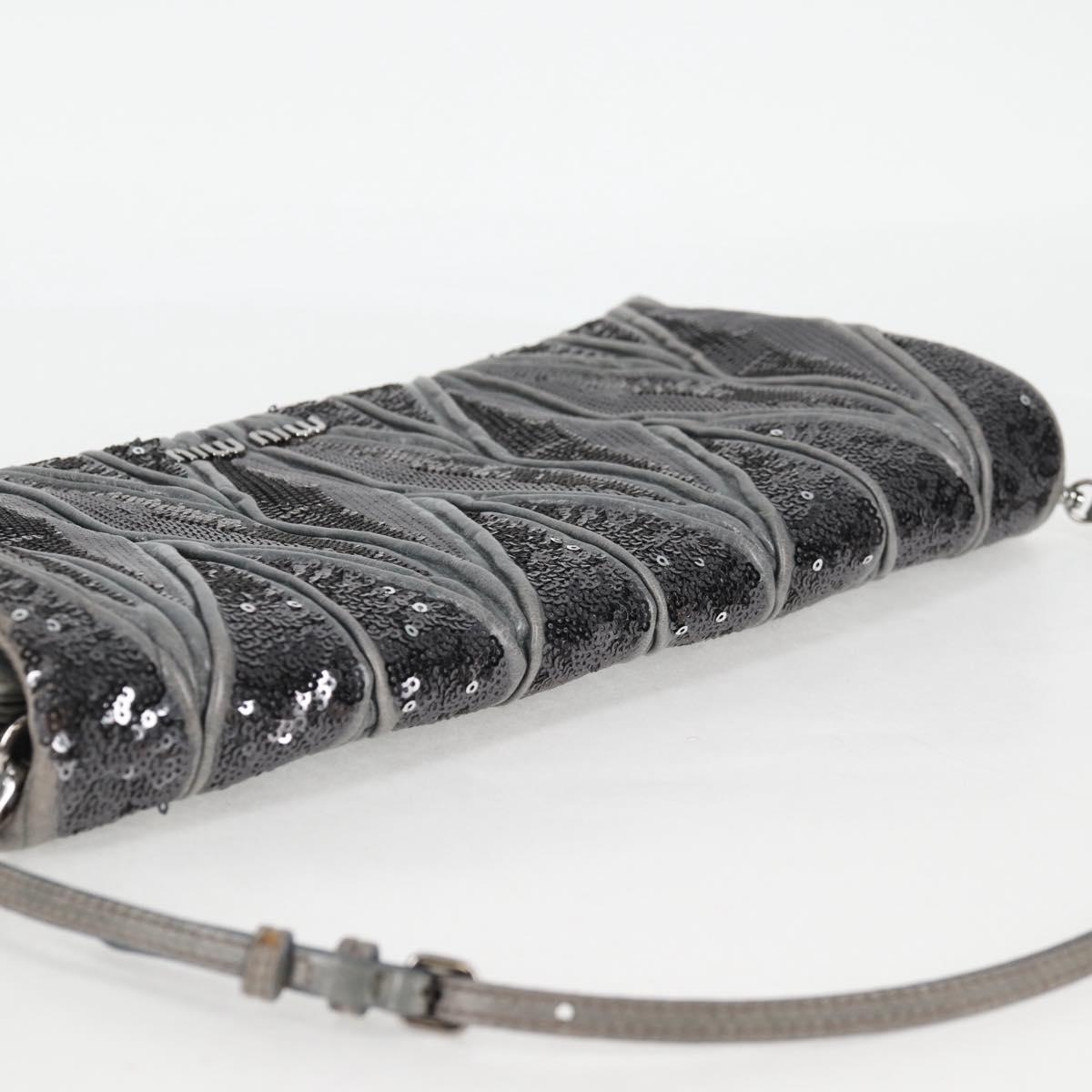 Miu Miu Sequin Shoulder Bag Leather Light Blue Silver Auth 130158V