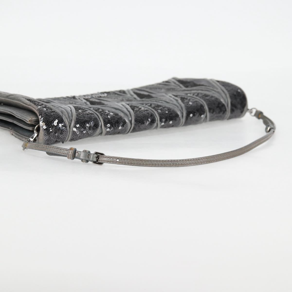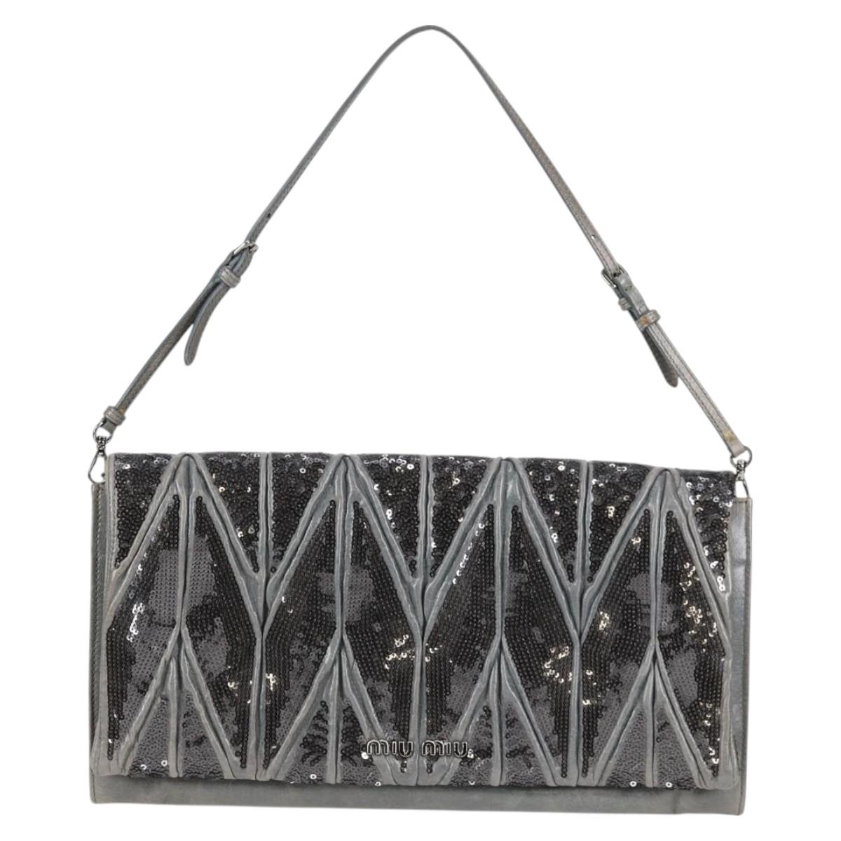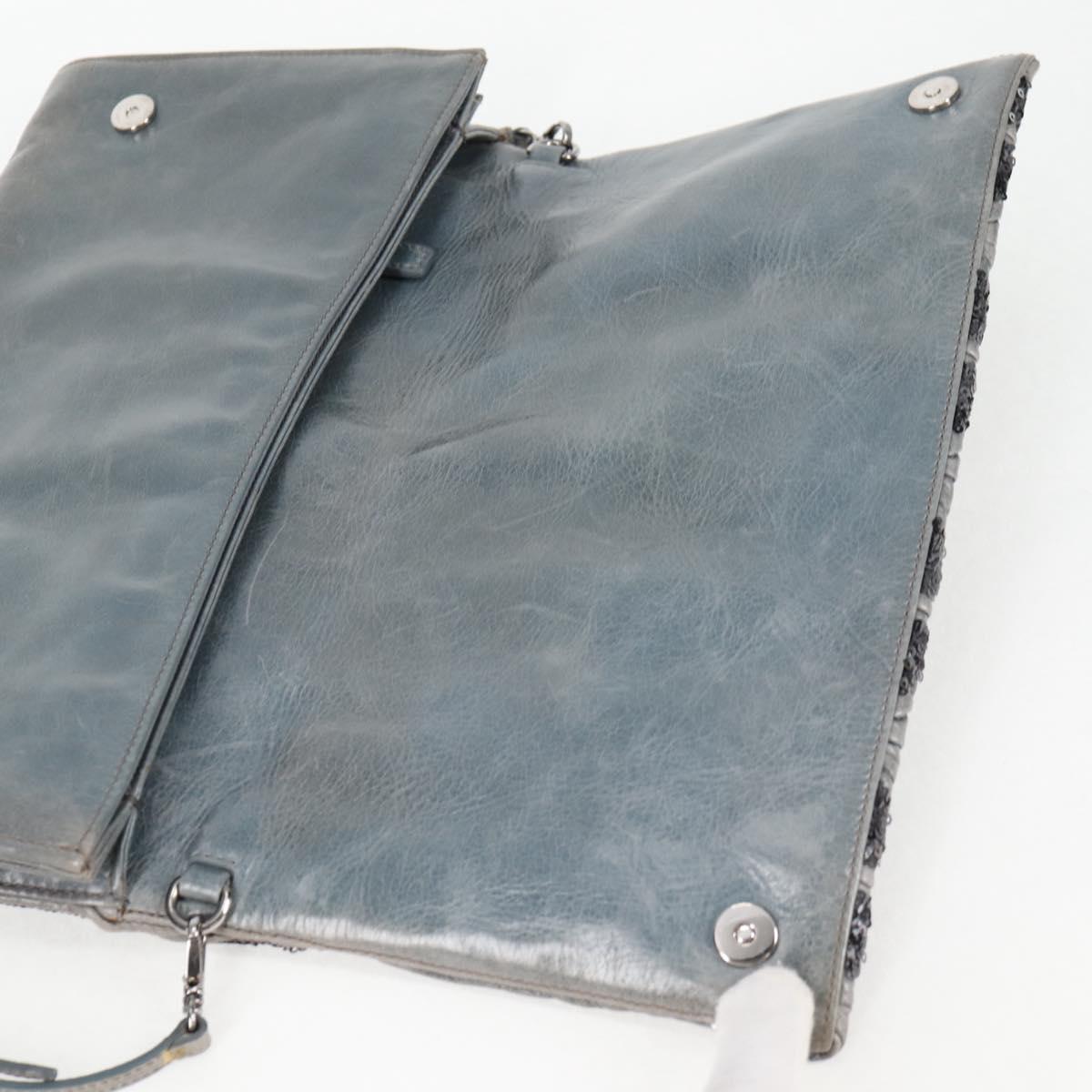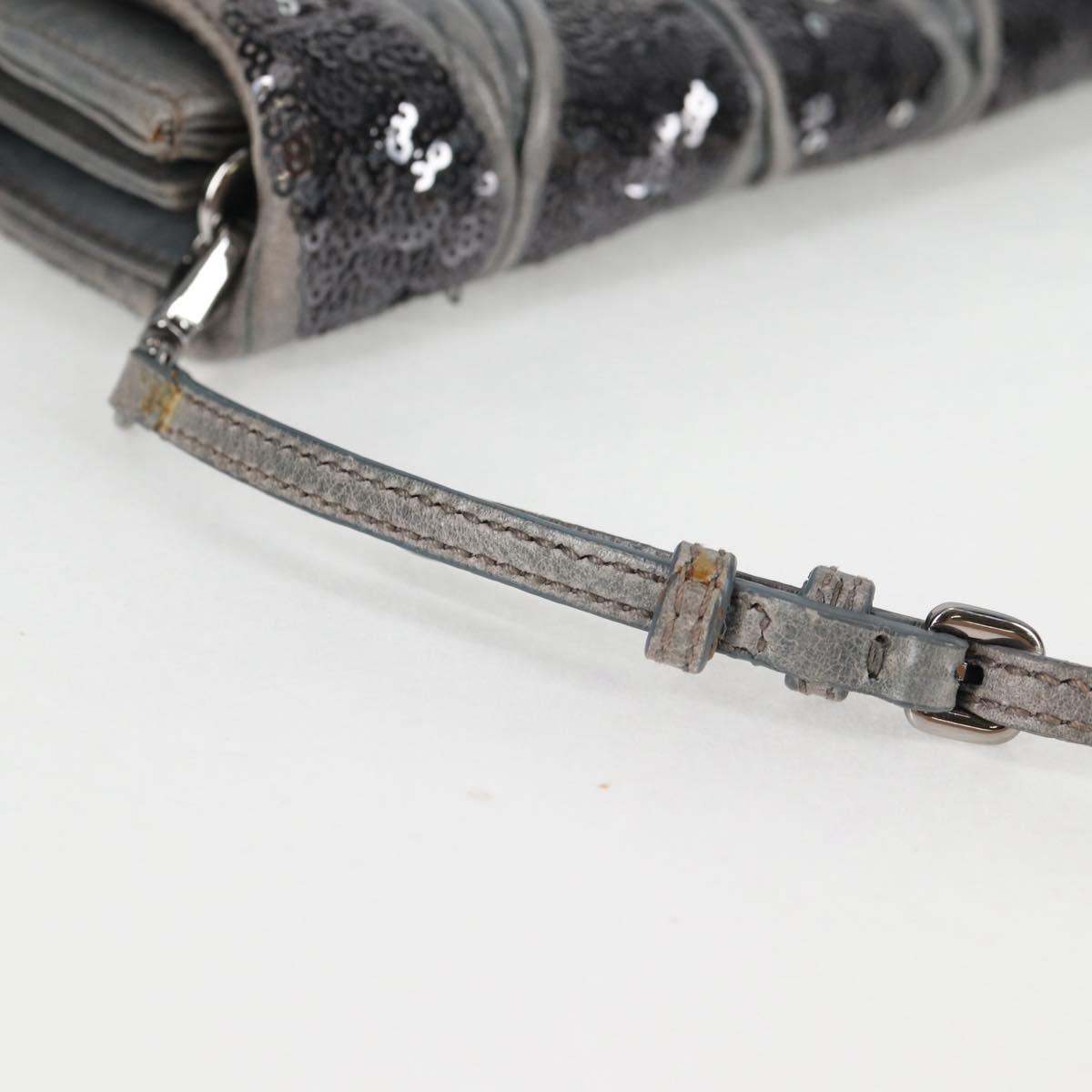 Miu Miu Sequin Shoulder Bag Leather Light Blue Silver Auth 130158V