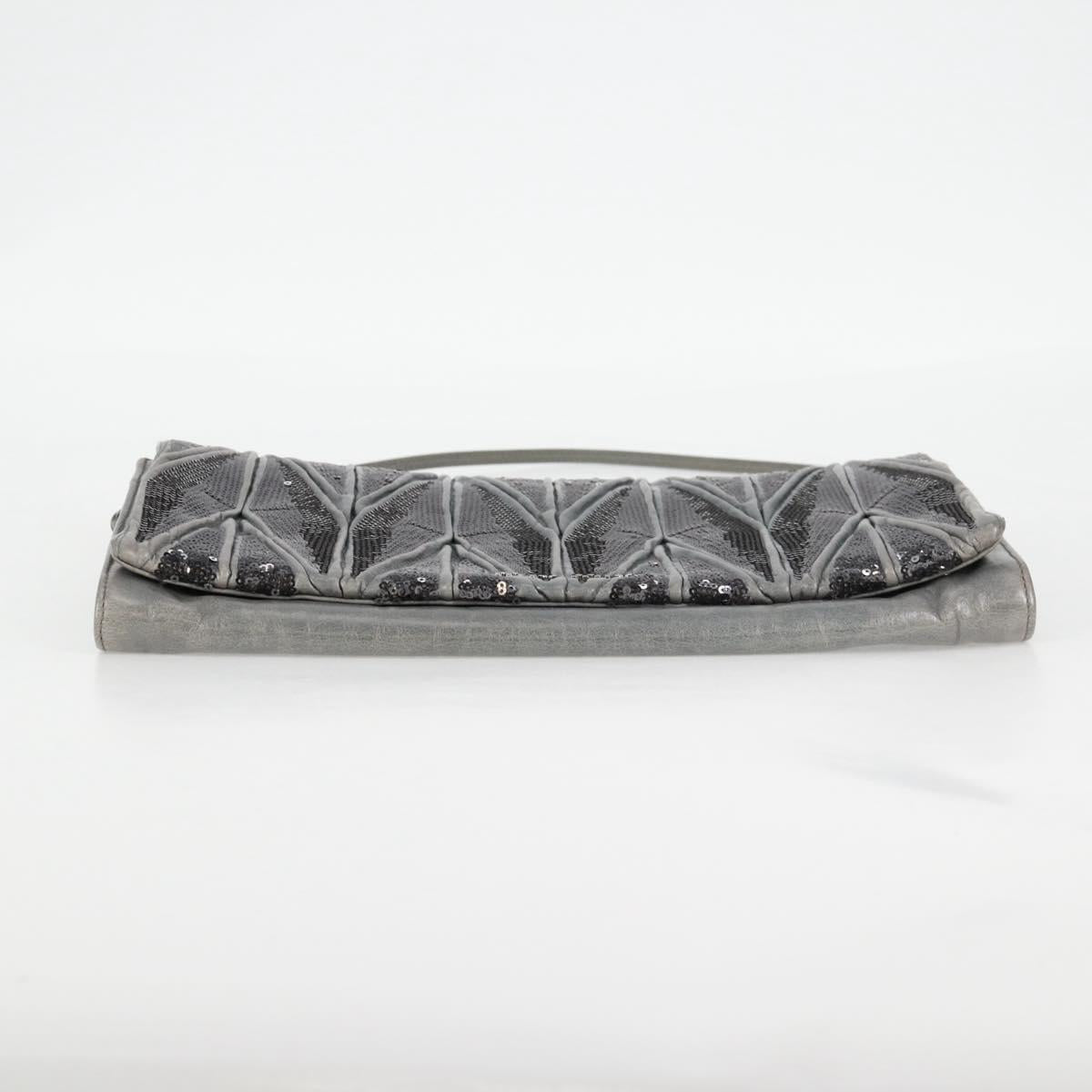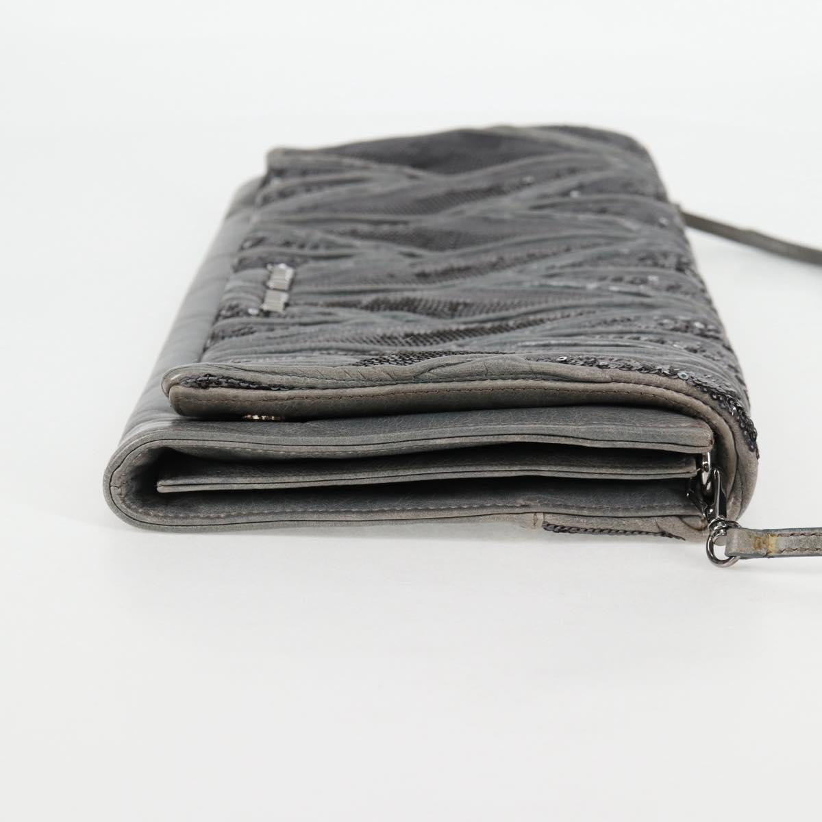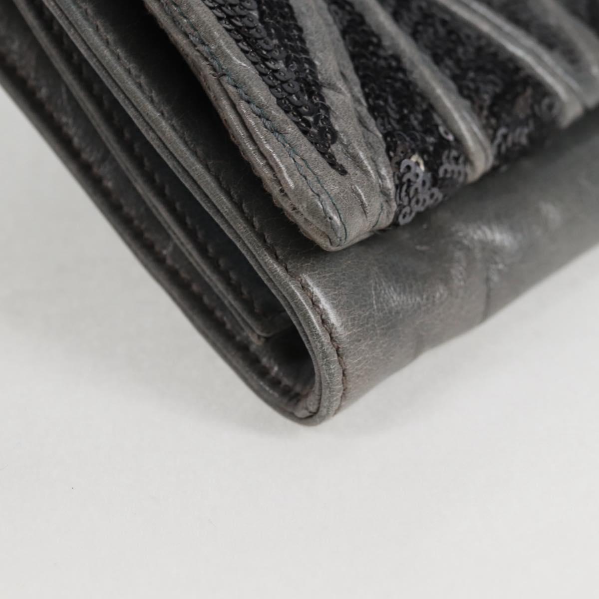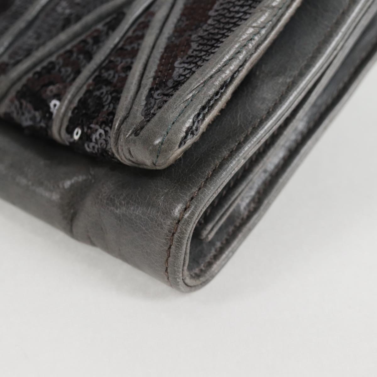 Miu Miu Sequin Shoulder Bag Leather Light Blue Silver Auth 130158V