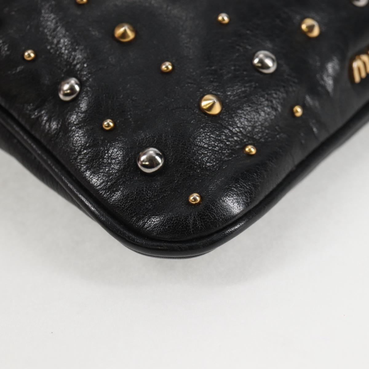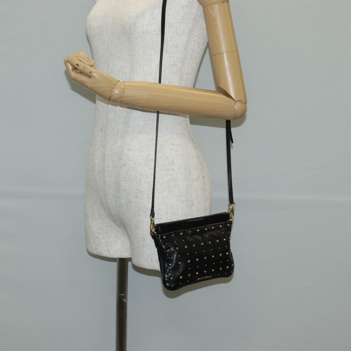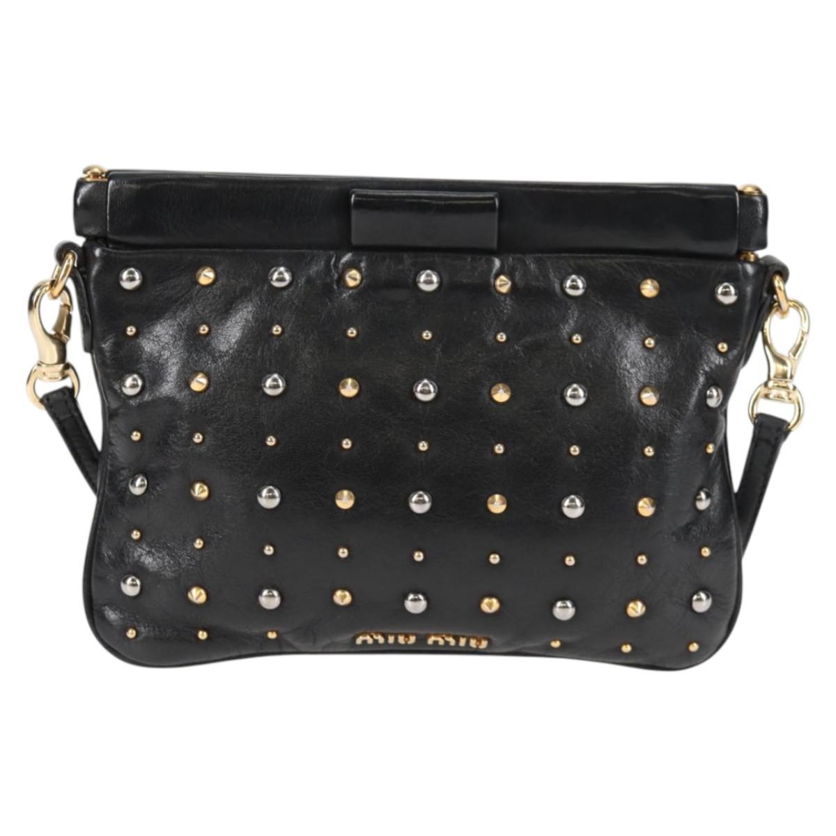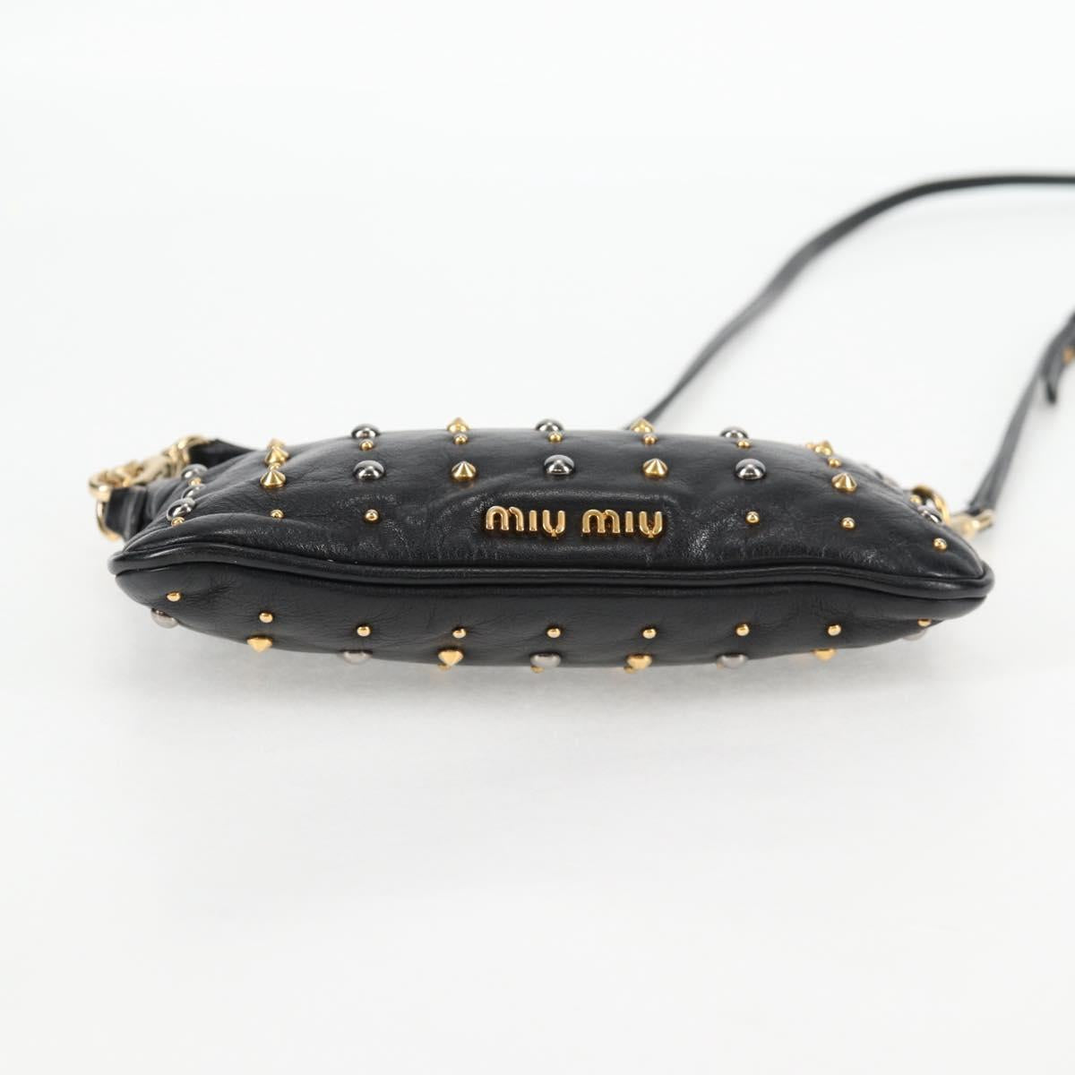 Miu Miu Shoulder Bag Leather Black Gold Auth sw1084V