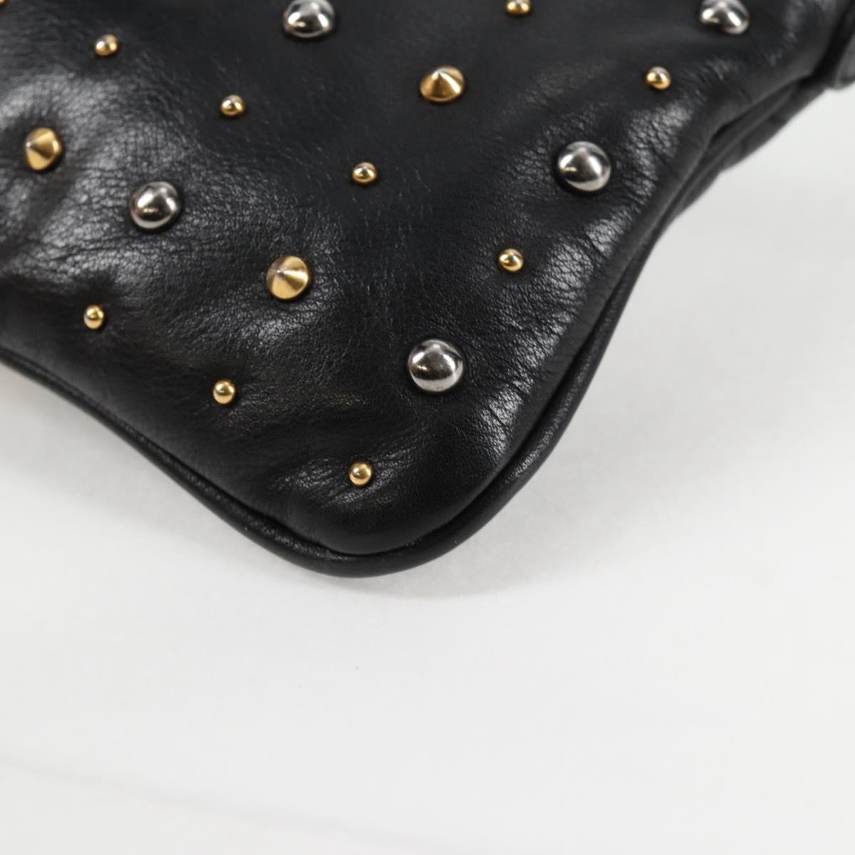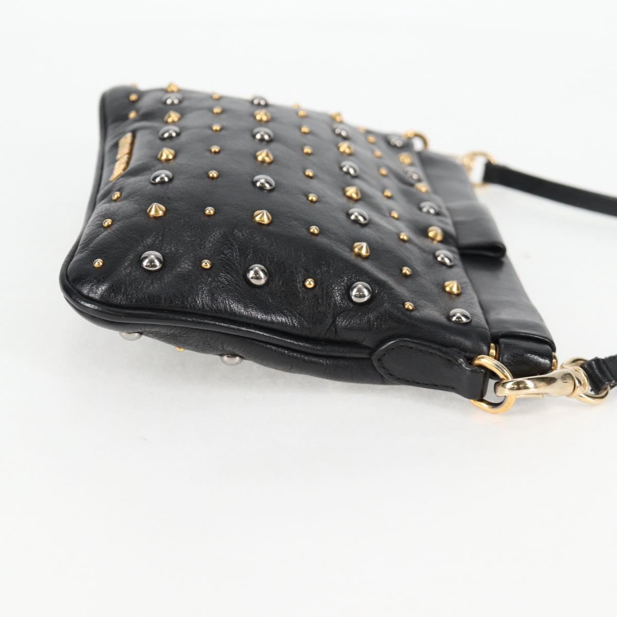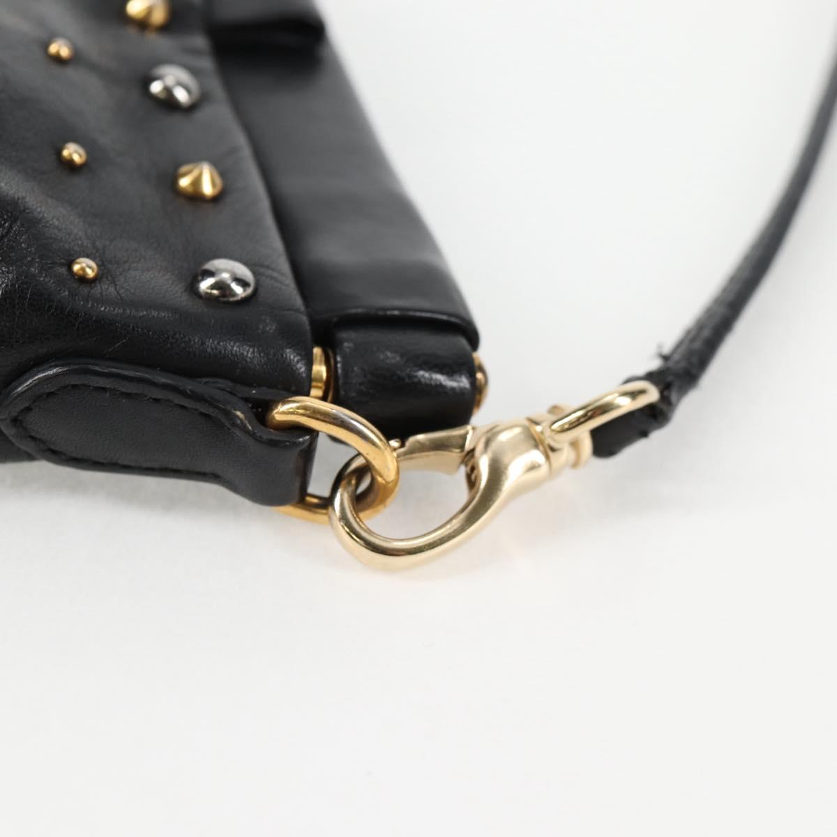 Miu Miu Shoulder Bag Leather Black Gold Auth sw1084V