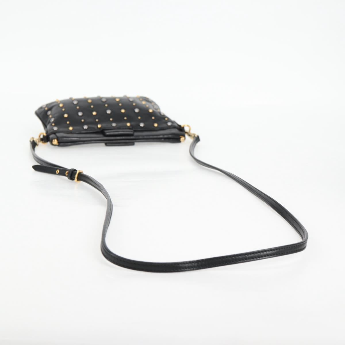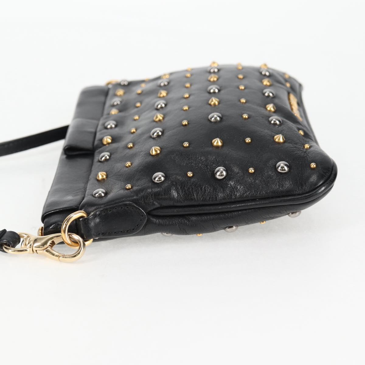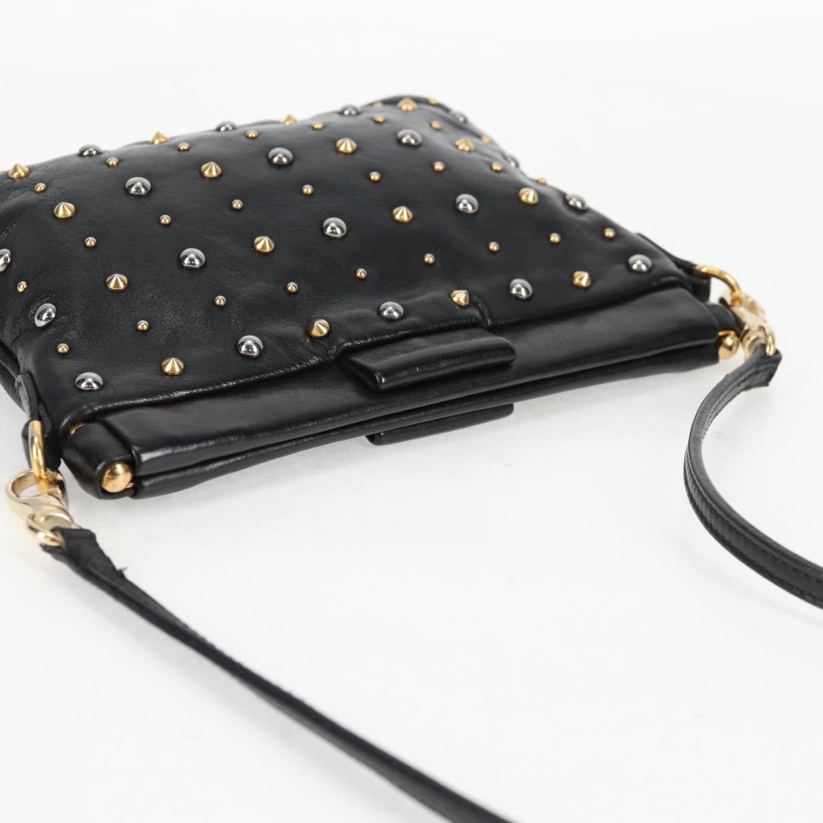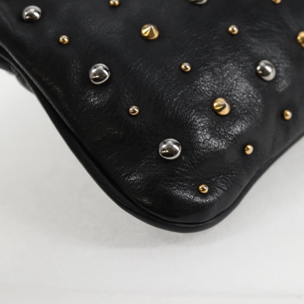 Miu Miu Shoulder Bag Leather Black Gold Auth sw1084V