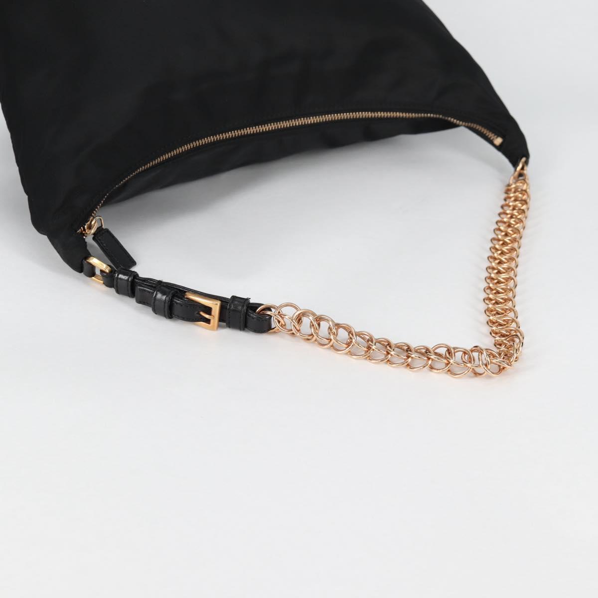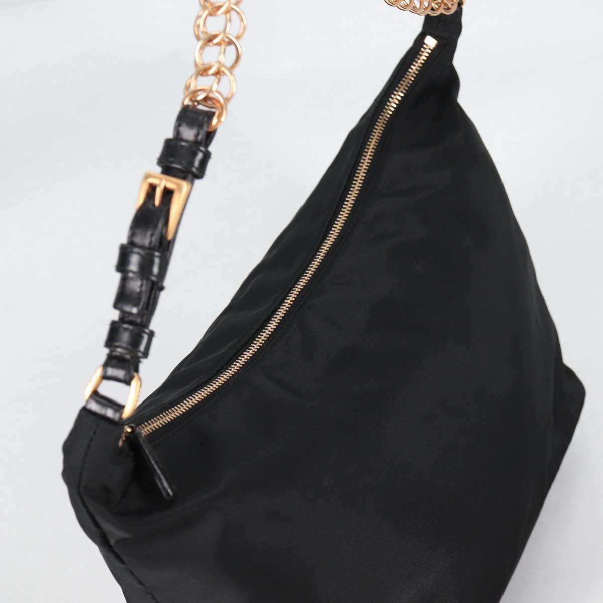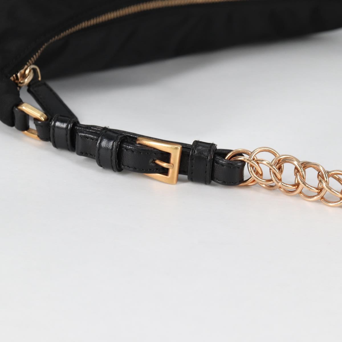 PRADA Chain Shoulder Bag Nylon Black Gold Auth 141036V