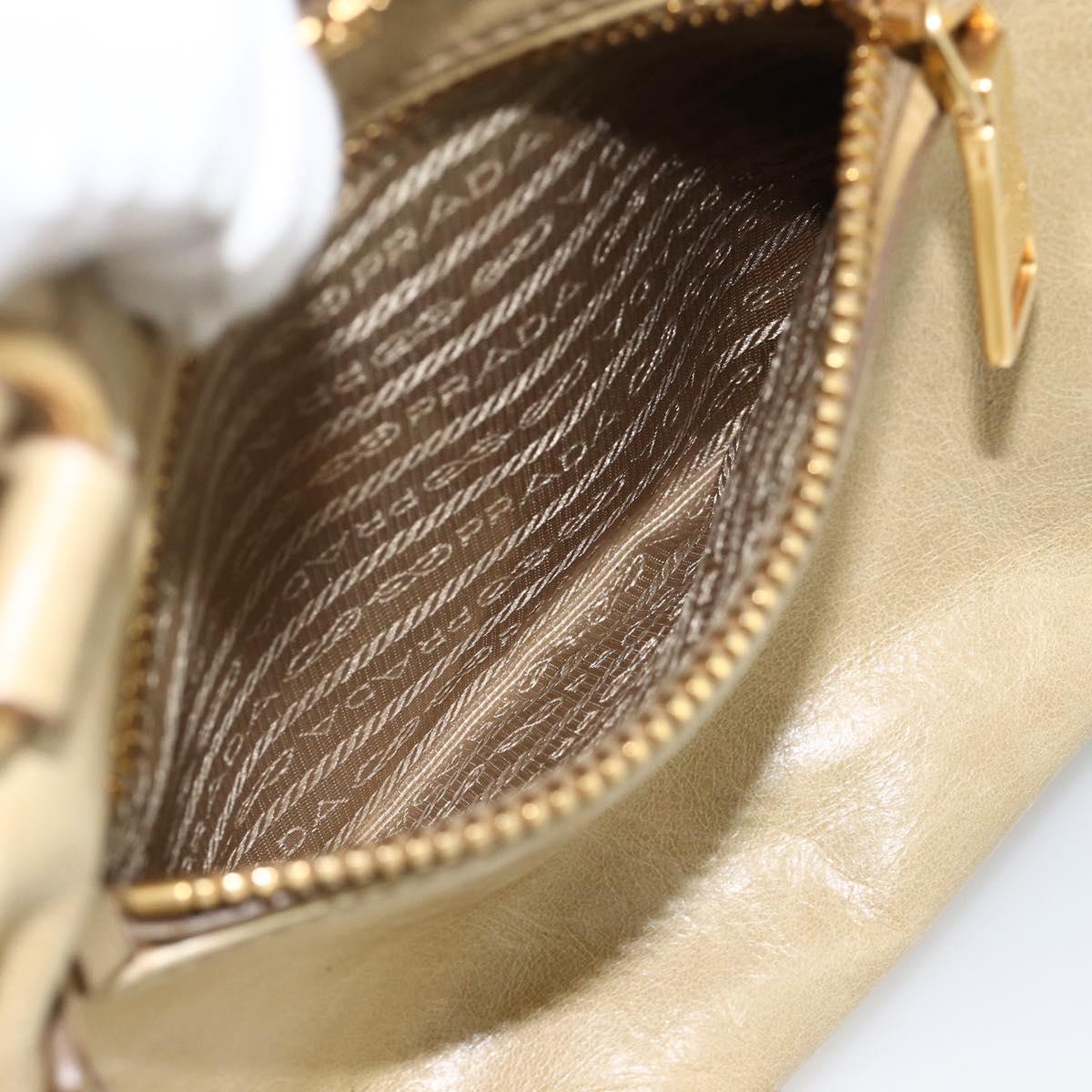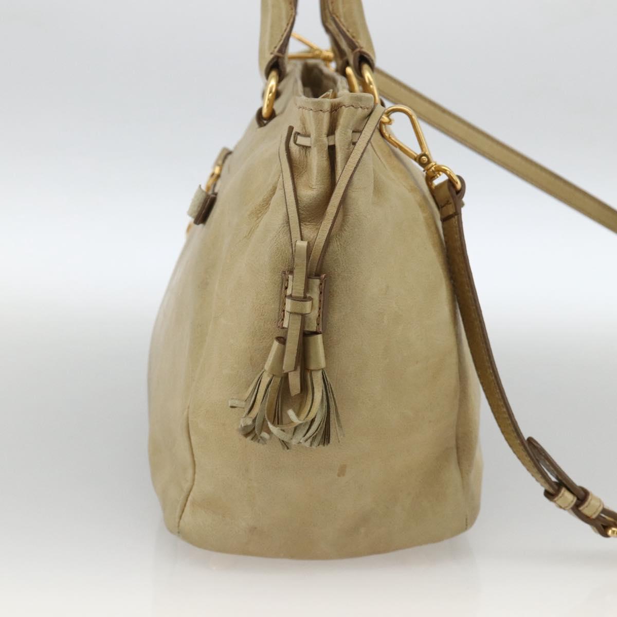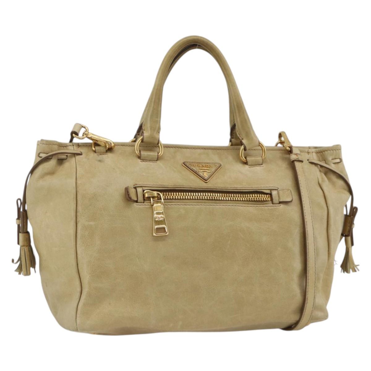 PRADA Hand Bag Leather 2way Beige Gold Auth 174345