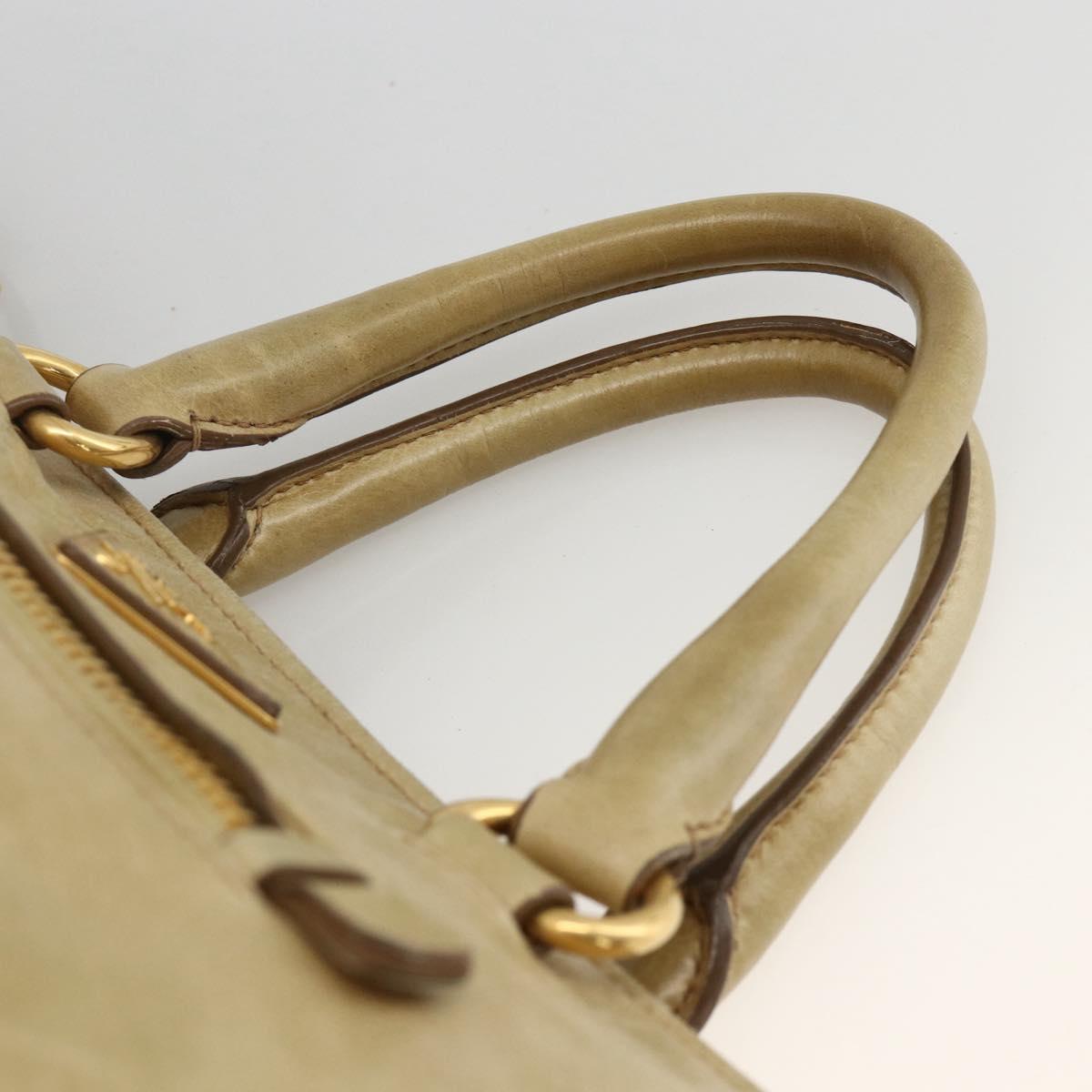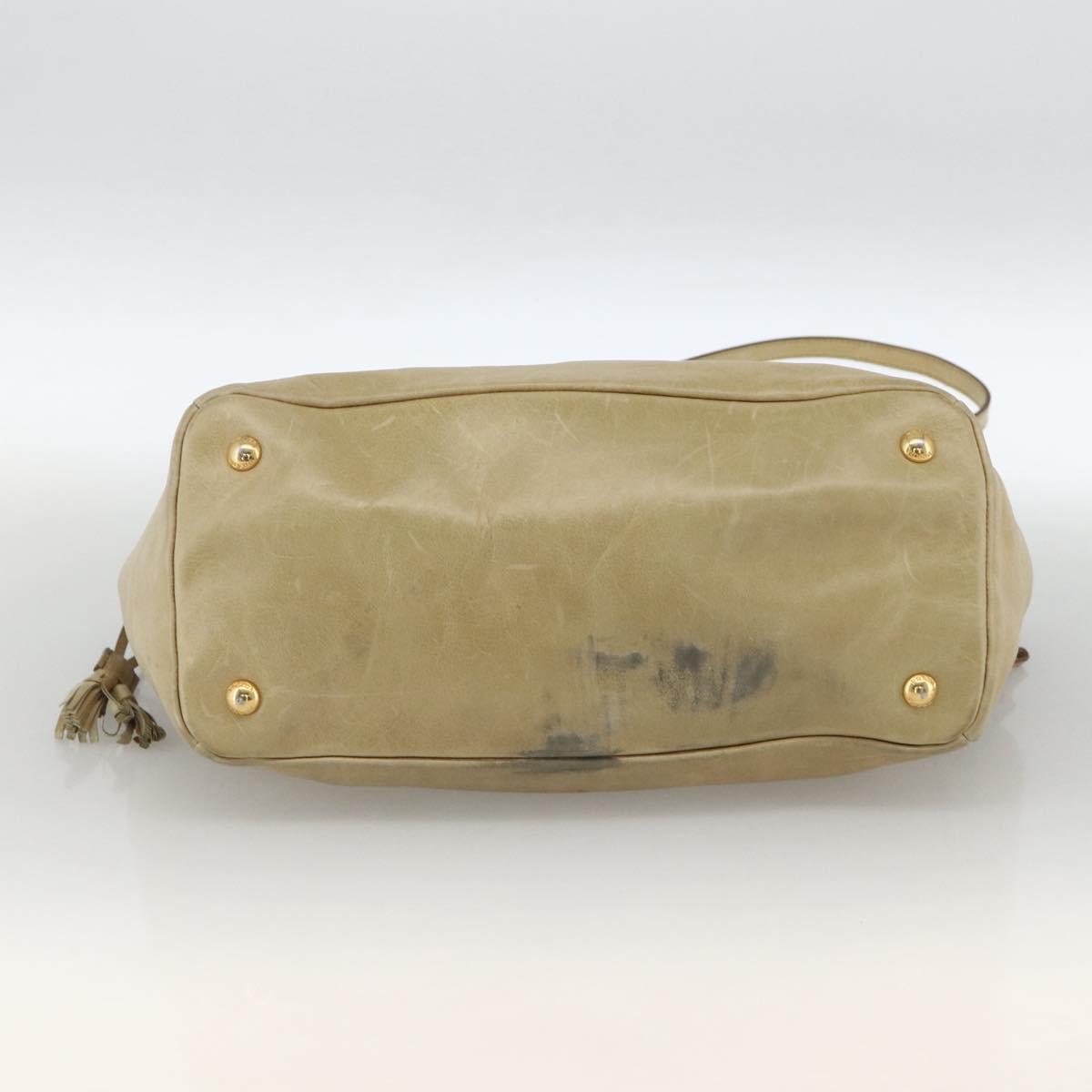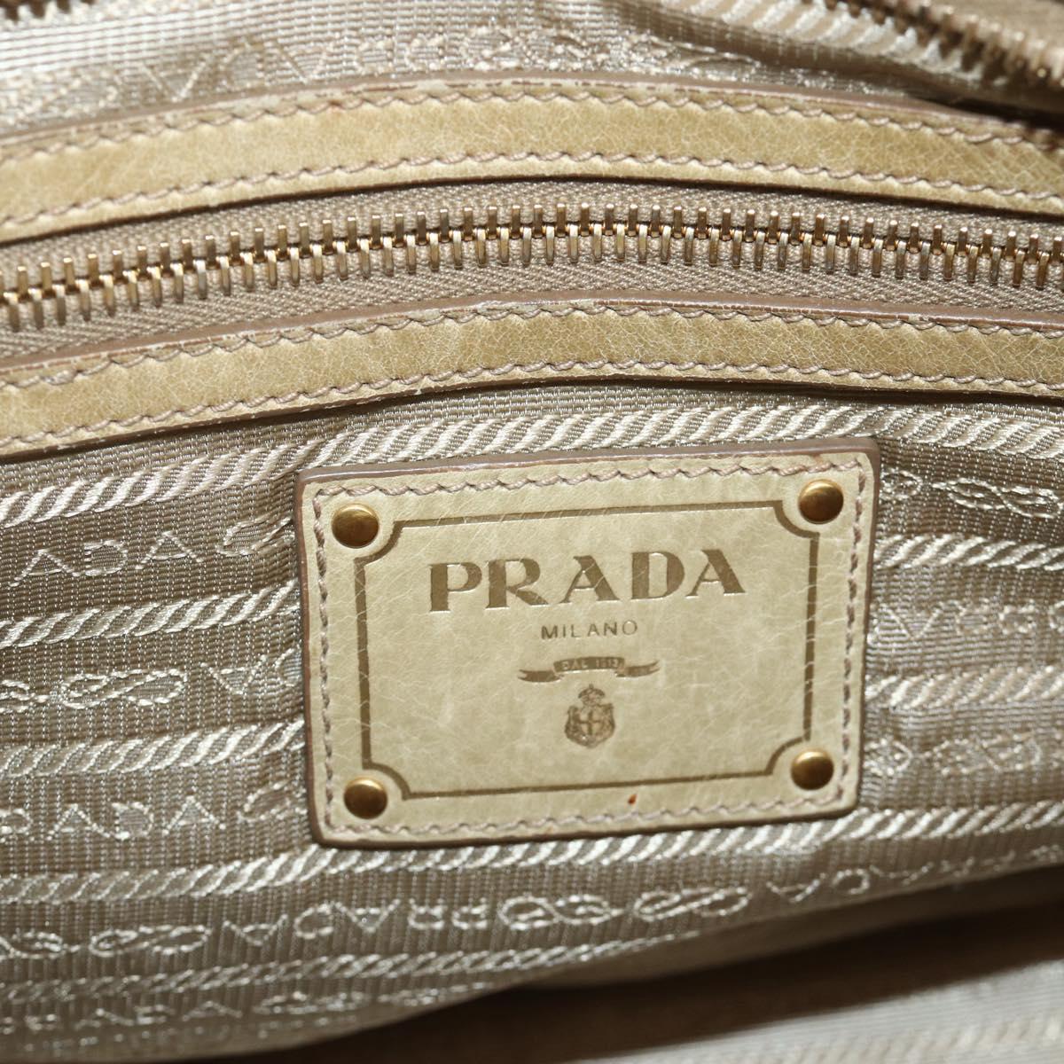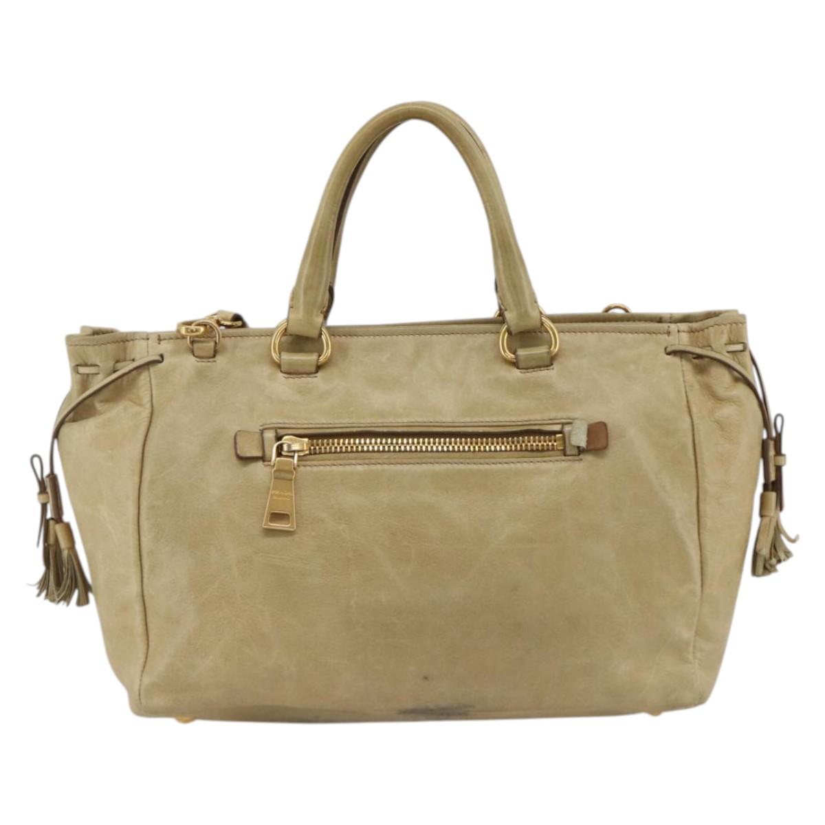PRADA Hand Bag Leather 2way Beige Gold Auth 174345