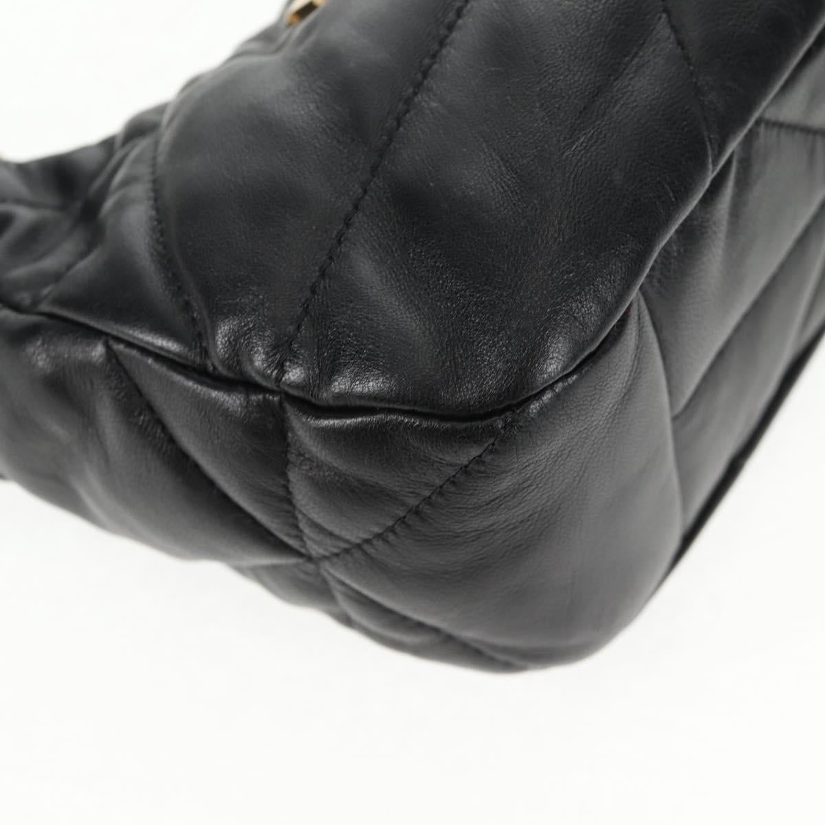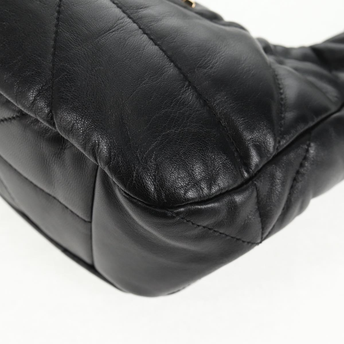 PRADA Hand Bag Leather 2way Black Gold Auth 128189M