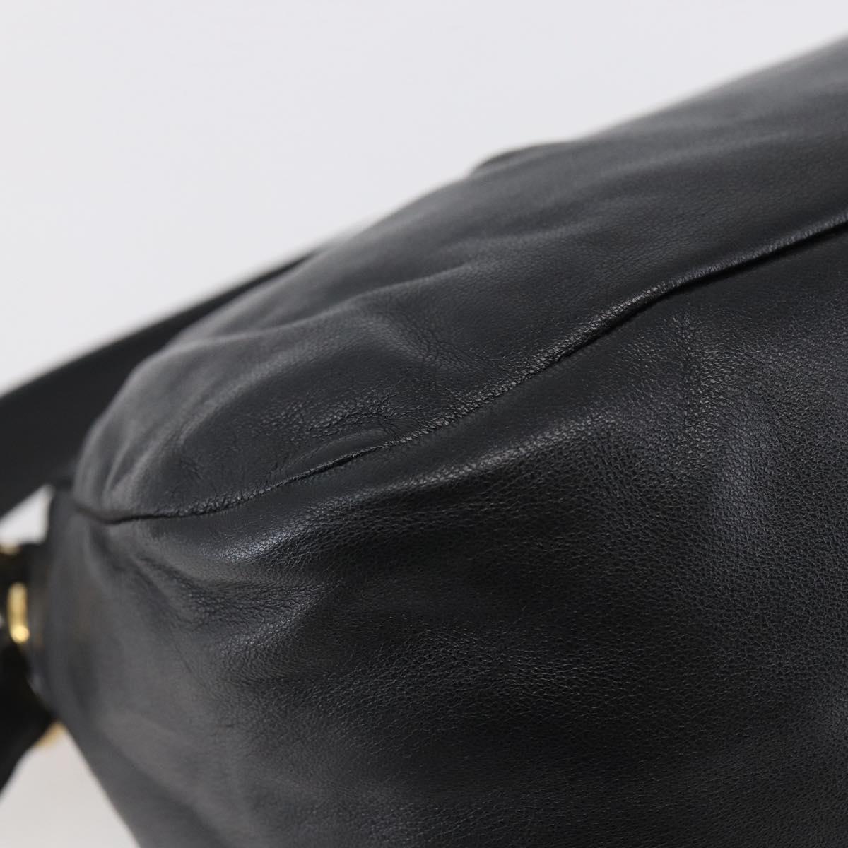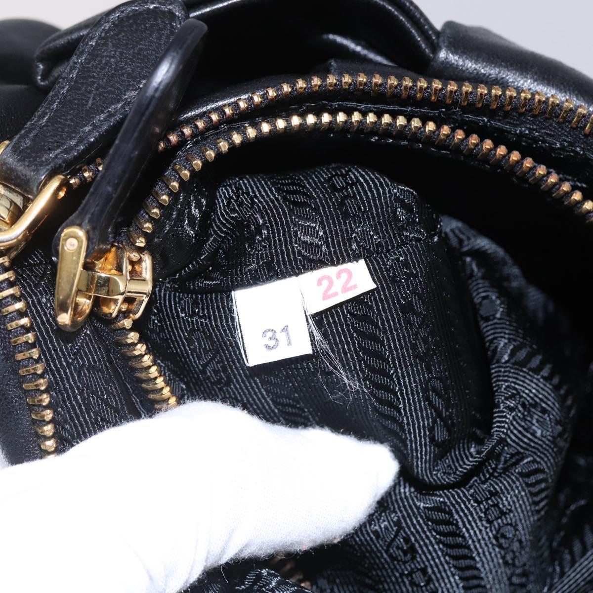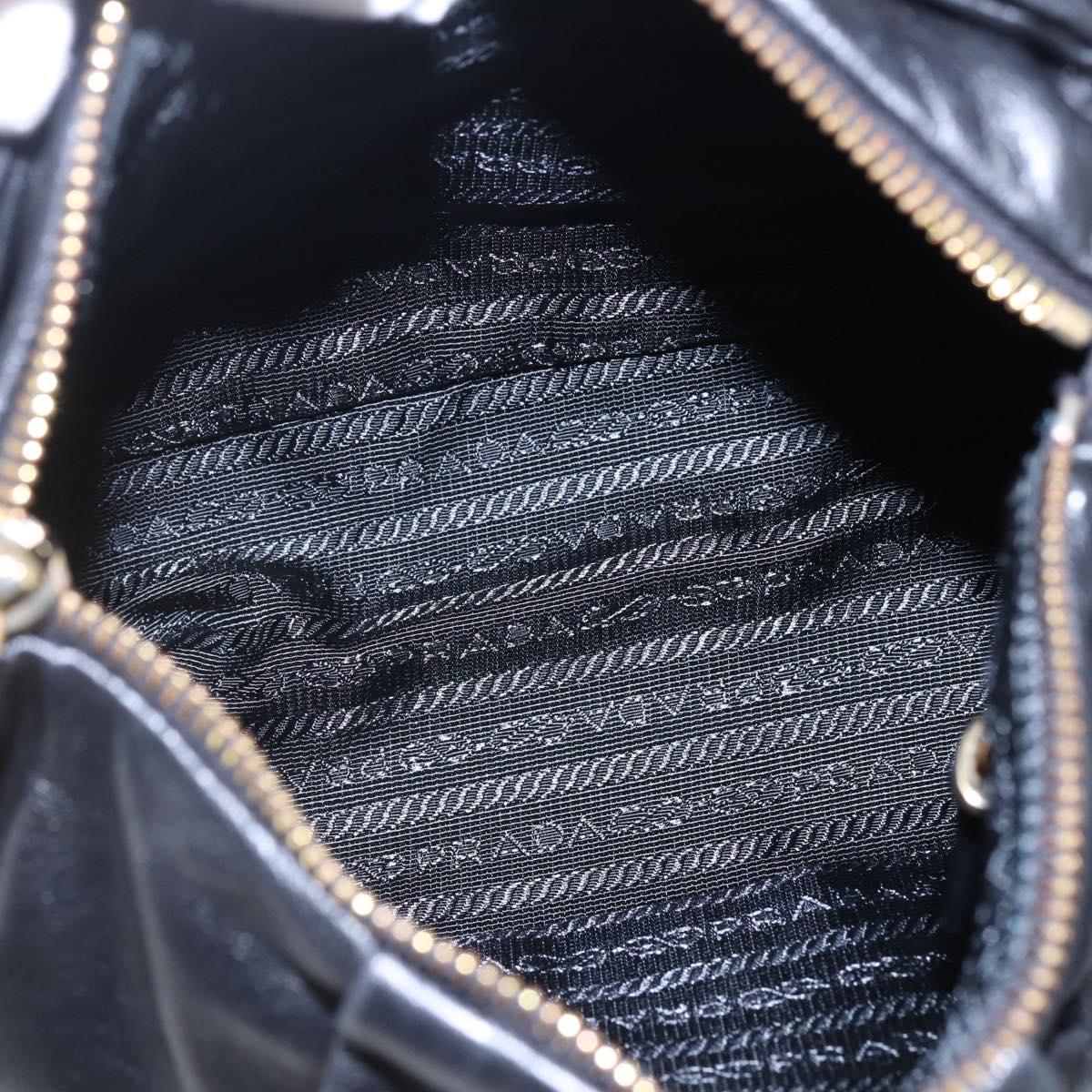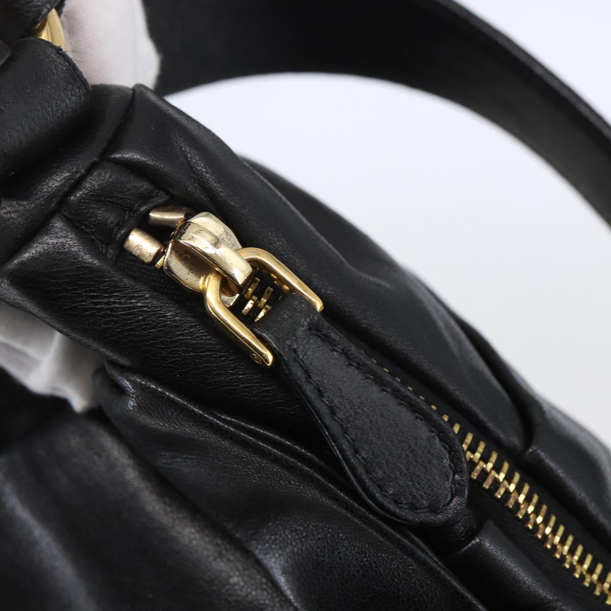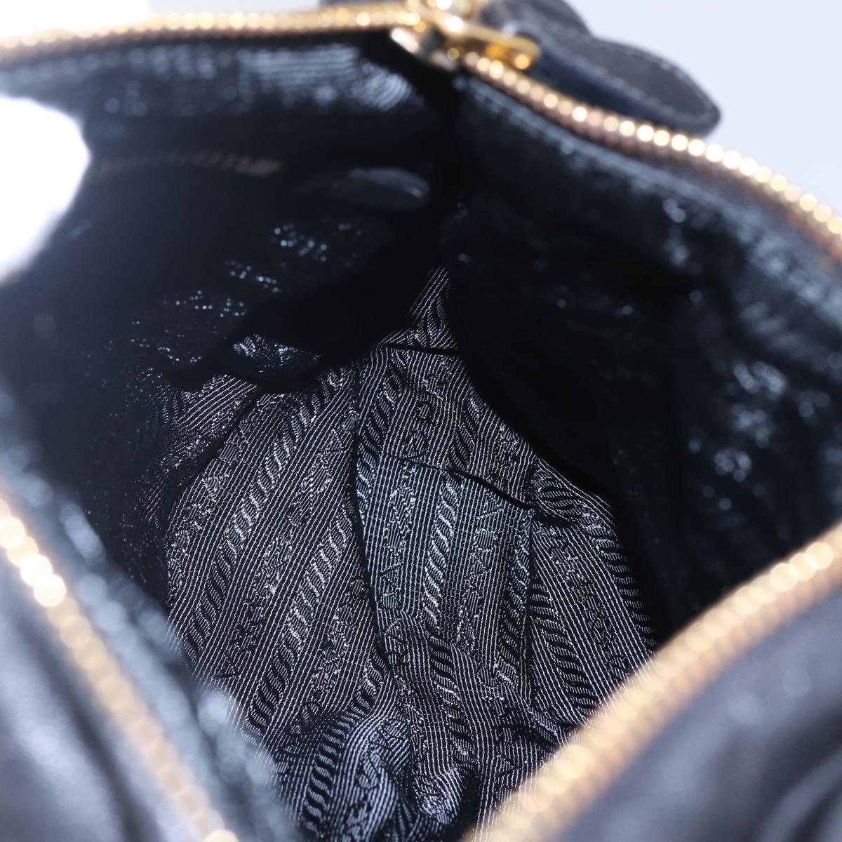 PRADA Hand Bag Leather Black Gold Auth 135316V