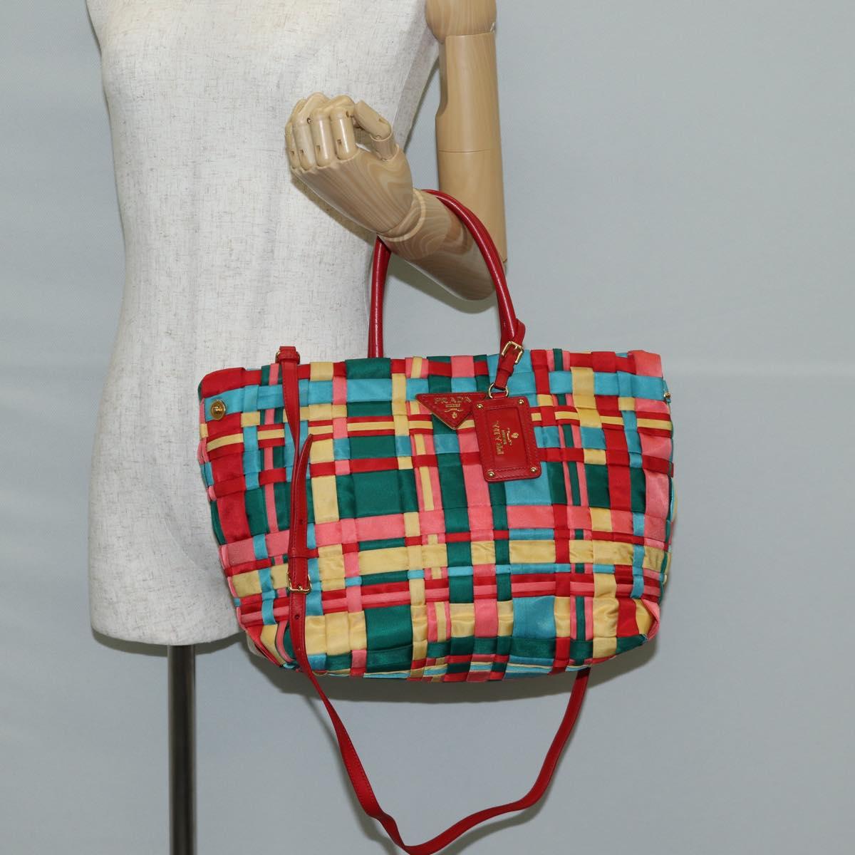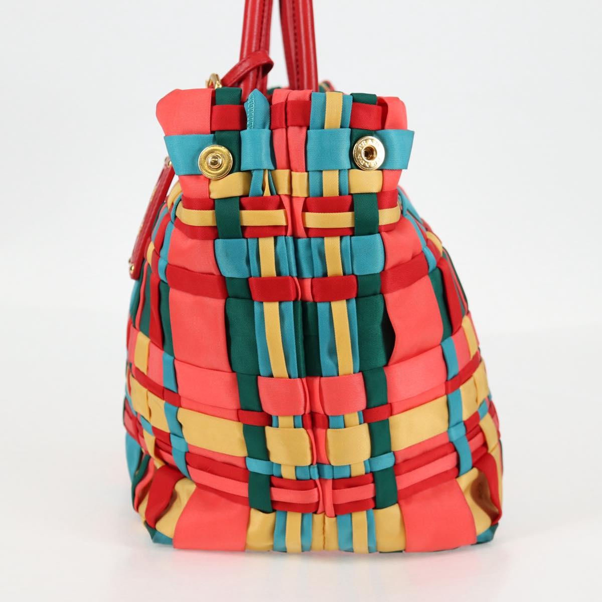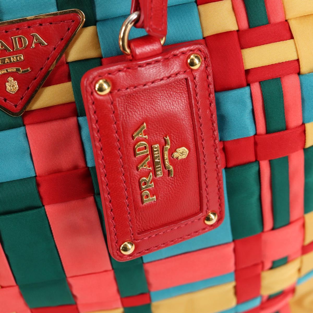 PRADA Hand Bag Nylon 2way Red Gold Auth 131587V