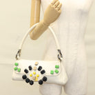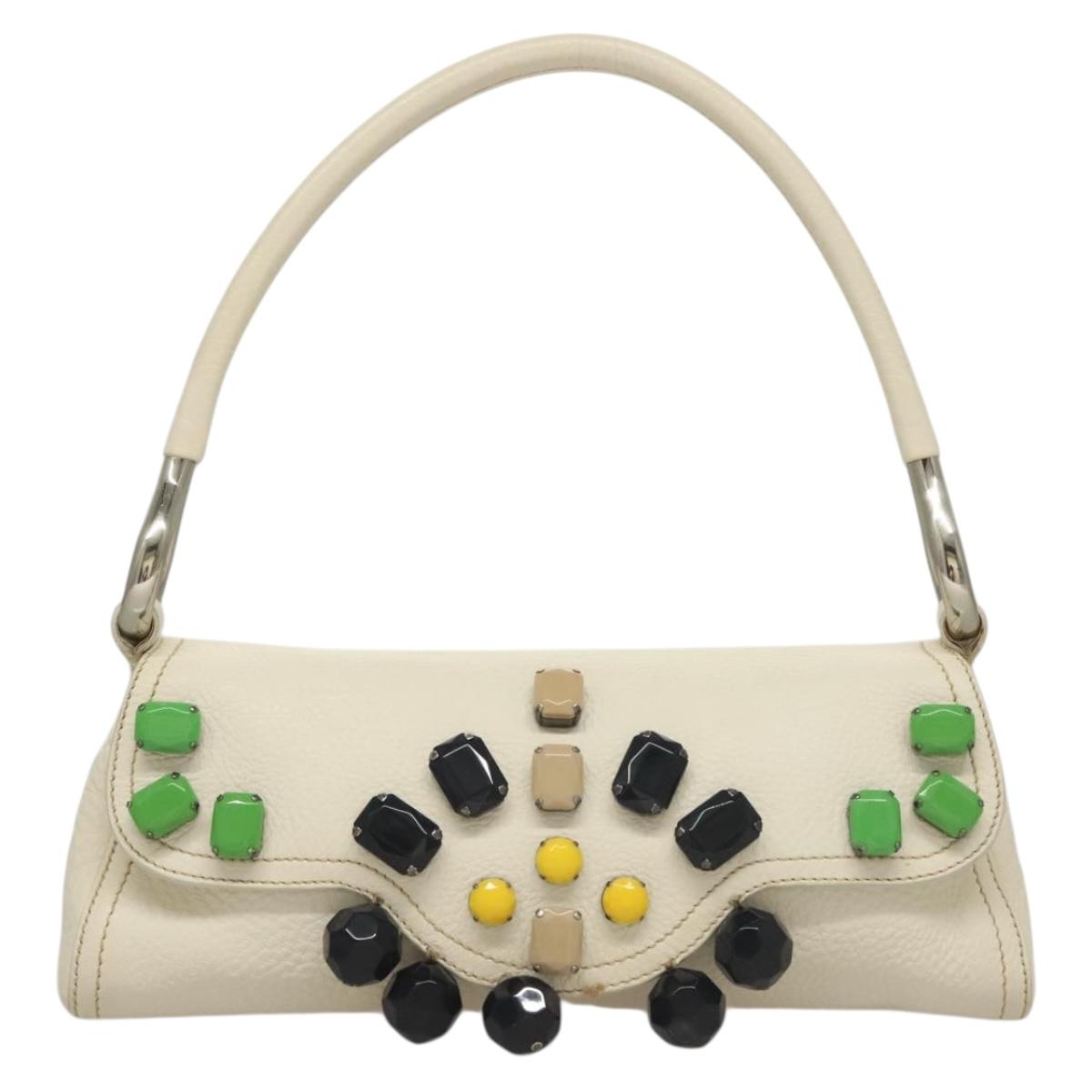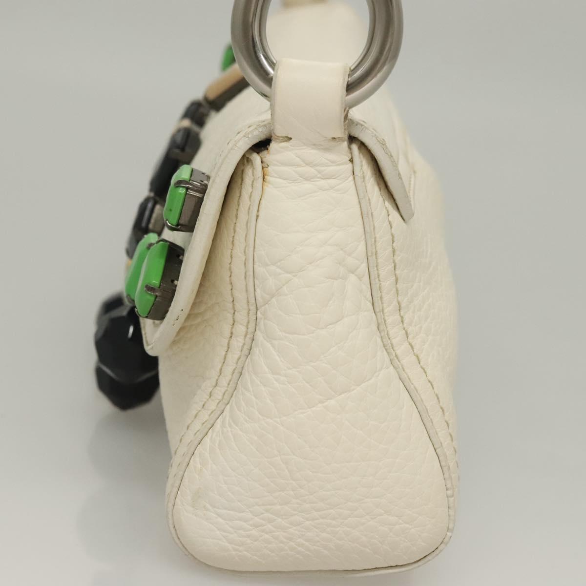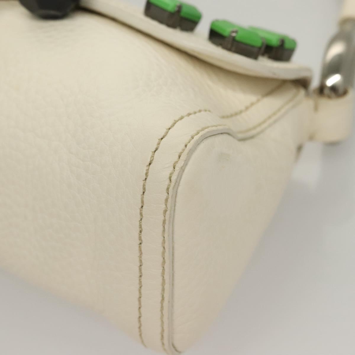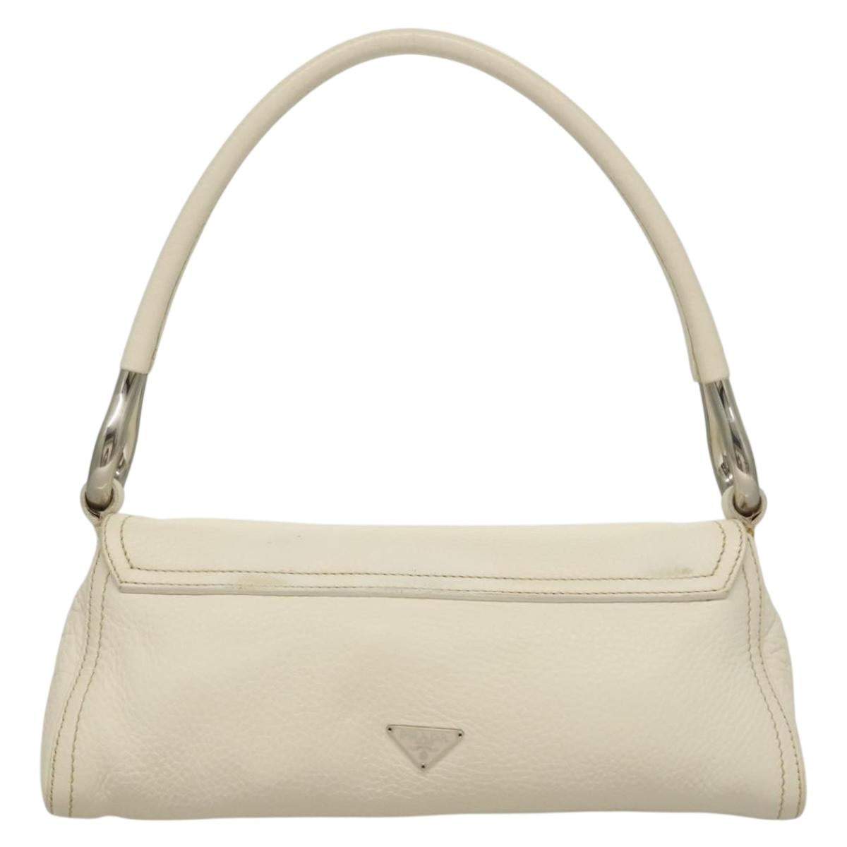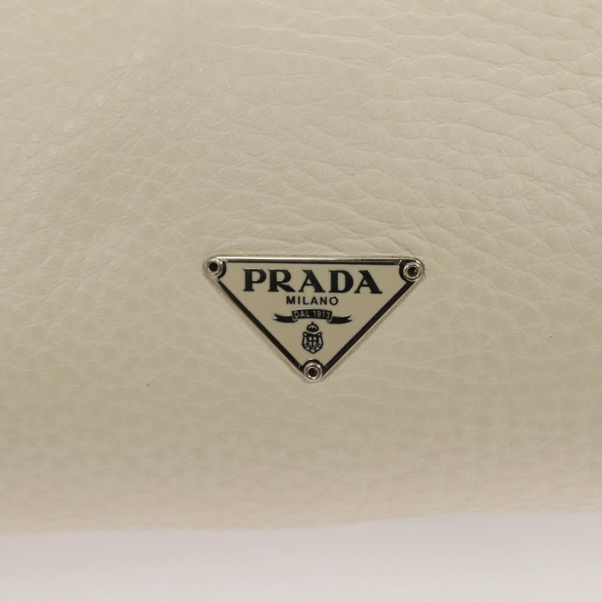 PRADA Shoulder Bag Leather White Silver Auth 132616V
