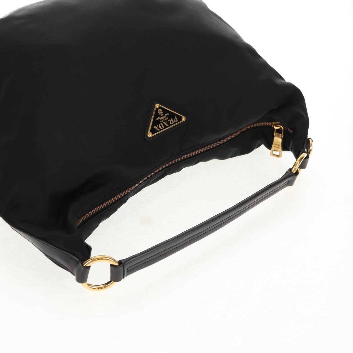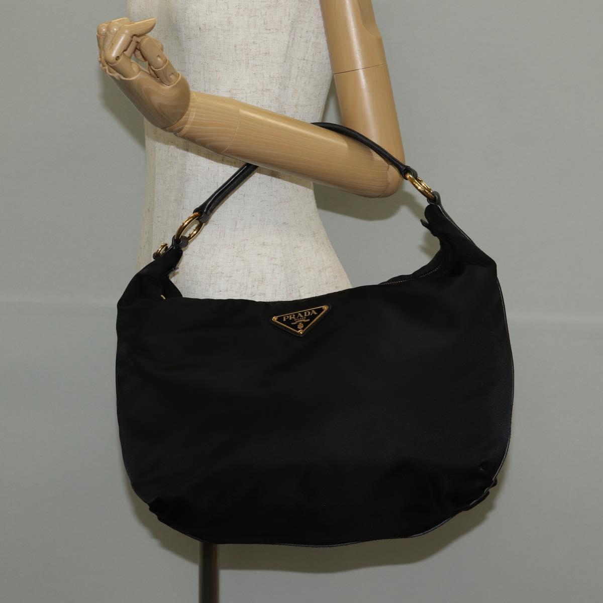 PRADA Shoulder Bag Nylon Black Gold Auth am9262V