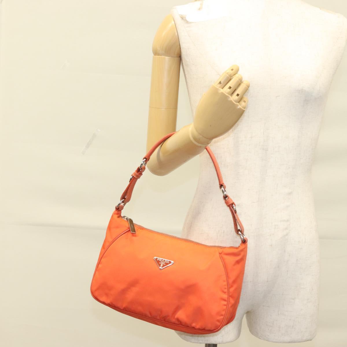 PRADA Shoulder Bag Nylon Orange Silver Auth 132897V