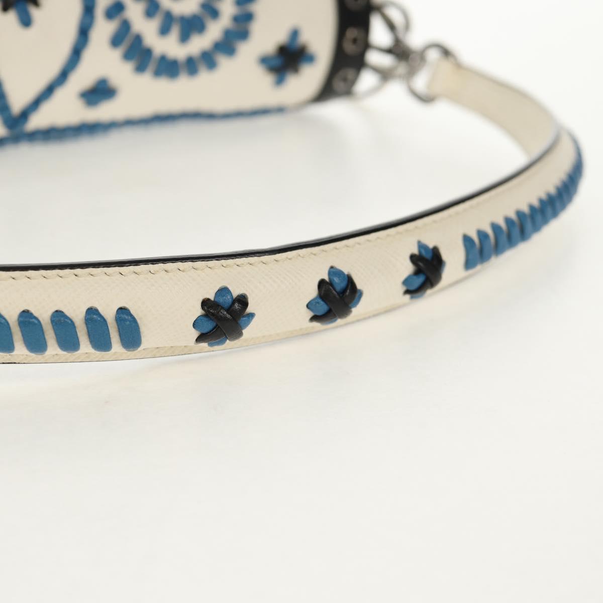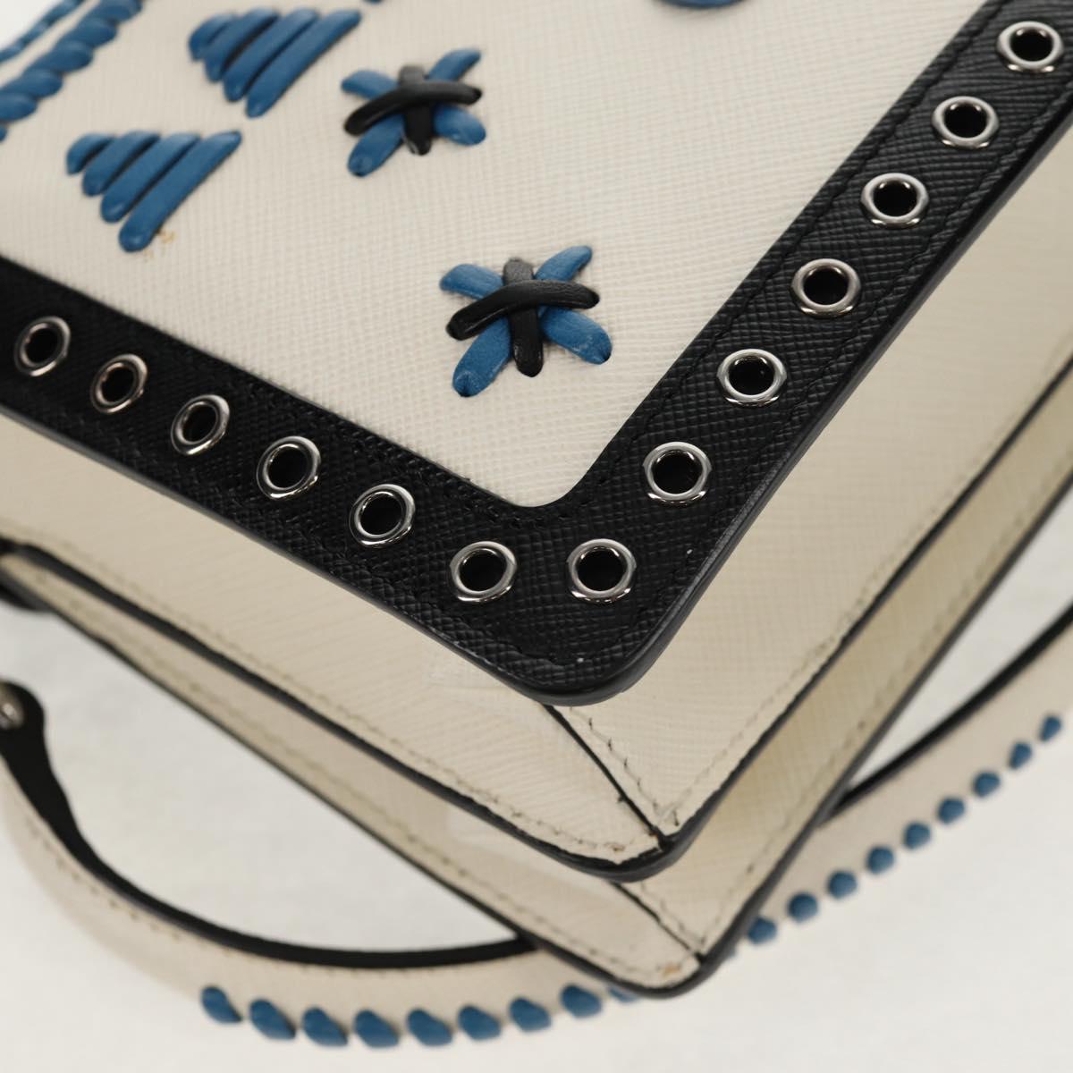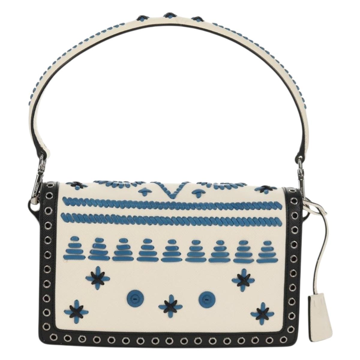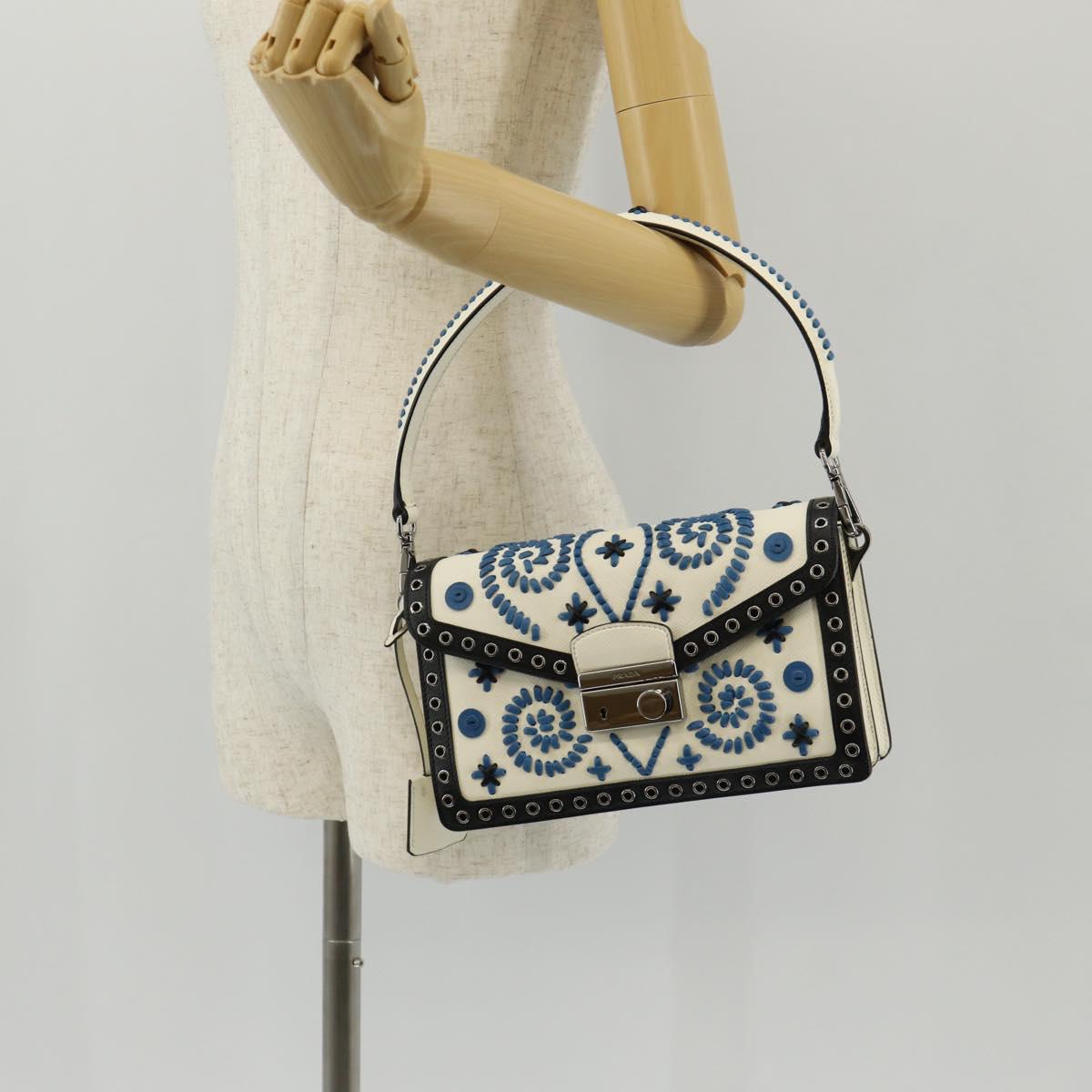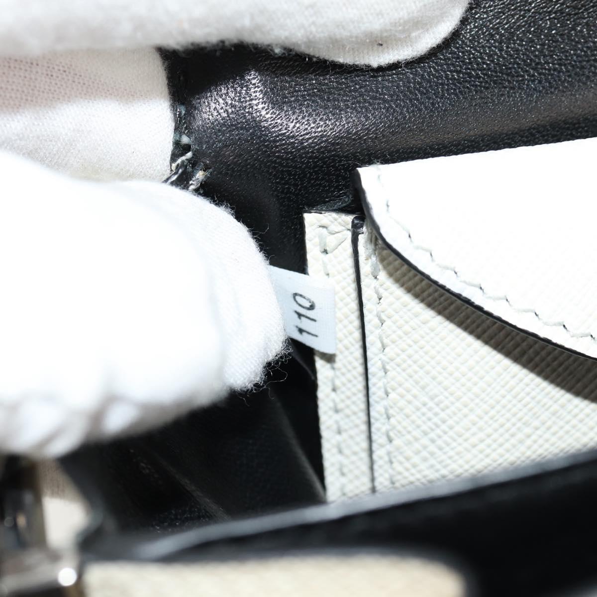 PRADA Shoulder Bag Safiano leather White Silver Auth 147525V