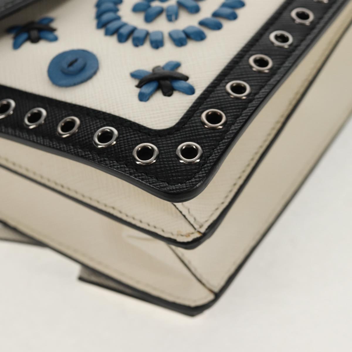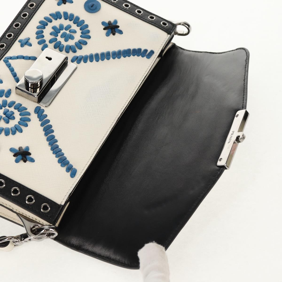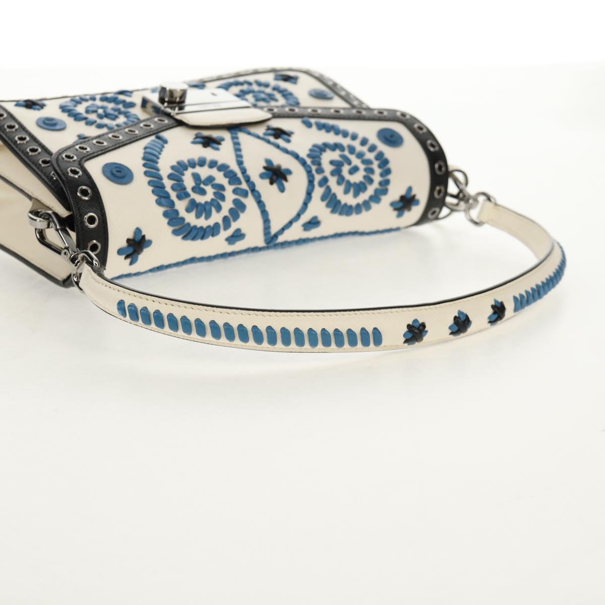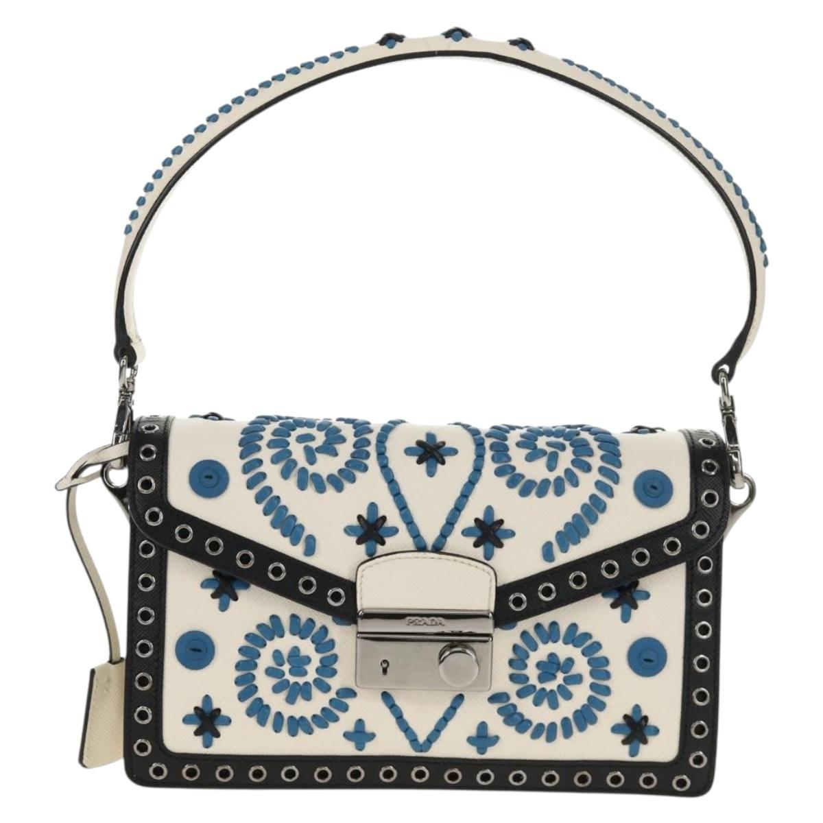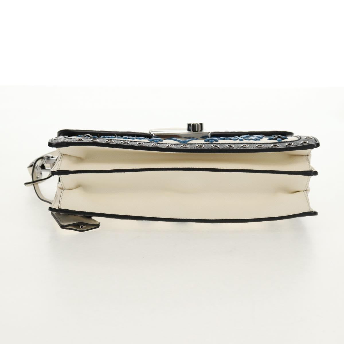 PRADA Shoulder Bag Safiano leather White Silver Auth 147525V