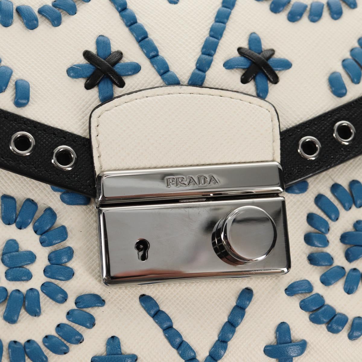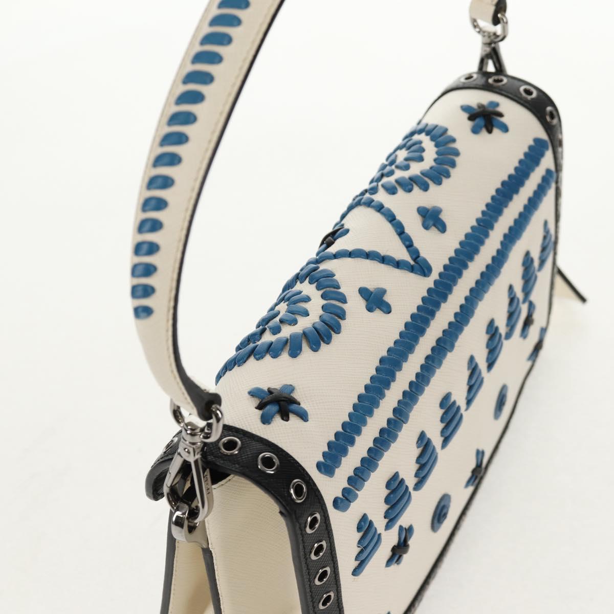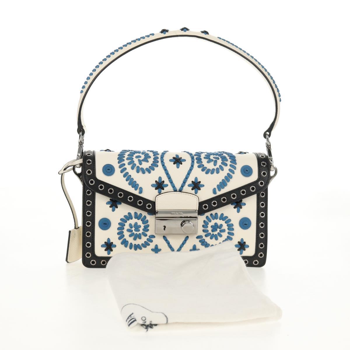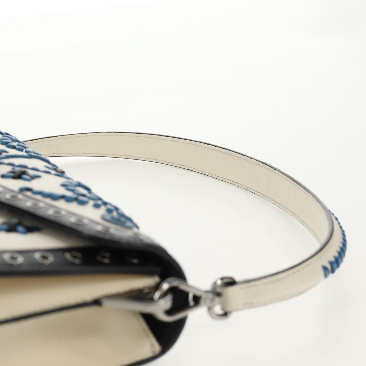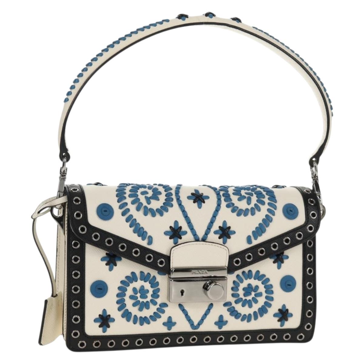 PRADA Shoulder Bag Safiano leather White Silver Auth 147525V