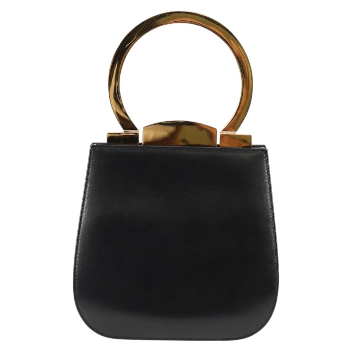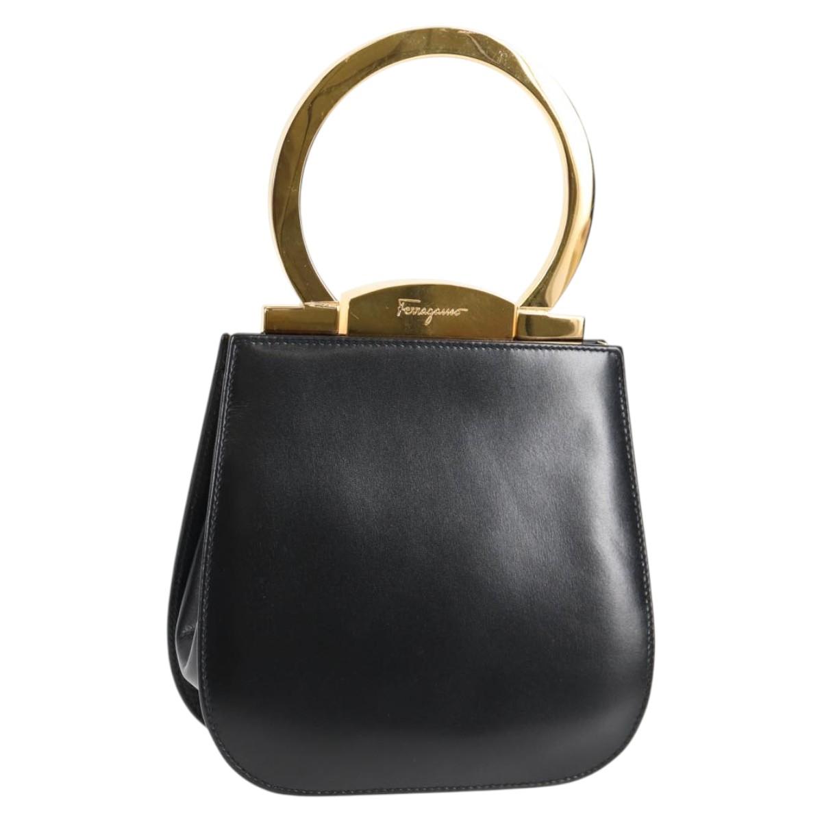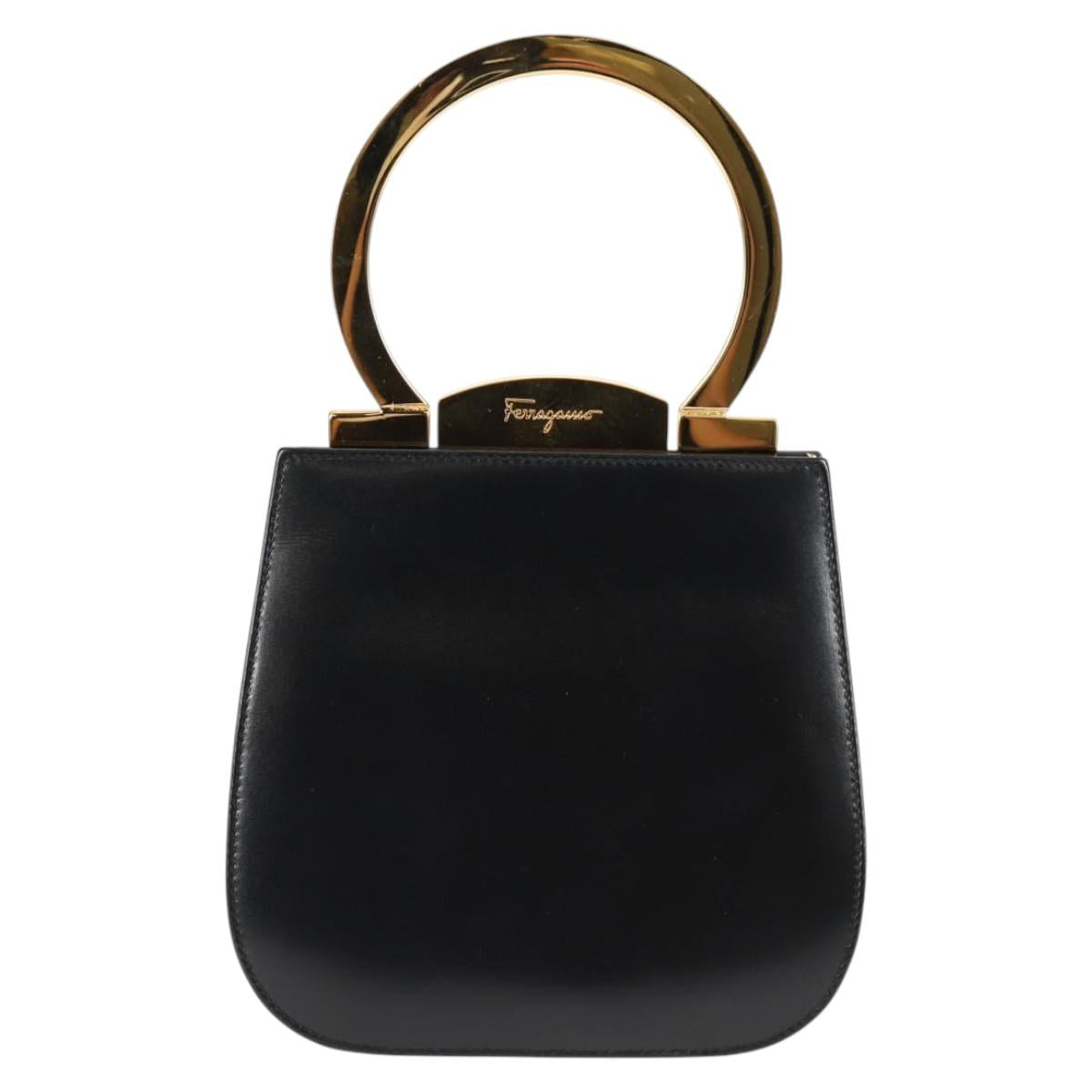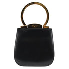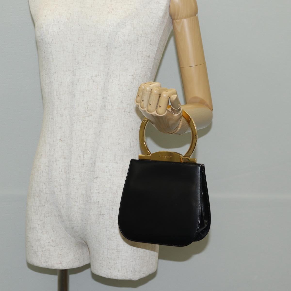 Salvatore Ferragamo Gancini Hand Bag Leather Black Gold Auth 136667V
