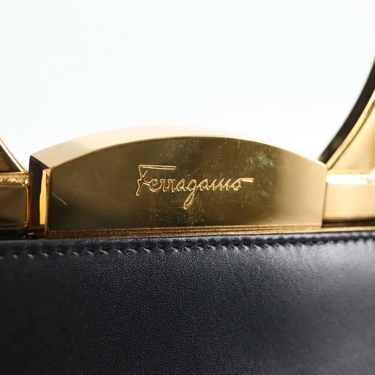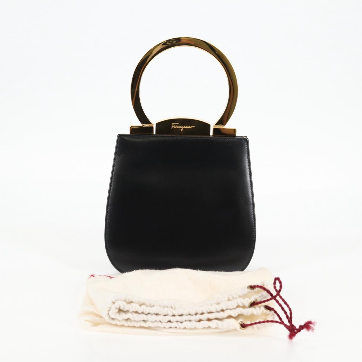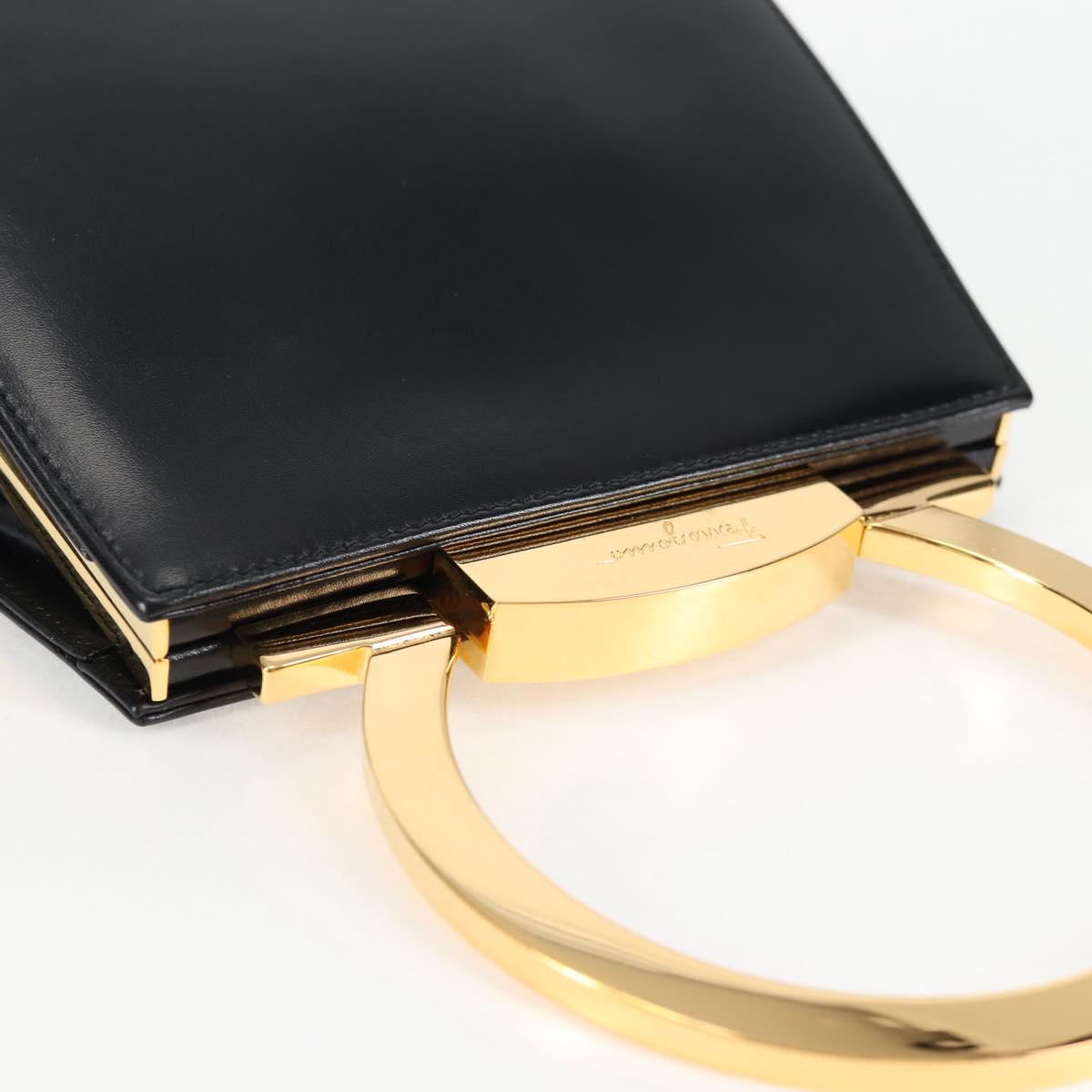 Salvatore Ferragamo Gancini Hand Bag Leather Black Gold Auth 136667V