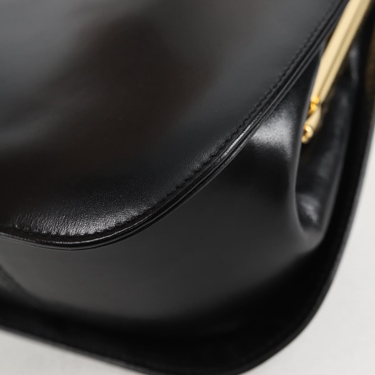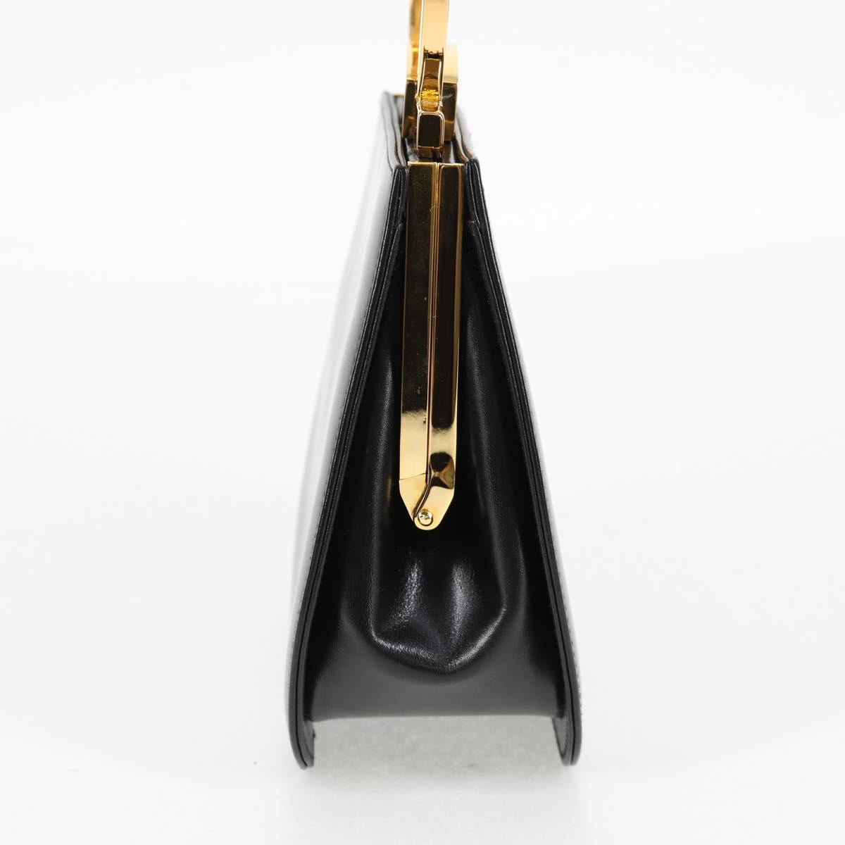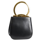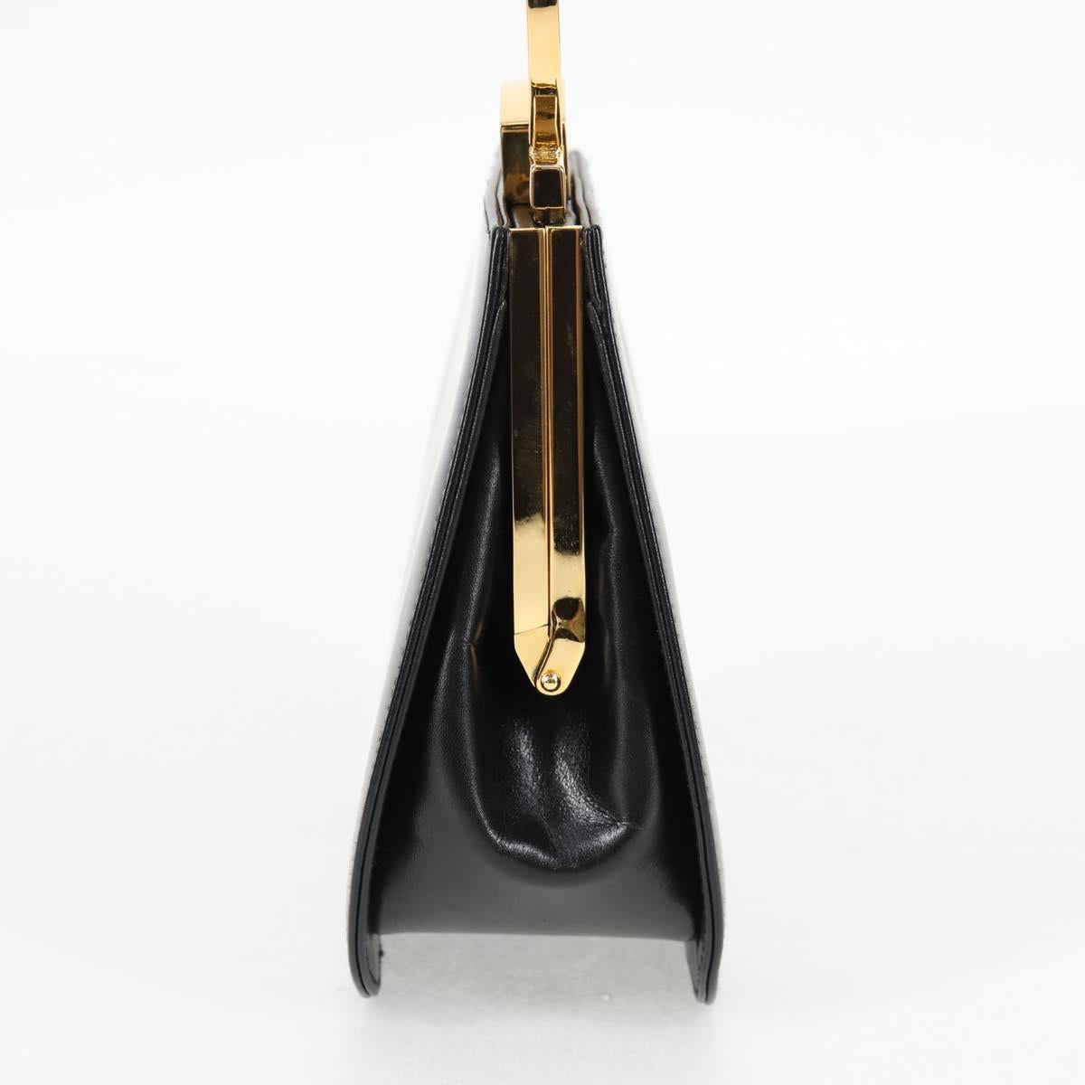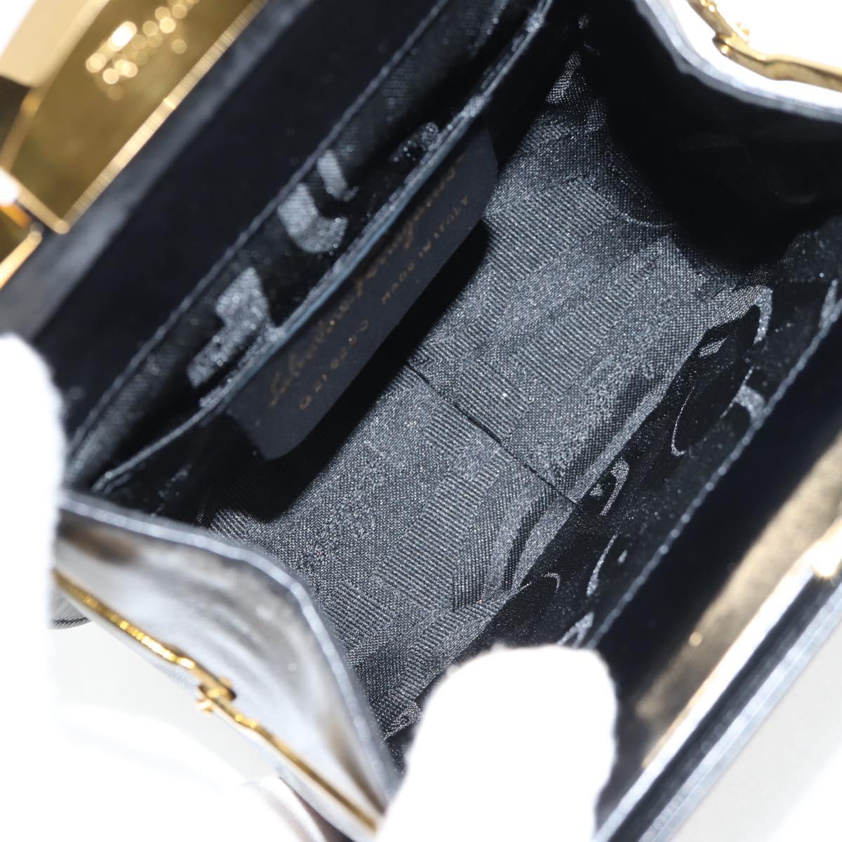 Salvatore Ferragamo Gancini Hand Bag Leather Black Gold Auth 136667V