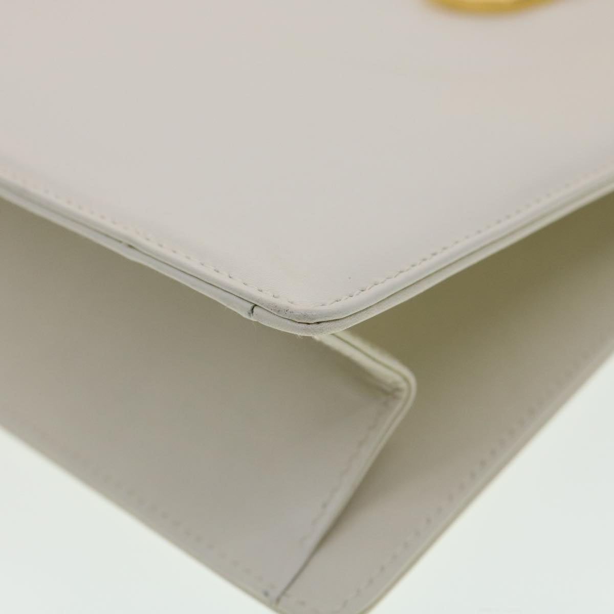 Salvatore Ferragamo Gancini Hand Bag Leather White Gold Tone Auth 34202AV
