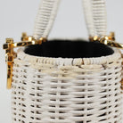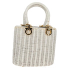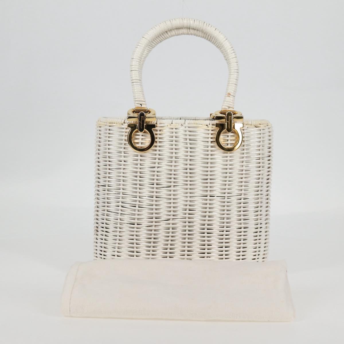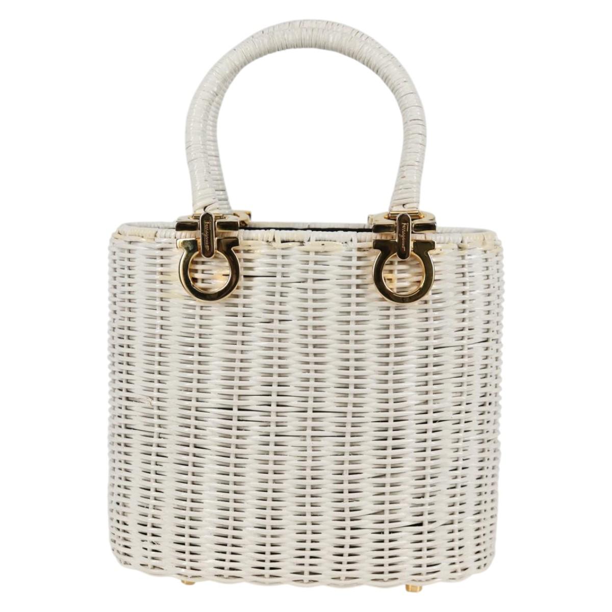 Salvatore Ferragamo Gancini Hand Bag Raffia White Gold Auth 136858V