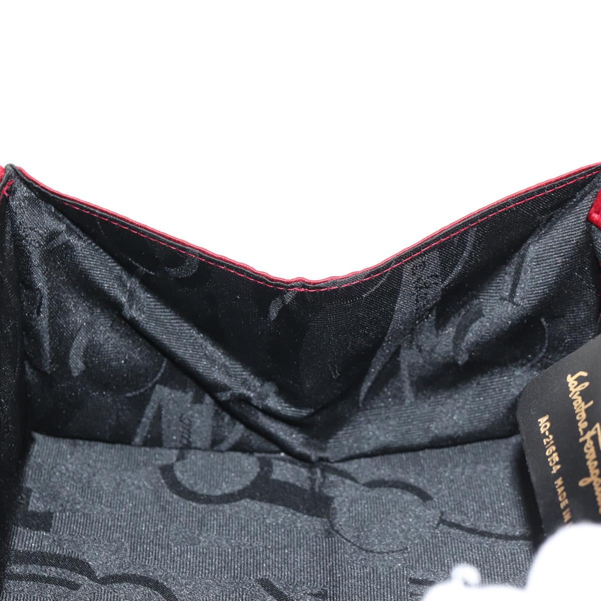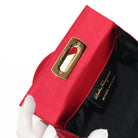 Salvatore Ferragamo Gancini Hand Bag Satin Red Gold Auth 145507V