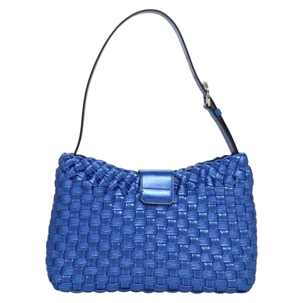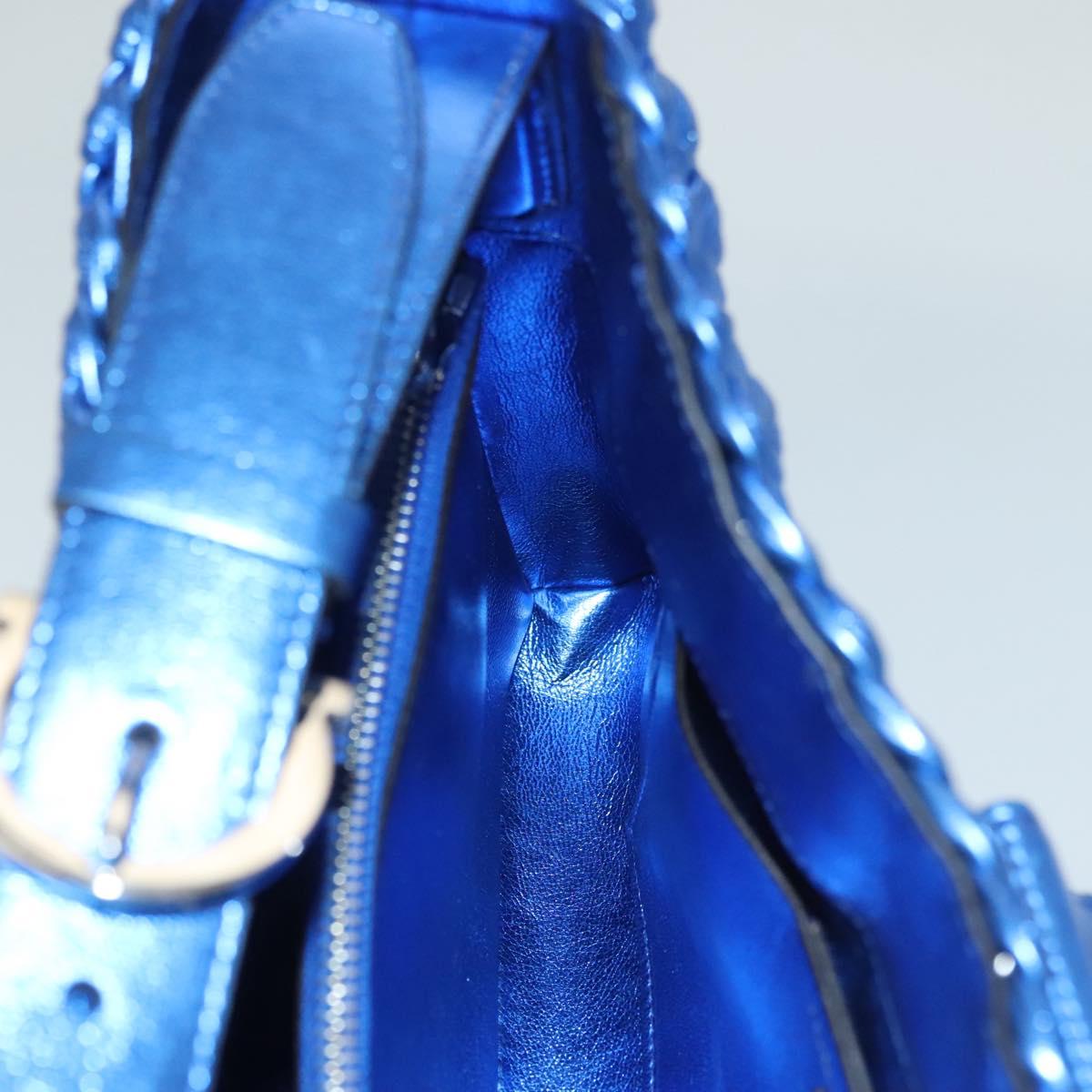 Salvatore Ferragamo Gancini Shoulder Bag Leather Blue Silver Auth 128561V