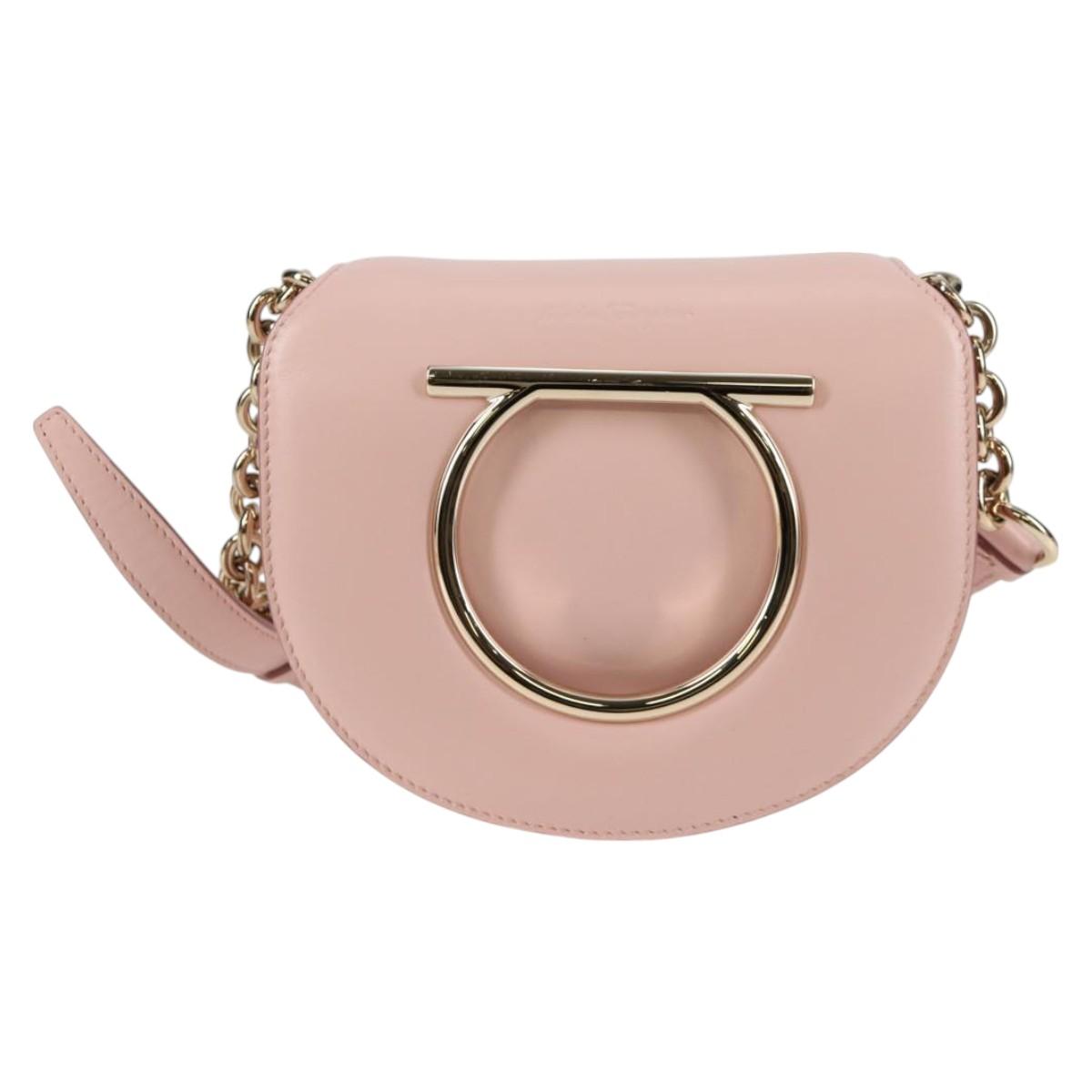 Salvatore Ferragamo Gancini Shoulder Bag Leather Pink Gold Auth 127475M