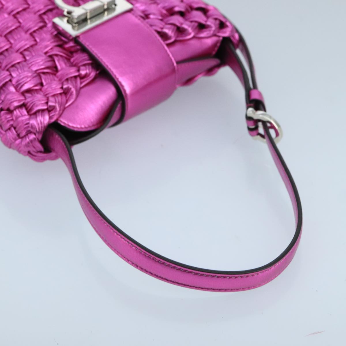 Salvatore Ferragamo Gancini Shoulder Bag Leather Pink Silver Auth 97480