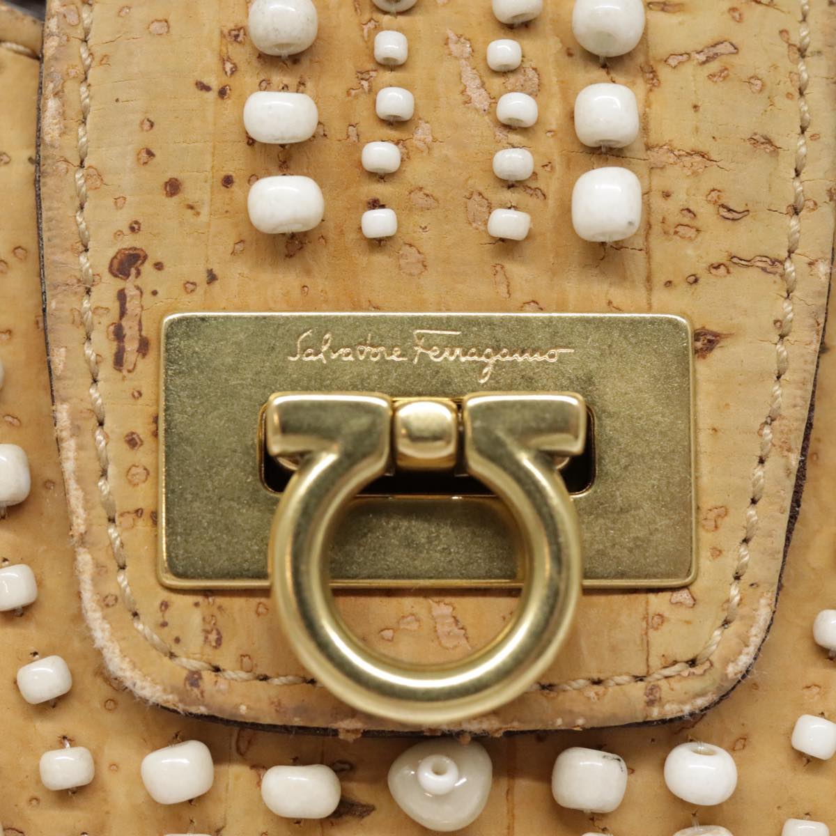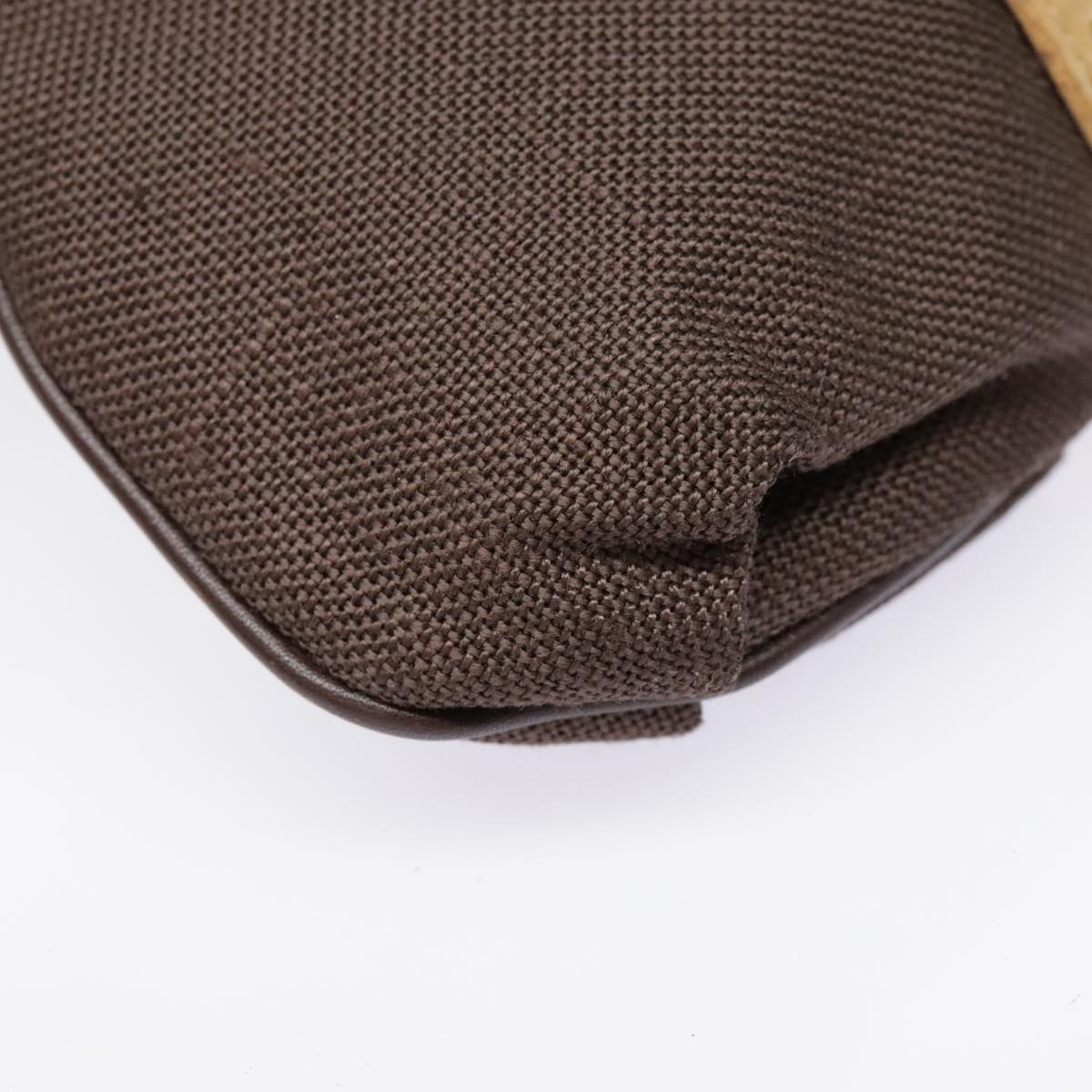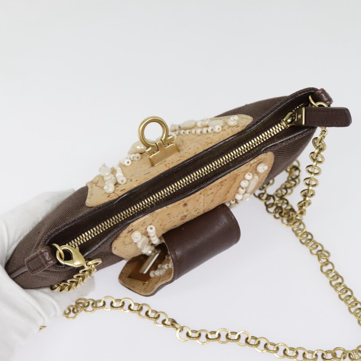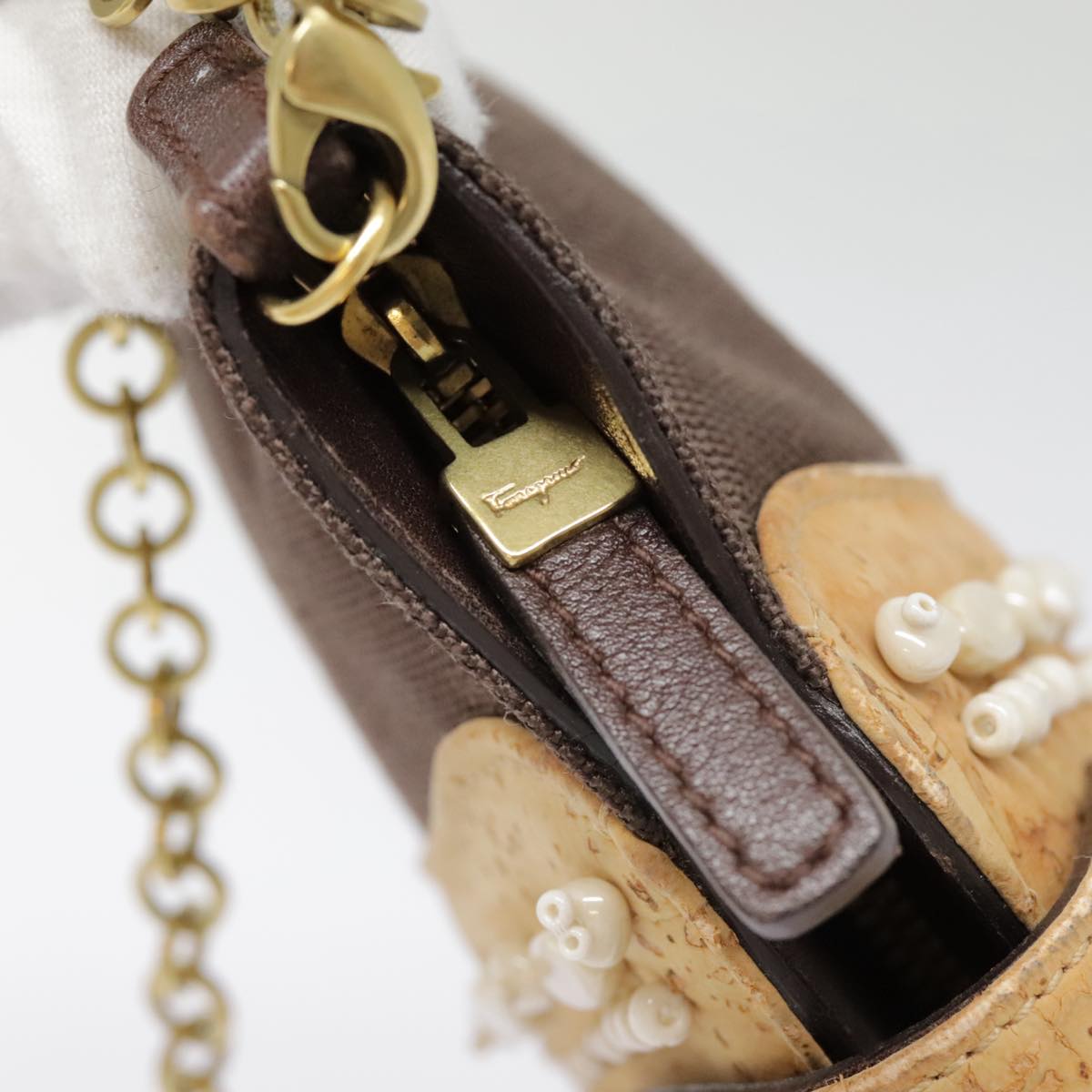 Salvatore Ferragamo Gancini Shoulder Bag Nylon Leather Brown Gold Auth 91386V